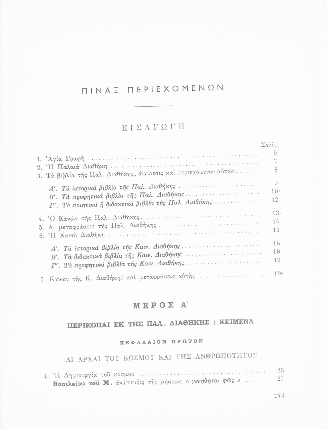 Σχολικό εγχειρίδιο Θρησκευτικών που περιλαμβάνει εισαγωγικά σχόλια στα βιβλία της Παλαιάς και Καινής Διαθήκης, περικοπές, ερμηνευτικές και πραγματολογικές σημειώσεις και πίνακα με τα κυριότερα ονόματα.