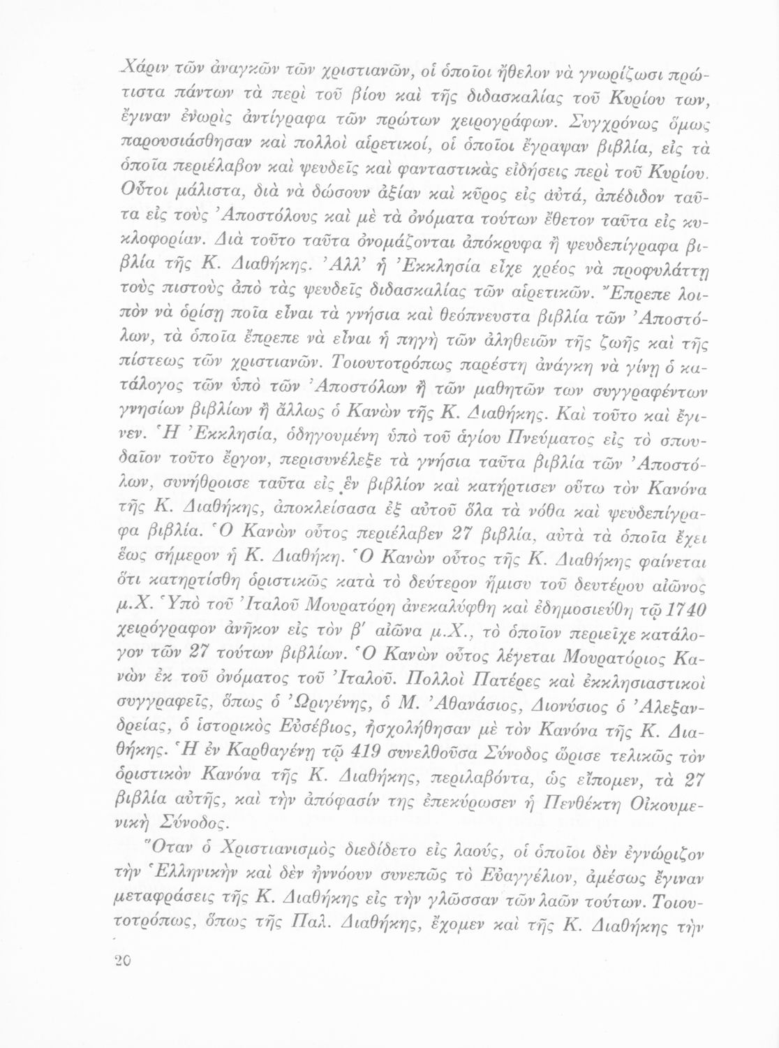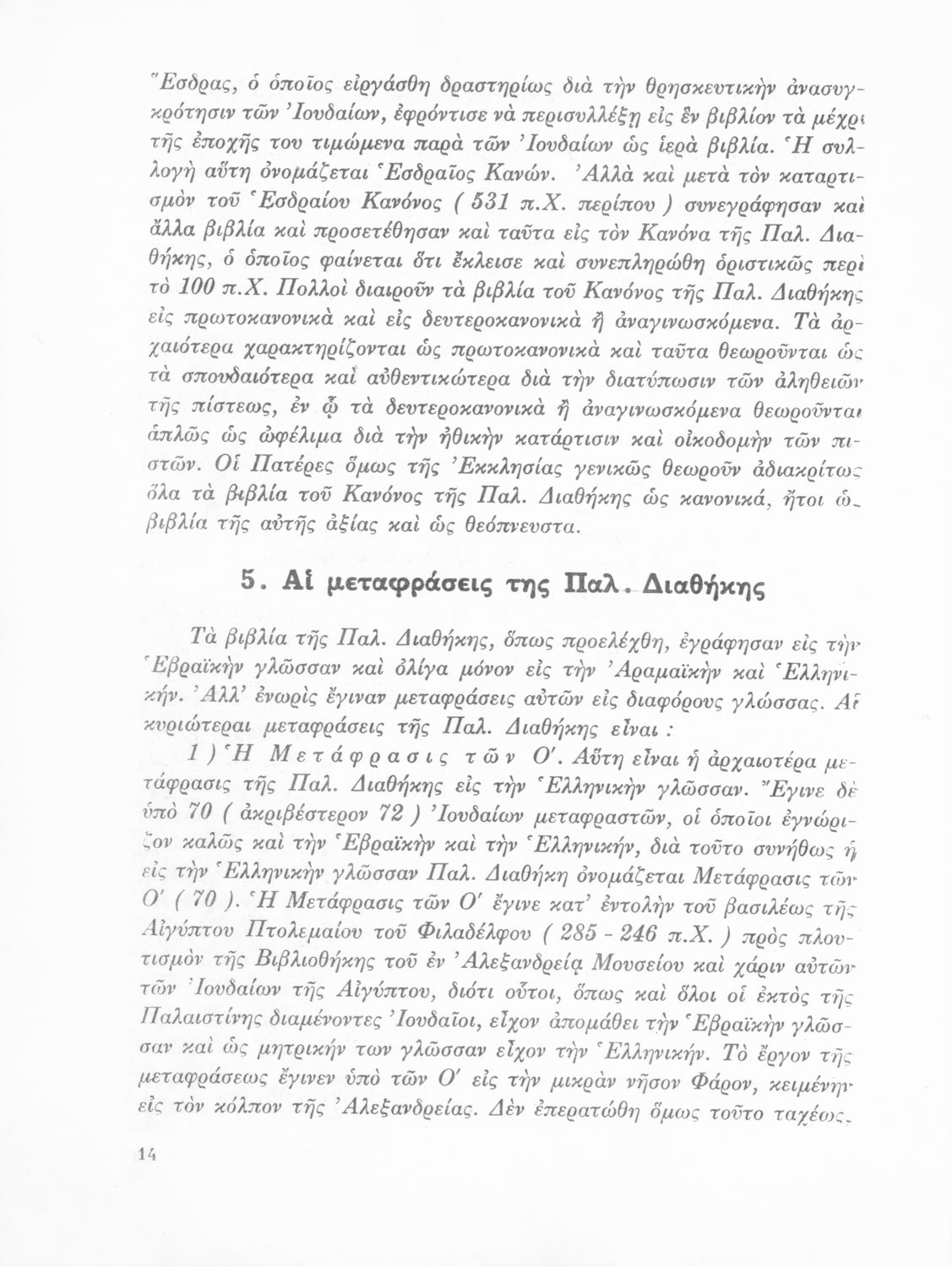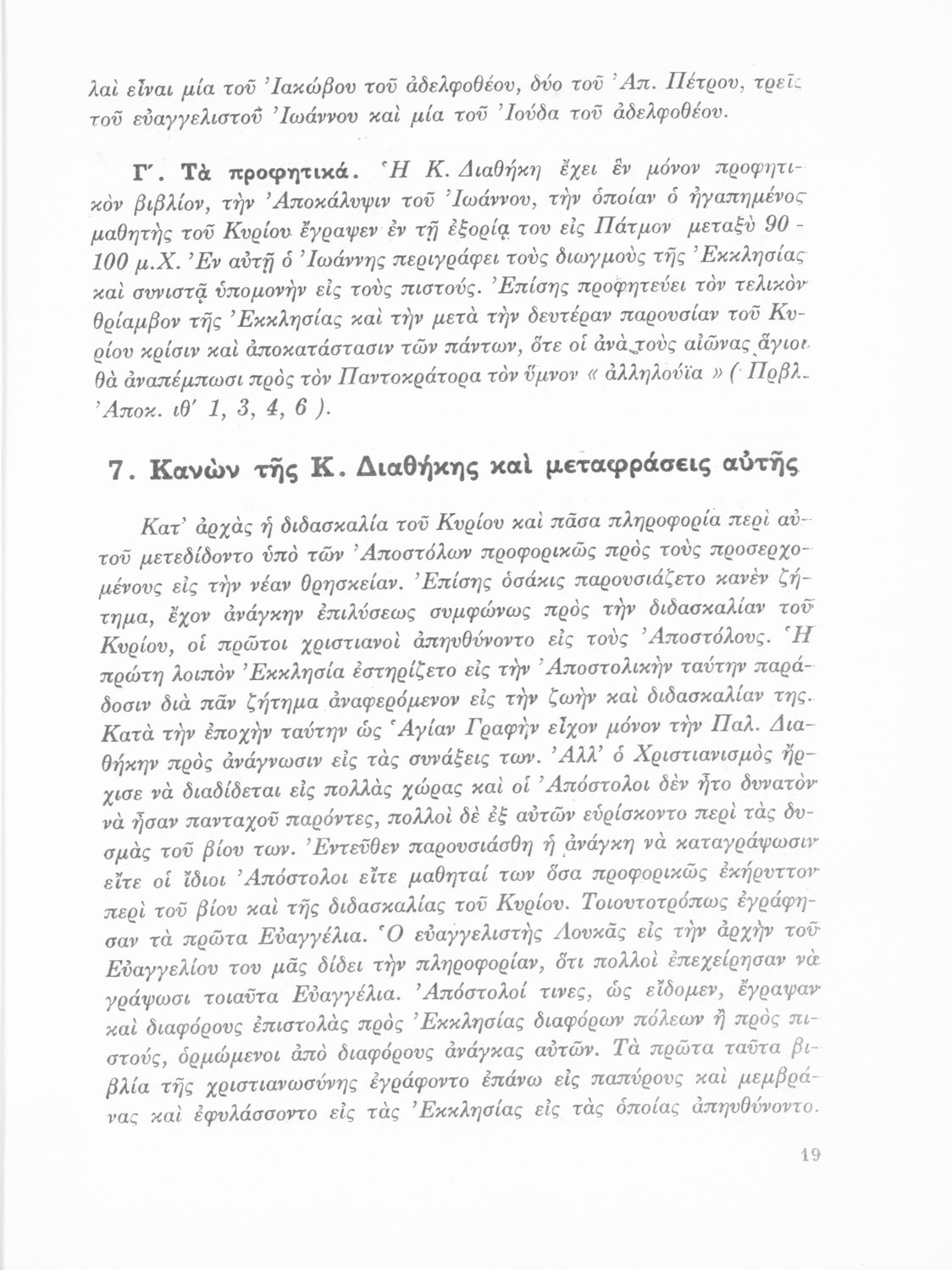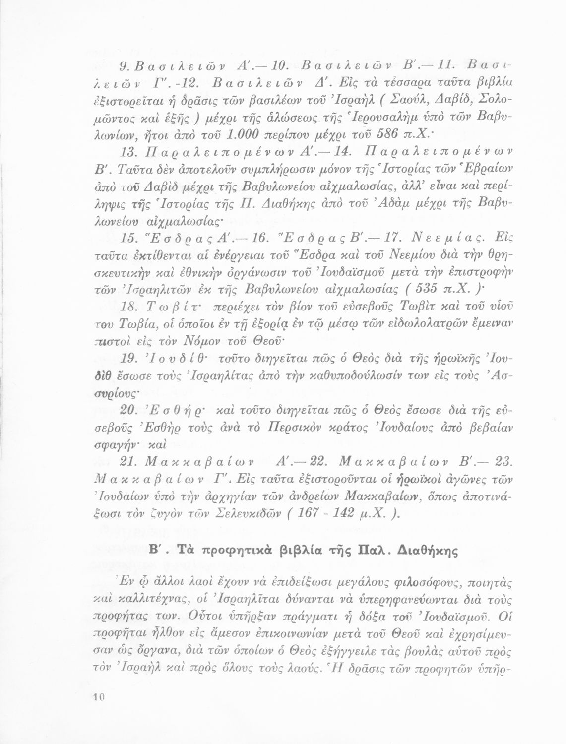 Σχολικό εγχειρίδιο Θρησκευτικών που περιλαμβάνει εισαγωγικά σχόλια στα βιβλία της Παλαιάς και Καινής Διαθήκης, περικοπές, ερμηνευτικές και πραγματολογικές σημειώσεις και πίνακα με τα κυριότερα ονόματα.