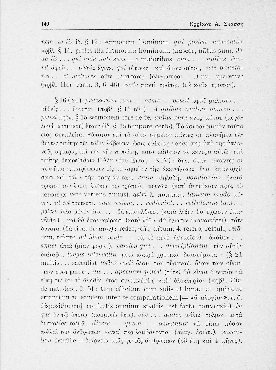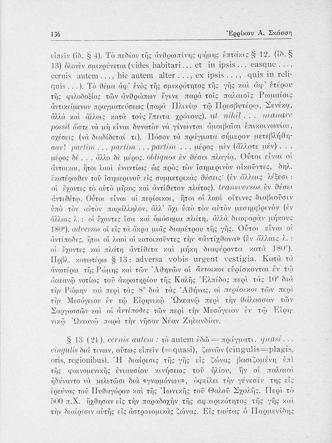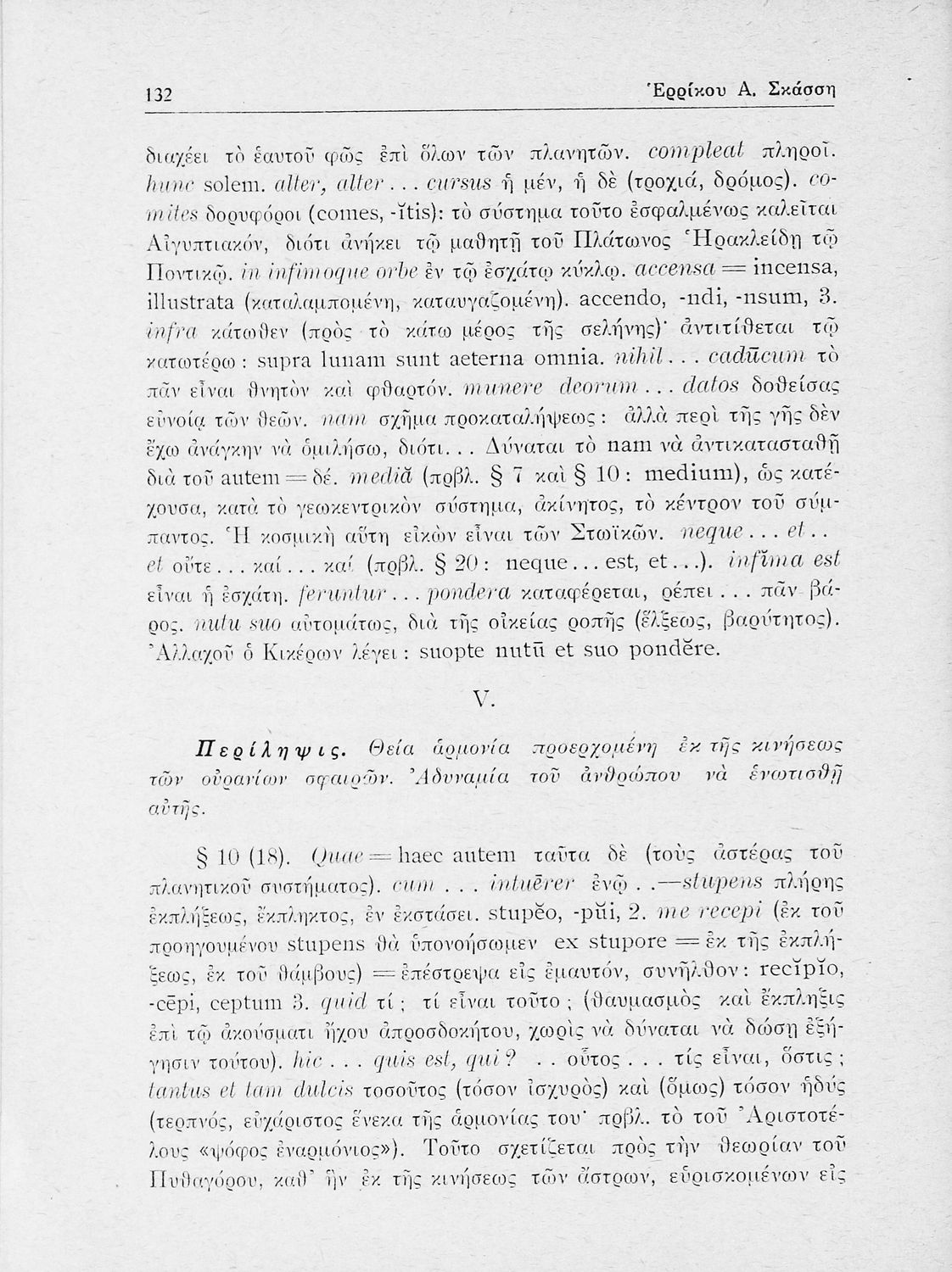 Πόπλιος Βιργίλιος Μάρων (P. Vergilius Maro), Μάρκος Τύλλιος Κικέρωνας (Marcus Tullius Ciceco), Κουίντος Οράτιος Φλάκκος (Q. Horati Flacci), Φωκίωνας Β. Βουσβούνης, Ερρίκος Σκάσσης, Ζαφείριος Ν. Φραγκίσκος (σχόλια)