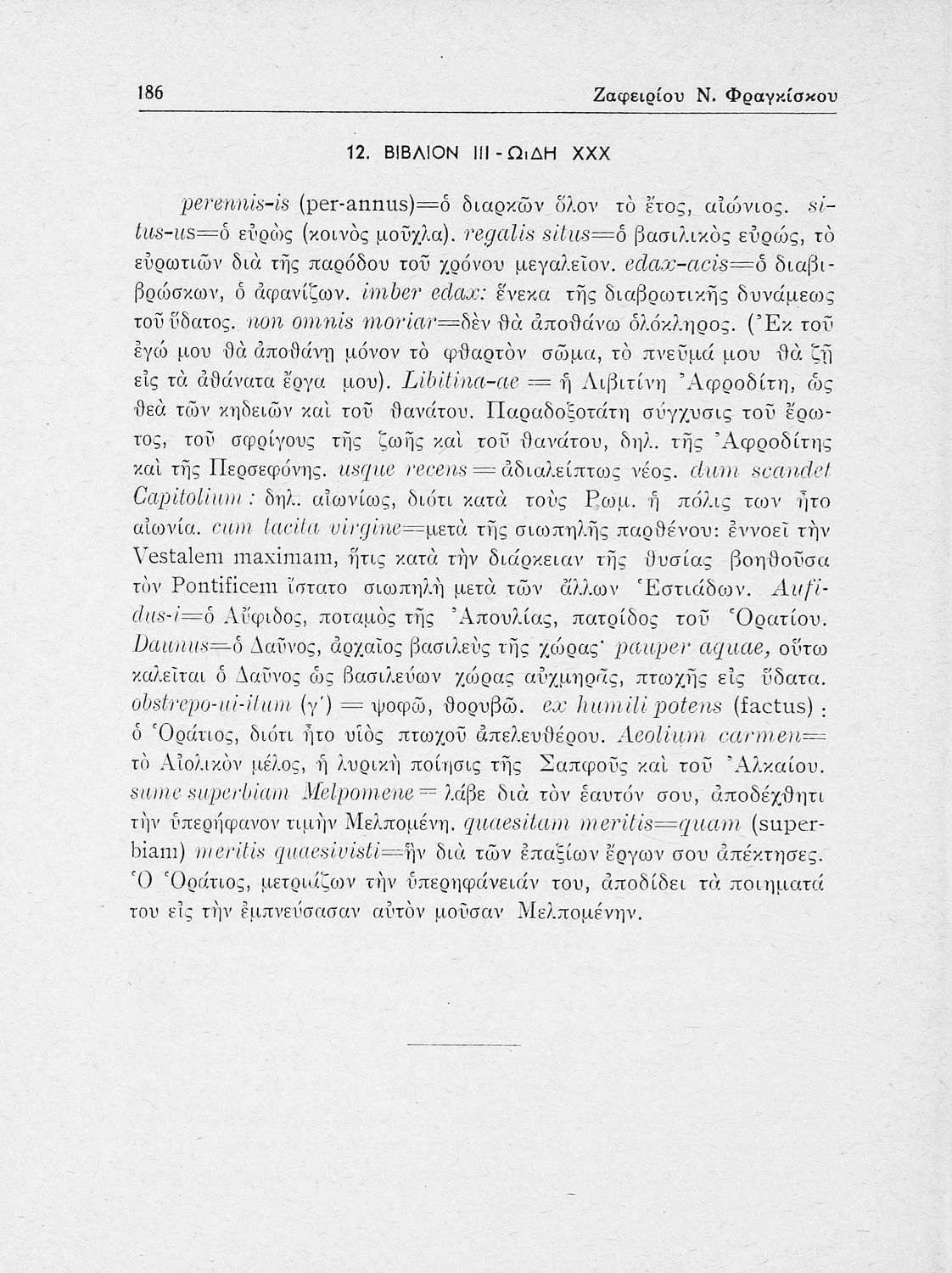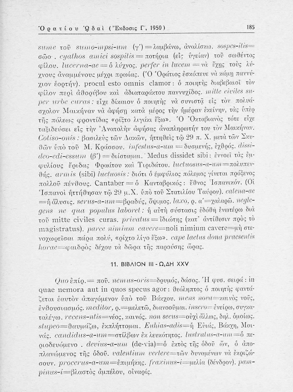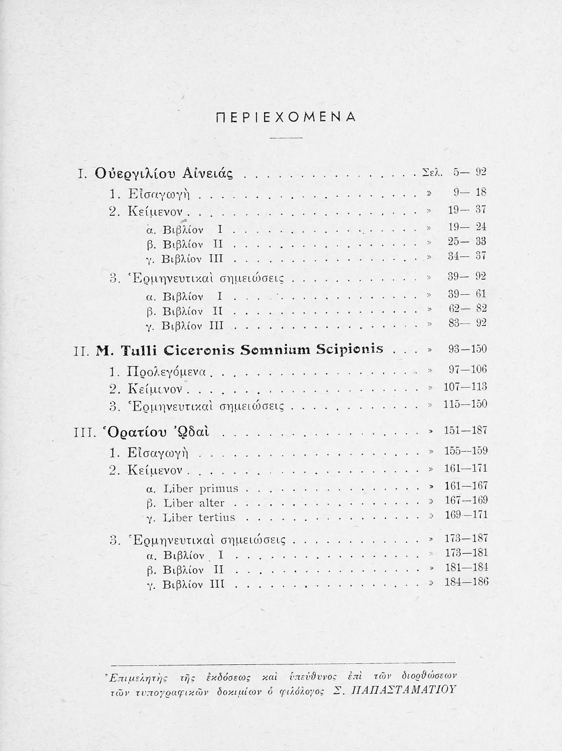 Πόπλιος Βιργίλιος Μάρων (P. Vergilius Maro), Μάρκος Τύλλιος Κικέρωνας (Marcus Tullius Ciceco), Κουίντος Οράτιος Φλάκκος (Q. Horati Flacci), Φωκίωνας Β. Βουσβούνης, Ερρίκος Σκάσσης, Ζαφείριος Ν. Φραγκίσκος (σχόλια)