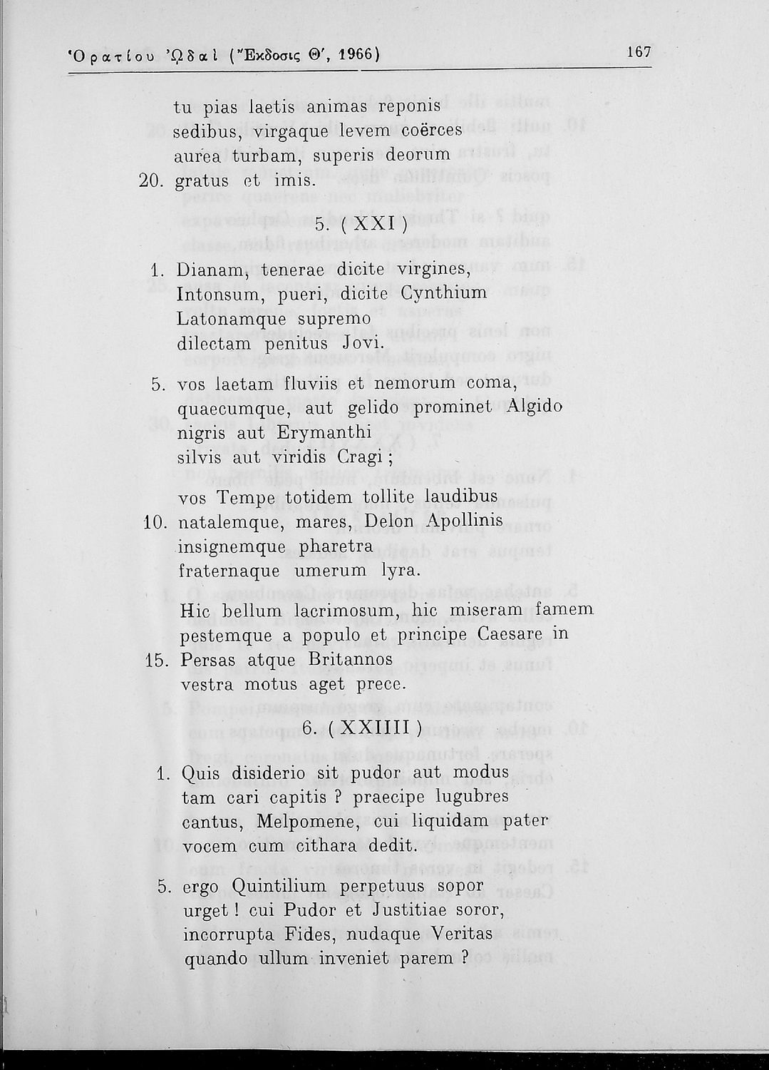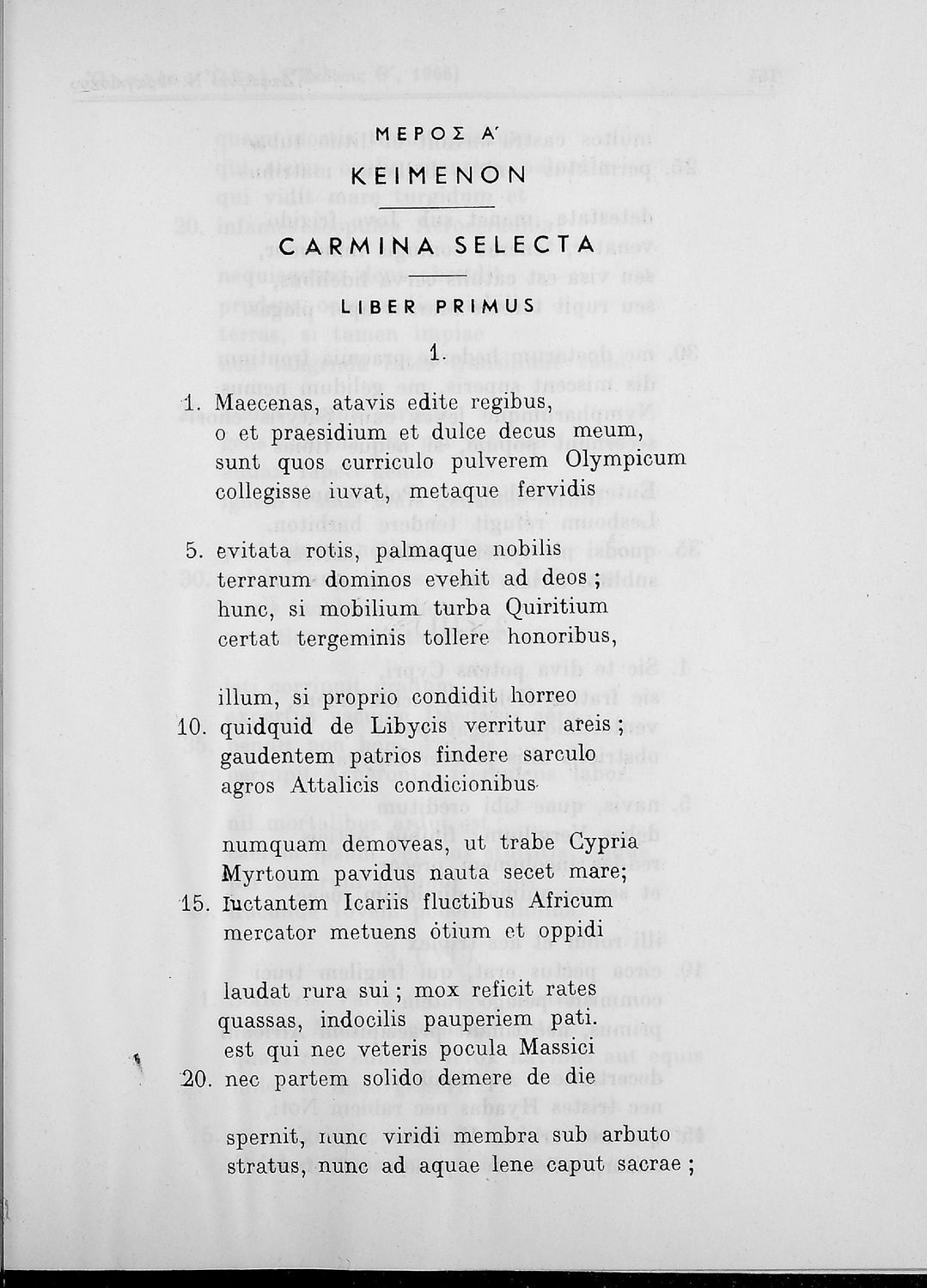 Ουεργιλίου Αινειάς (Εκλογαί), M. Tulli Ciceronis Somnium Scipionis,Οράτιου Ωδαί