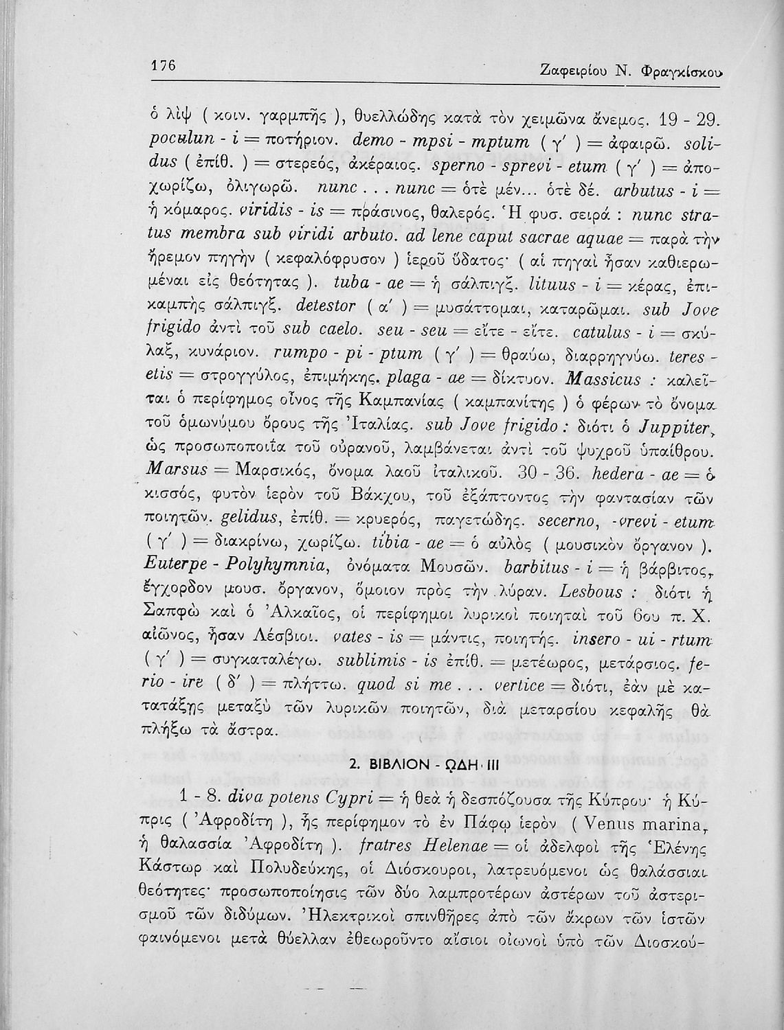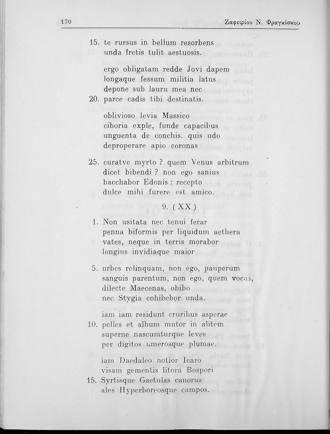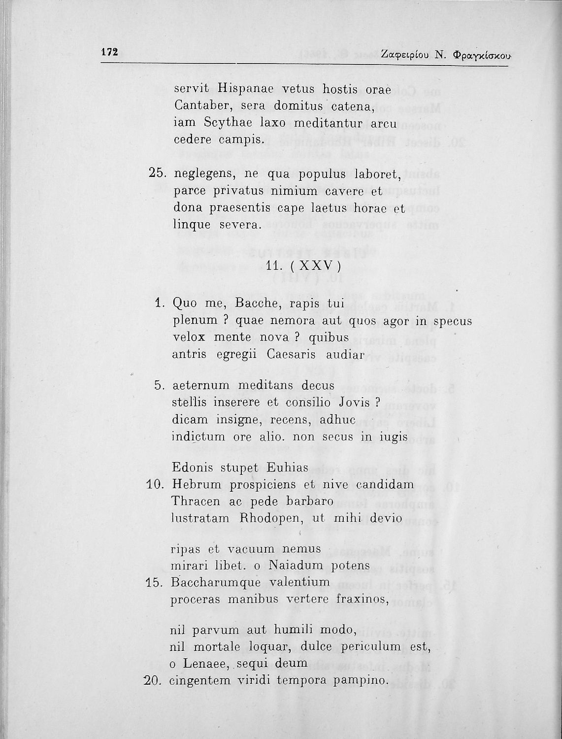 Πόπλιος Βιργίλιος Μάρων (P. Vergilius Maro), Μάρκος Τύλλιος Κικέρωνας (Marcus Tullius Ciceco), Κουίντος Οράτιος Φλάκκος (Q. Horati Flacci), Φωκίωνας Β. Βουσβούνης, Ερρίκος Σκάσσης, Ζαφείριος Ν. Φραγκίσκος (σχόλια)