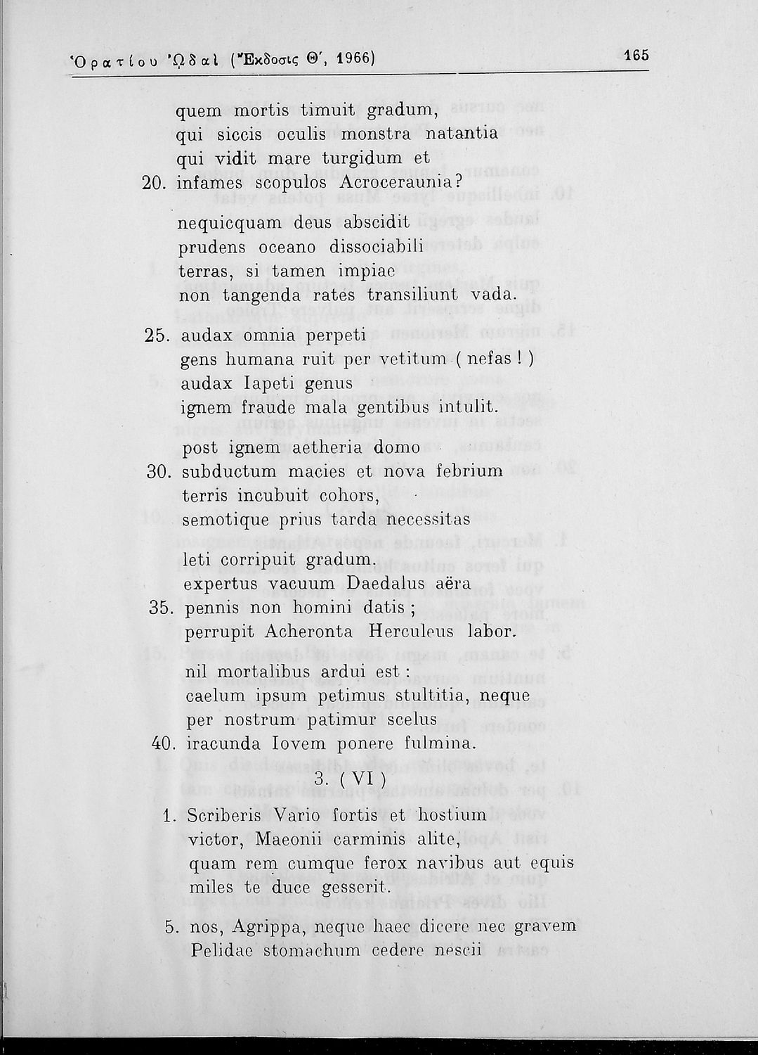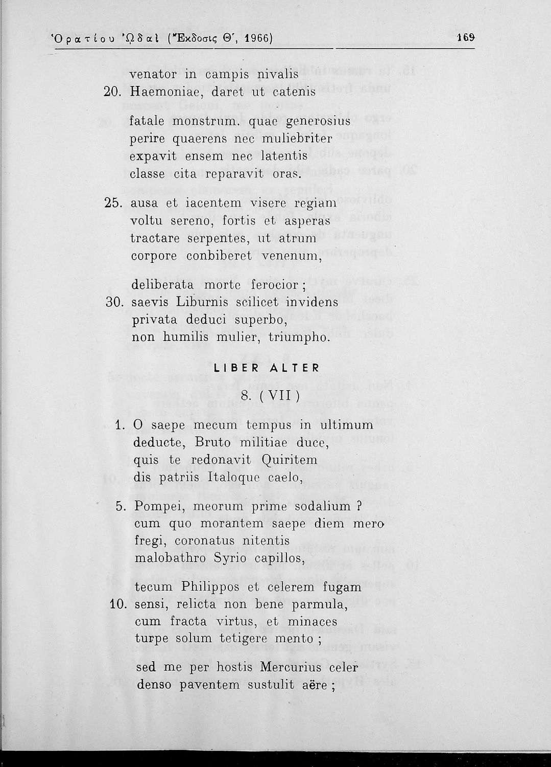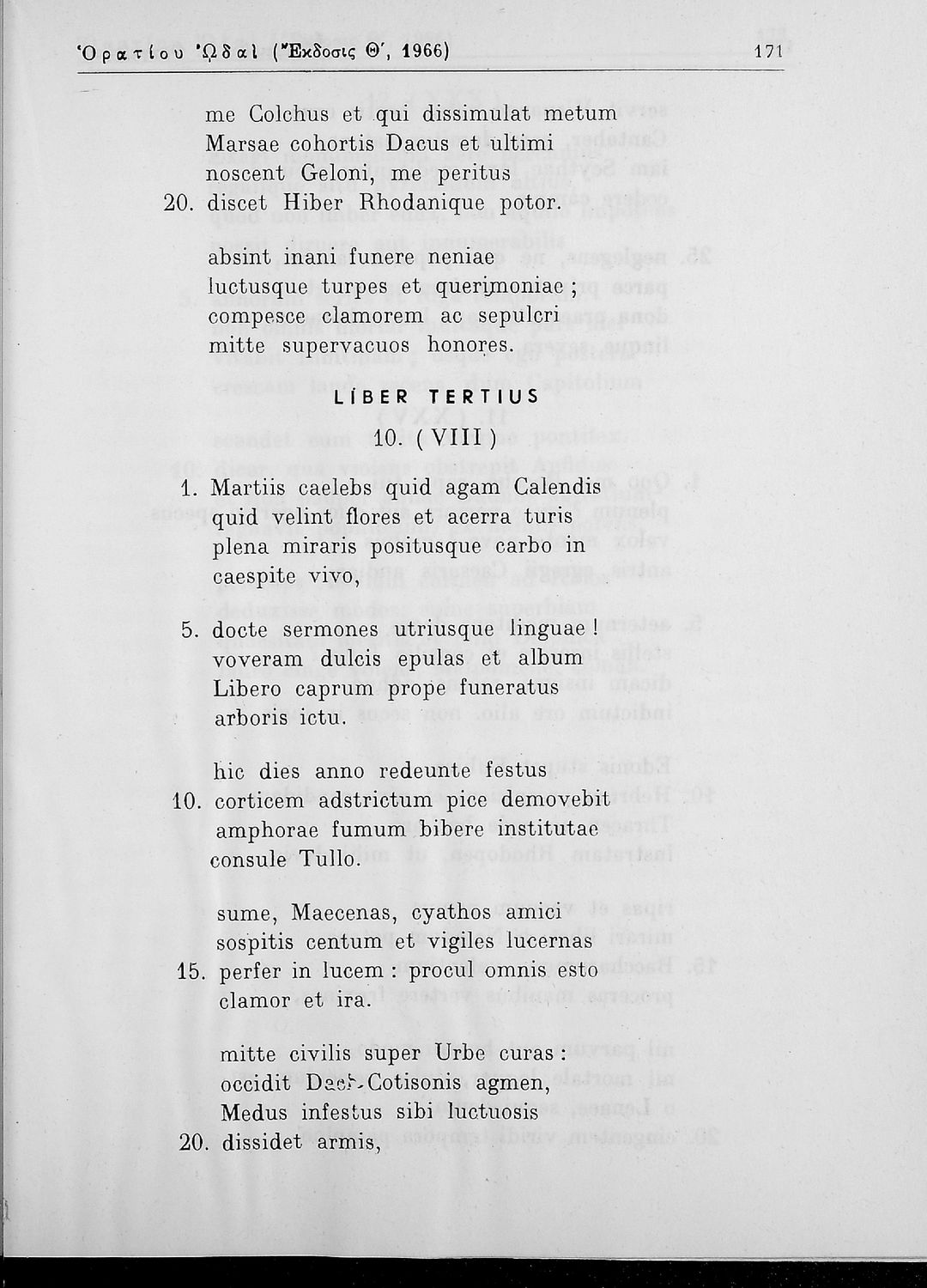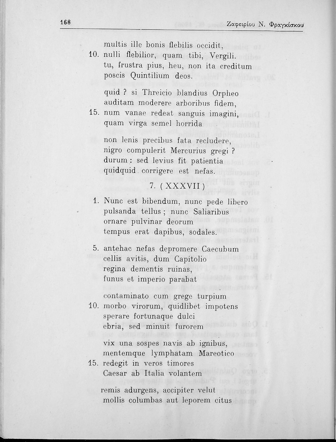 Πόπλιος Βιργίλιος Μάρων (P. Vergilius Maro), Μάρκος Τύλλιος Κικέρωνας (Marcus Tullius Ciceco), Κουίντος Οράτιος Φλάκκος (Q. Horati Flacci), Φωκίωνας Β. Βουσβούνης, Ερρίκος Σκάσσης, Ζαφείριος Ν. Φραγκίσκος (σχόλια)