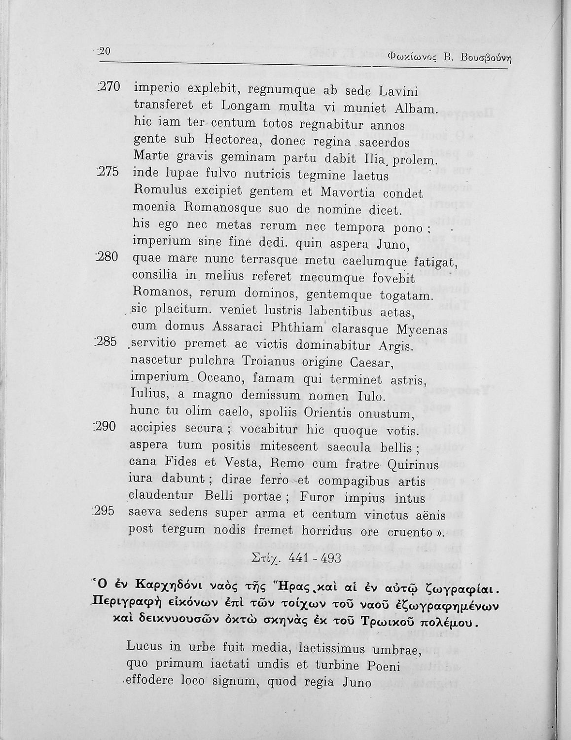 Πόπλιος Βιργίλιος Μάρων (P. Vergilius Maro), Μάρκος Τύλλιος Κικέρωνας (Marcus Tullius Ciceco), Κουίντος Οράτιος Φλάκκος (Q. Horati Flacci), Φωκίωνας Β. Βουσβούνης, Ερρίκος Σκάσσης, Ζαφείριος Ν. Φραγκίσκος (σχόλια)