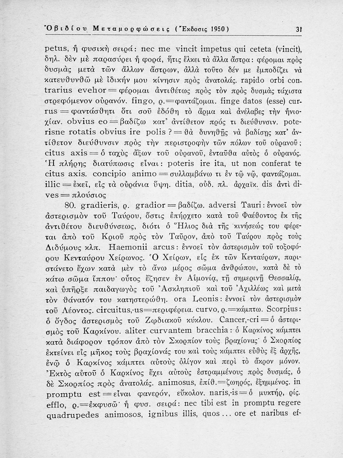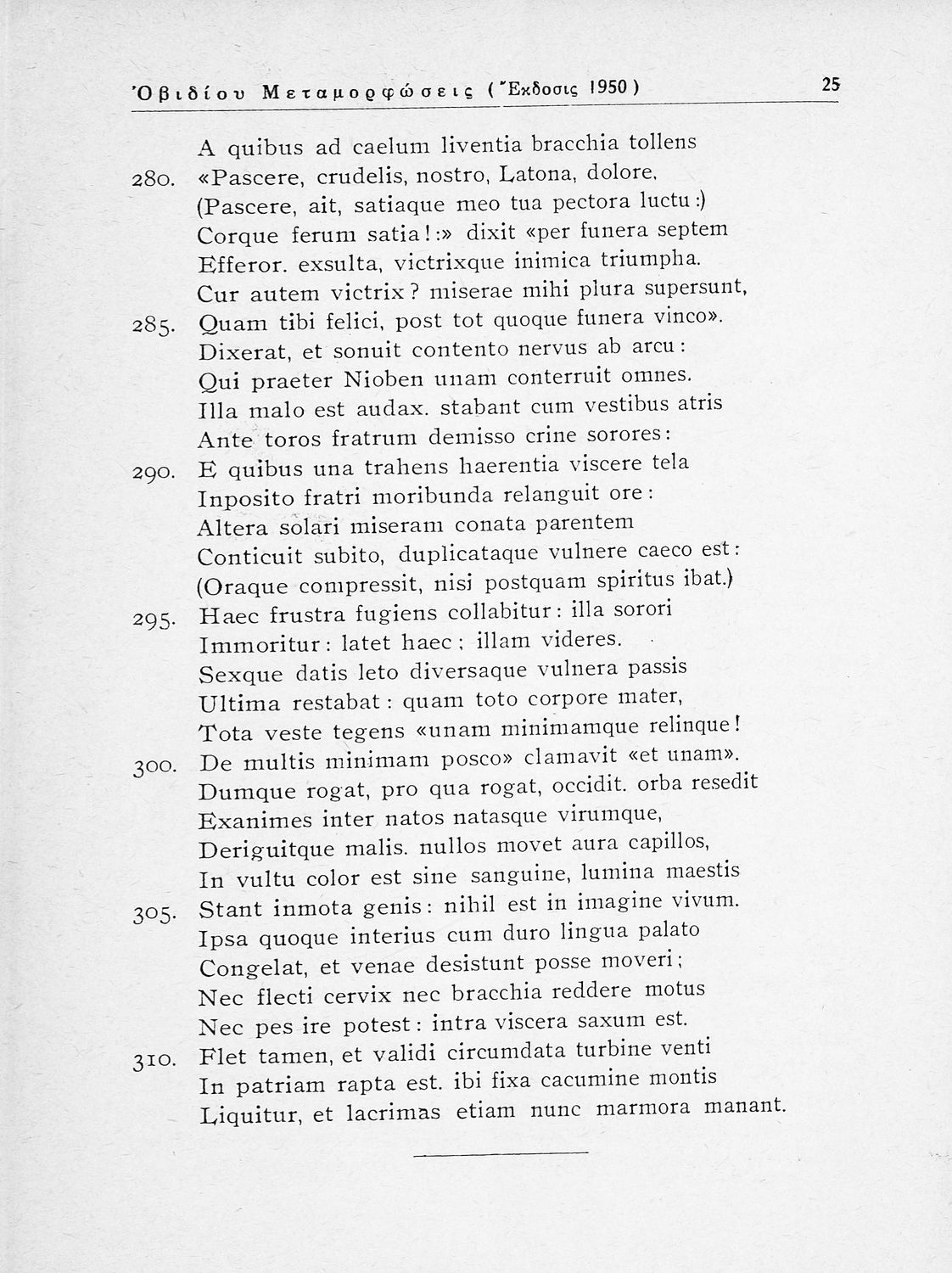 Σχολικό εγχειρίδιο Λατινικών για την Ε΄ Γυμνασίου παλαιού τύπου και την ΣΤ΄ Γυμνασίου νέου τύπου που περιέχει βιογραφικό σημείωμα του Οβίδιου, εισαγωγικά σχόλια, αποσπάσματα από τις Μεταμορφώσεις και ...