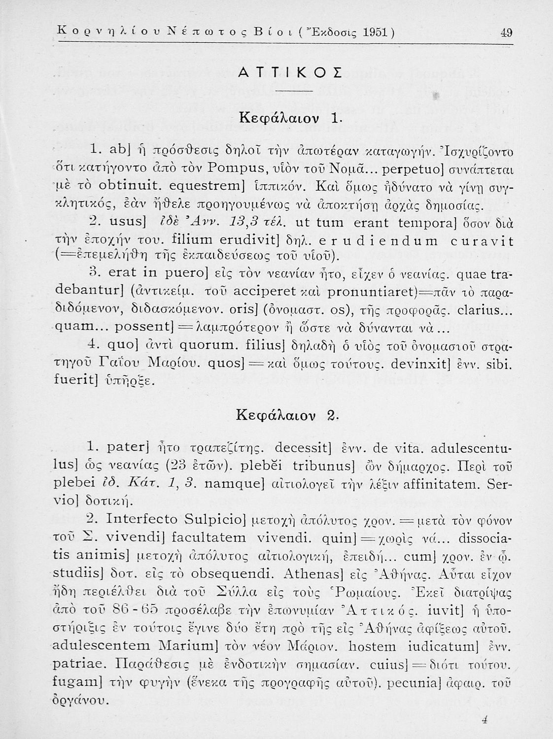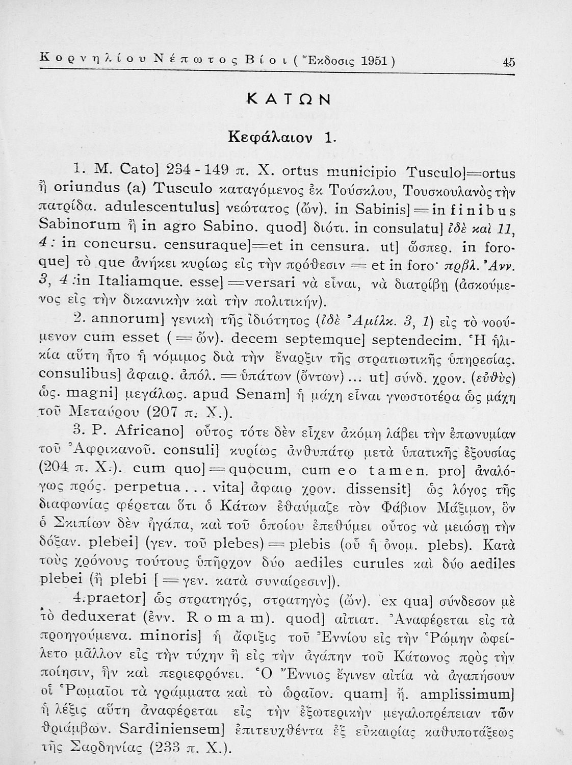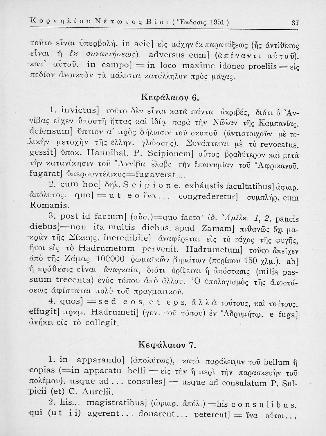 Σχολικό εγχειρίδιο Λατινικών για την Δ΄ Γυμνασίου παλαιού τύπου και την Ε΄ Γυμνασίου νέου τύπου που περιέχει σύντομο βιογραφικό σημείωμα του Νέπωτα, αποσπάσματα από τα έργα Αμίλκας, Αννίβας, Κάτων και Αττικός ...