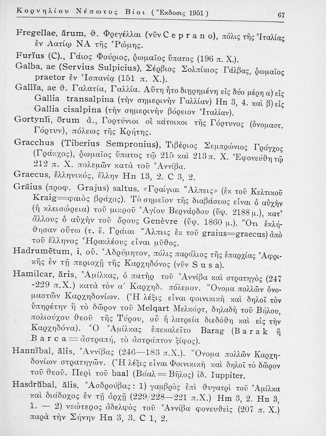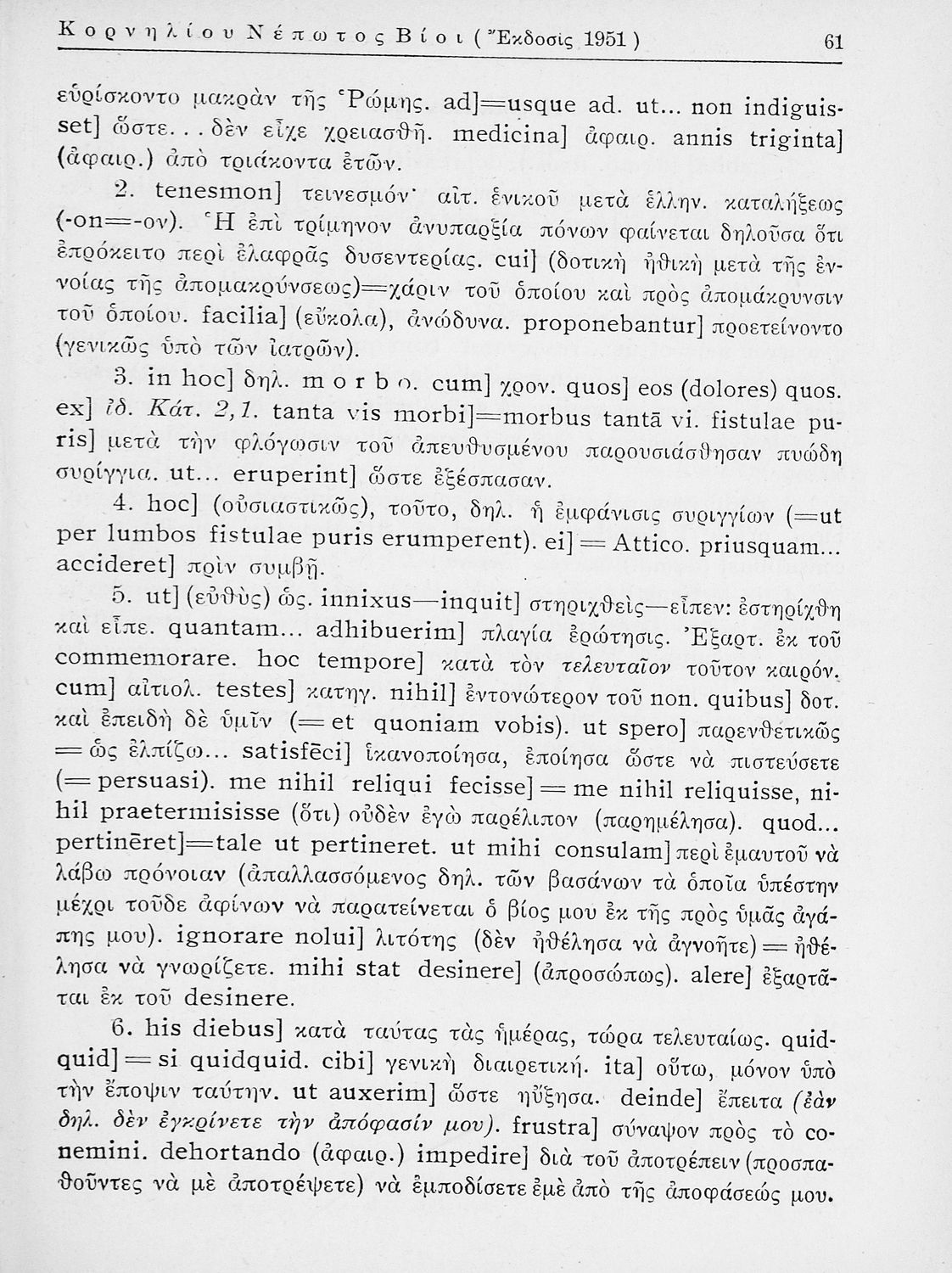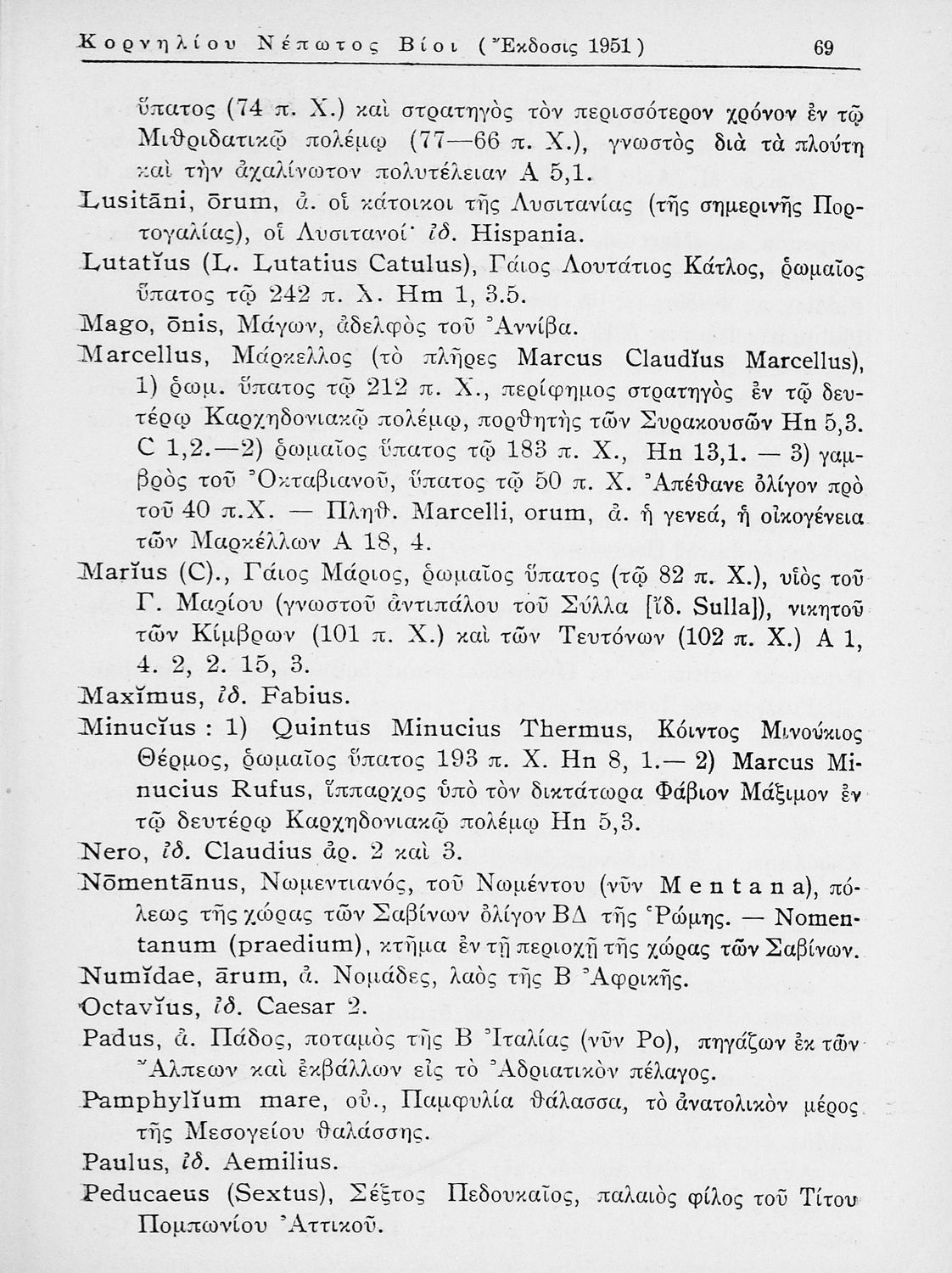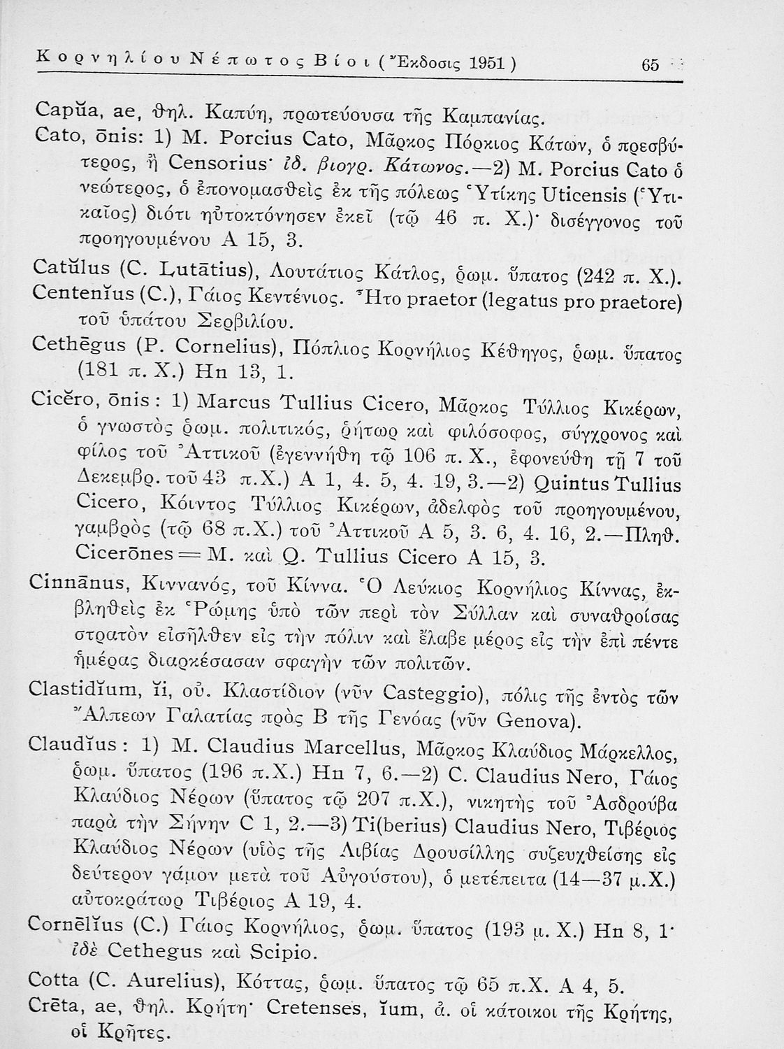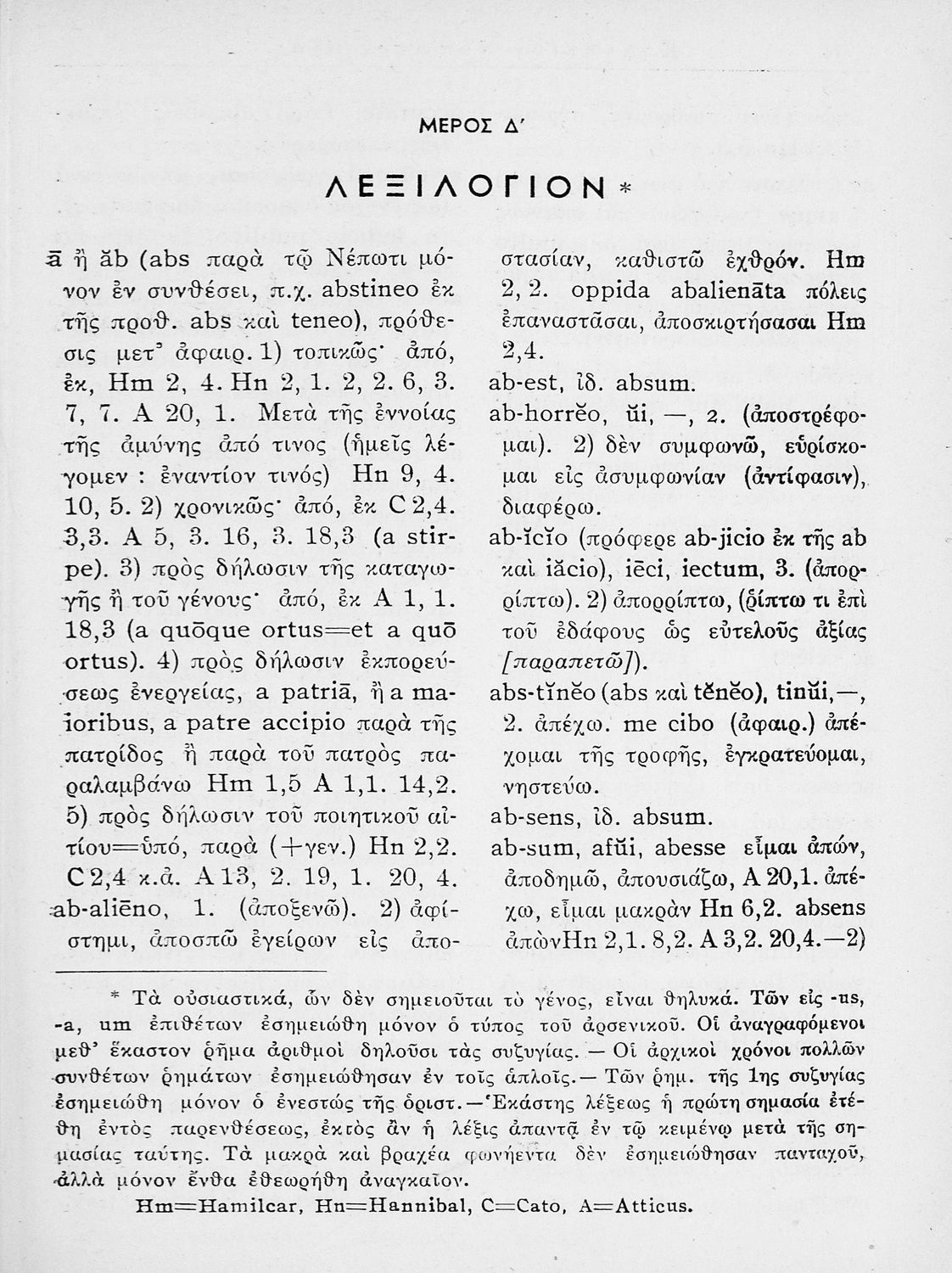 Σχολικό εγχειρίδιο Λατινικών Δ΄ Γυμνασίου που περιέχει σύντομο βιογραφικό σημείωμα του Νέπωτα, αποσπάσματα από τα έργα Αμίλκας, Αννίβας, Κάτων και Αττικός, ιστορικό και γεωγραφικό πίνακα και λεξιλόγιο. Ο συγγραφέας ήταν καθηγητής της Λατινικής Φιλολογίας στο Πανεπιστήμιο Αθηνών.