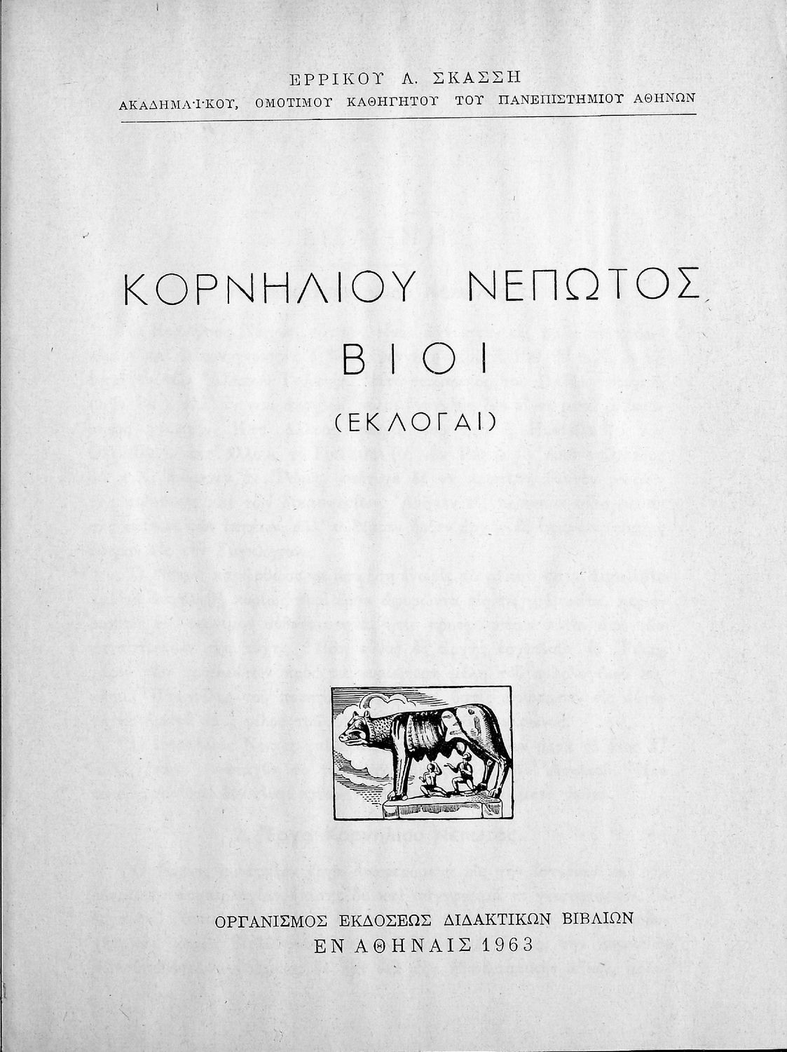 Συγγραφέας: Κορνήλιος Νέπως (Cornelius Nepos), Ερρίκος Α. Σκάσσης (σχόλια)