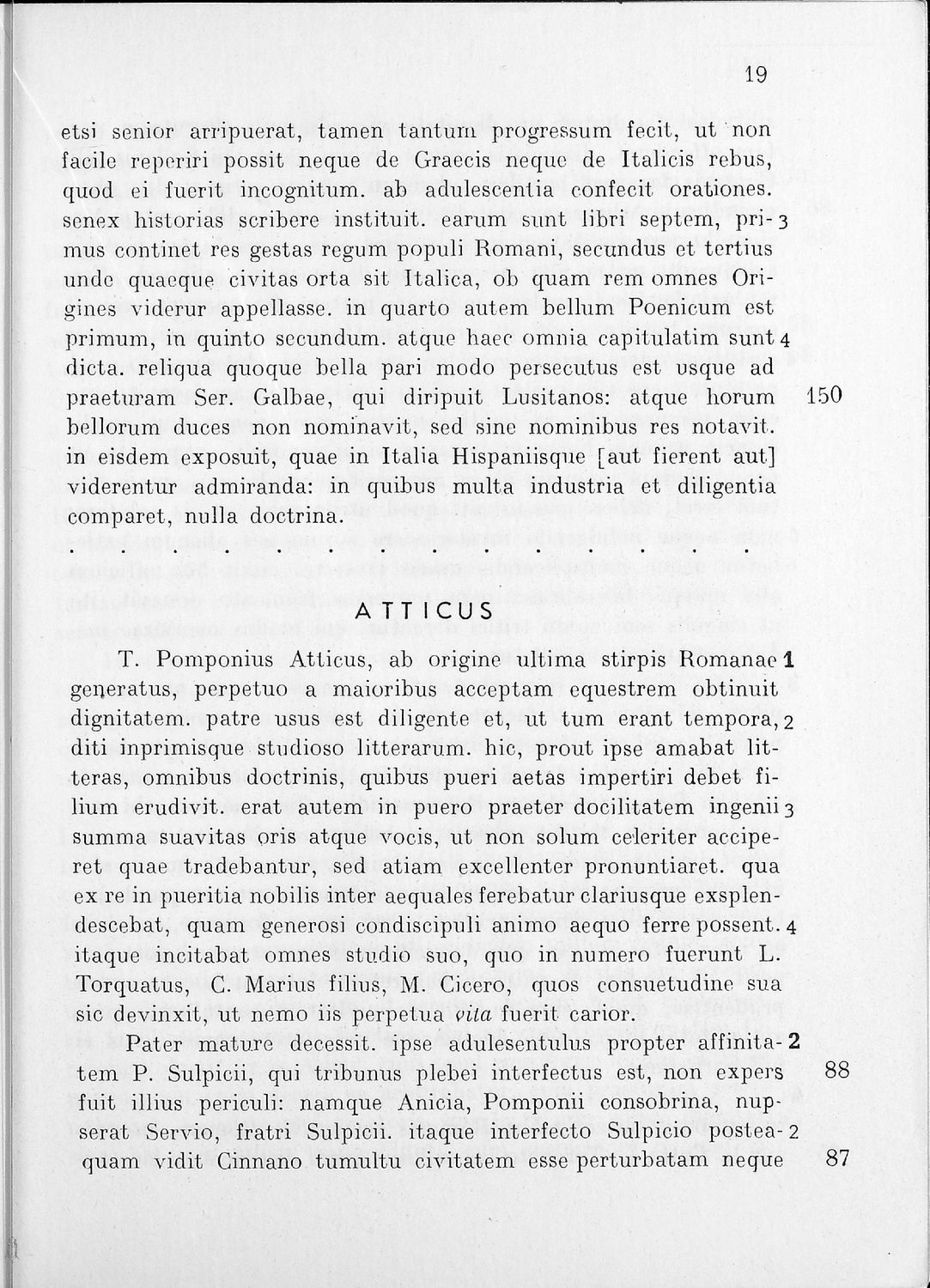 Σχολικό εγχειρίδιο Λατινικών που περιέχει σύντομο βιογραφικό σημείωμα του Νέπωτα, αποσπάσματα από τα έργα Αμίλκας, Αννίβας, Κάτων και Αττικός, ιστορικό και γεωγραφικό πίνακα και λεξιλόγιο. Ο συγγραφέας ήταν ...