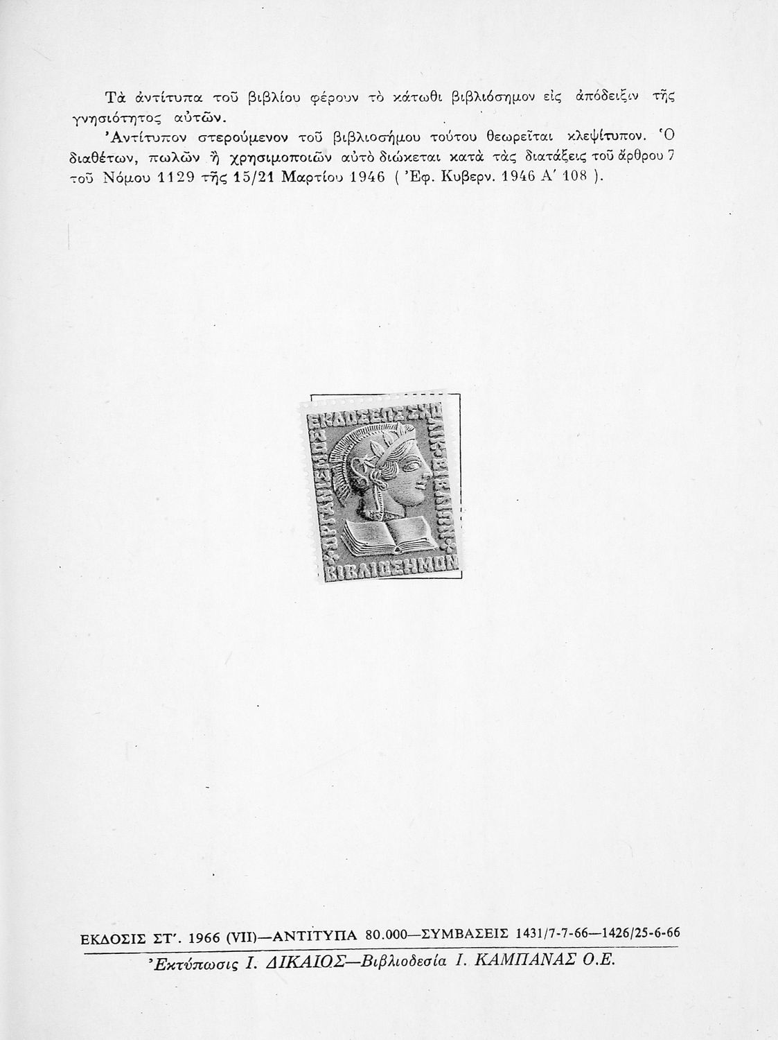 Εκδότης: Οργανισμός Εκδόσεως Διδακτικών Βιβλίων Έτος έκδοσης: 1966 Τόπος έκδοσης: Αθήνα Έκδοση: 6η Υπουργική απόφαση / Σύμβαση: 1431/7-7-1966, 1426/25-6-1966 Έτος έγκρισης: 1966 |