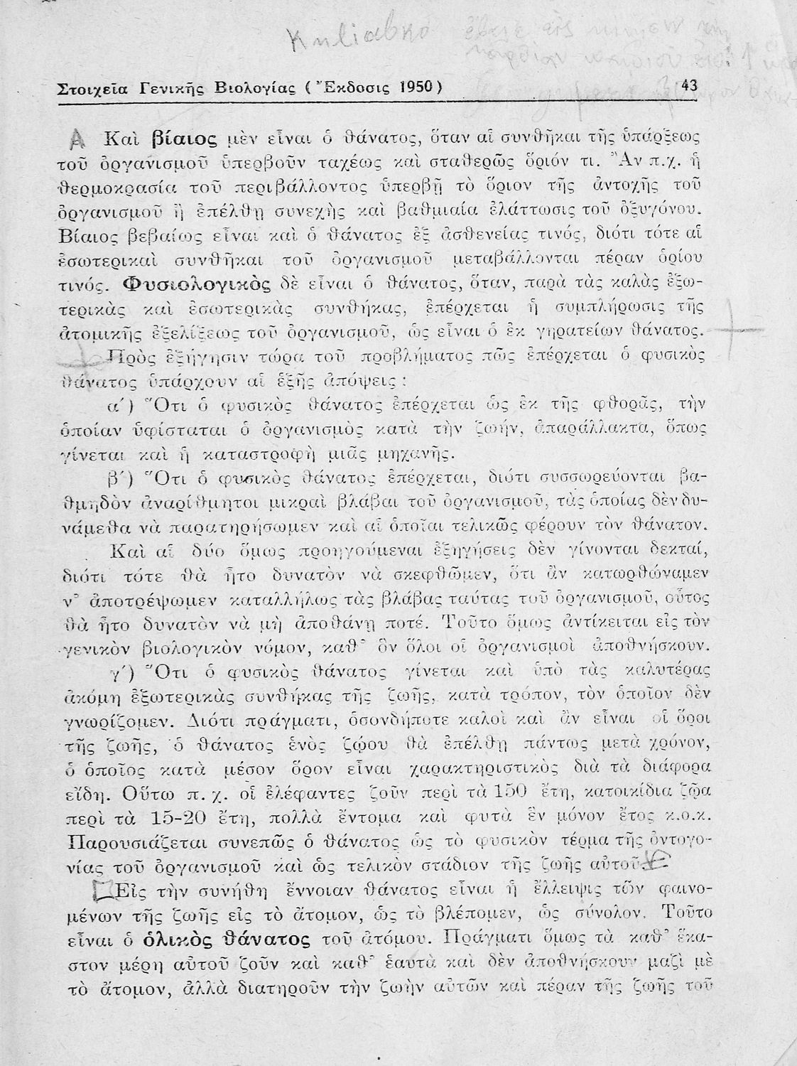 Στοιχεία Γενικής Βιολογίας δια την Δ΄ τάξιν των Γυμνασίων