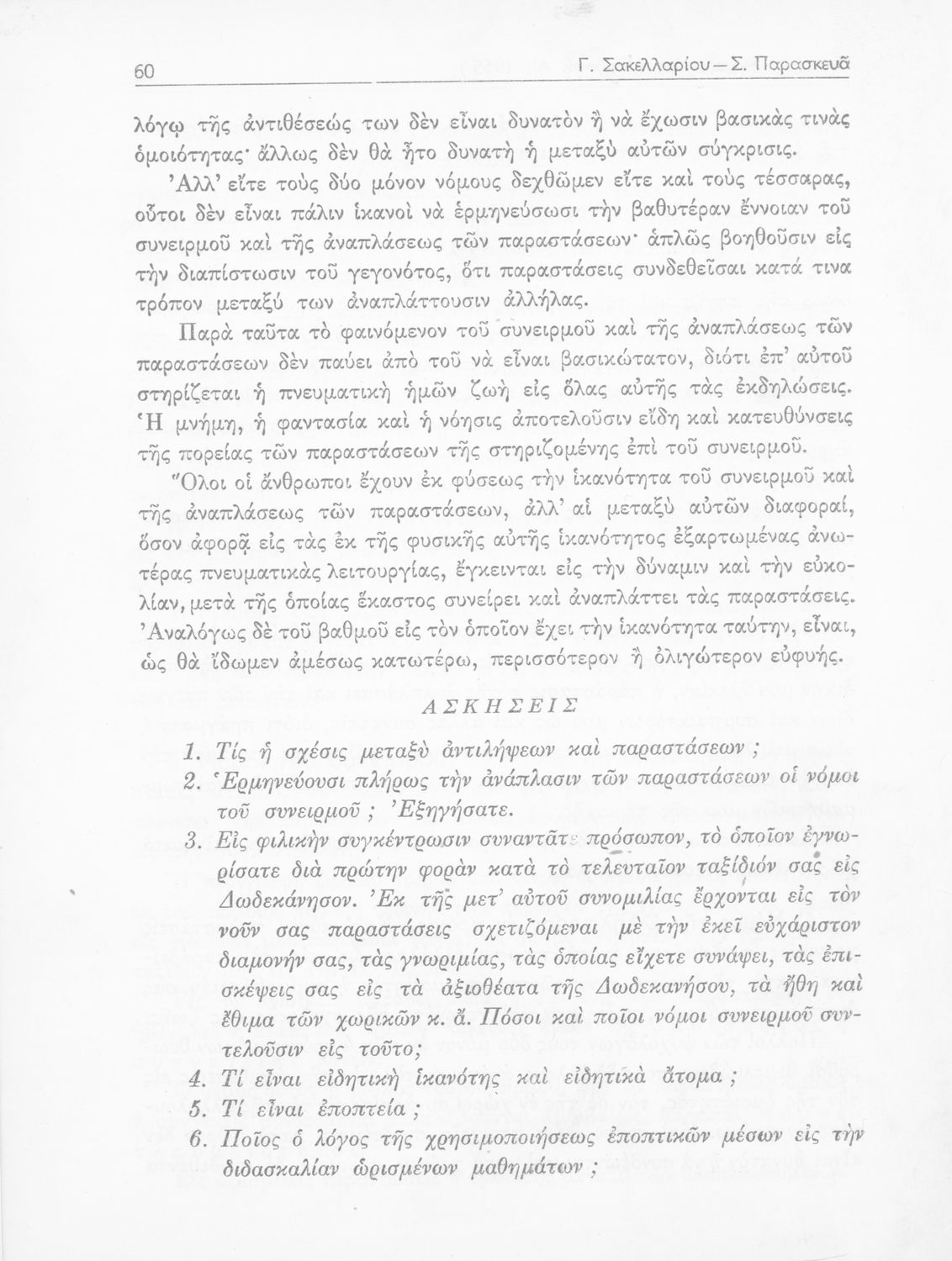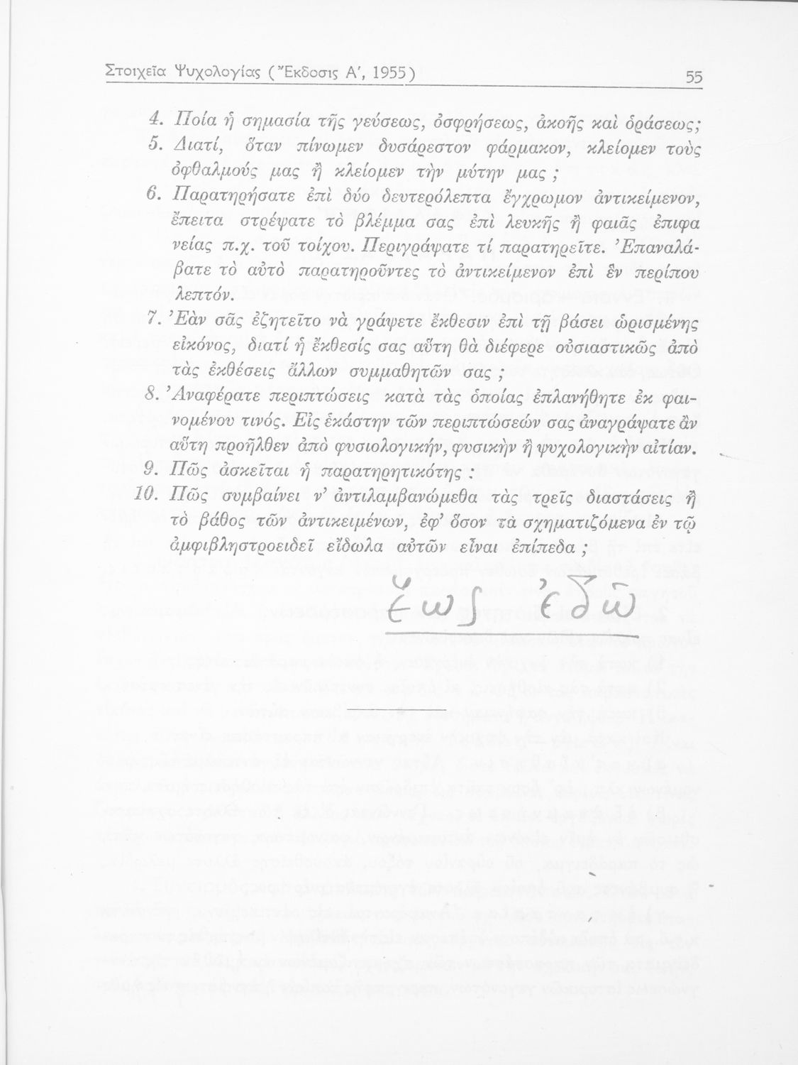 Σχολικό εγχειρίδιο Ψυχολογίας που περιλαμβάνει θεωρία και ασκήσεις και εξετάζει τον ψυχικό βίο από νοητική, συναισθηματική και βουλητική άποψη.