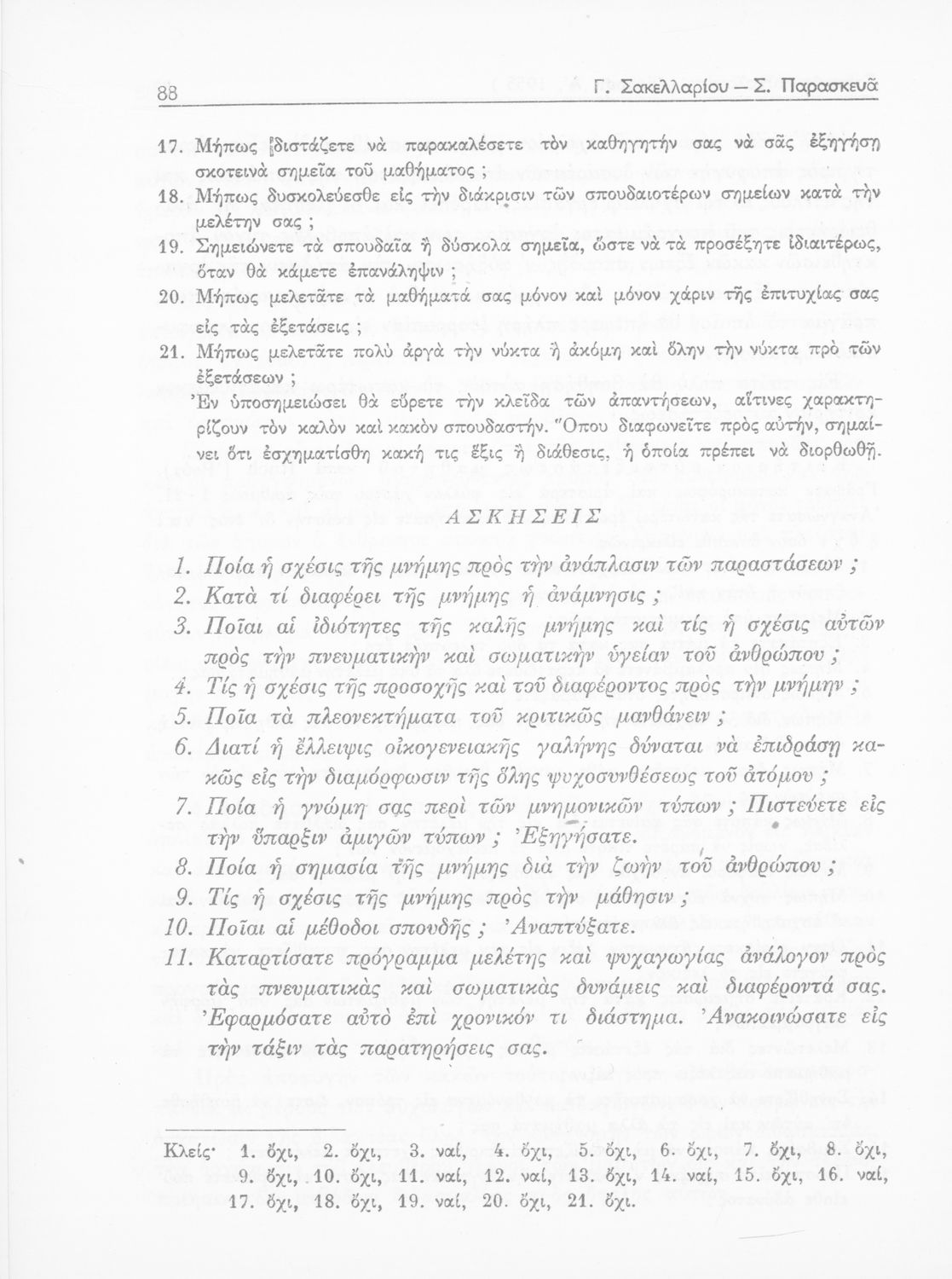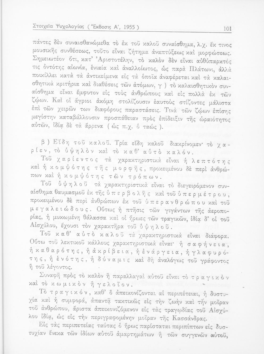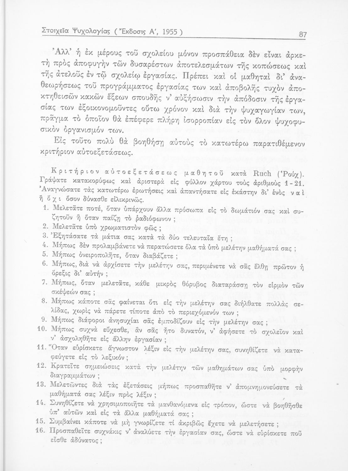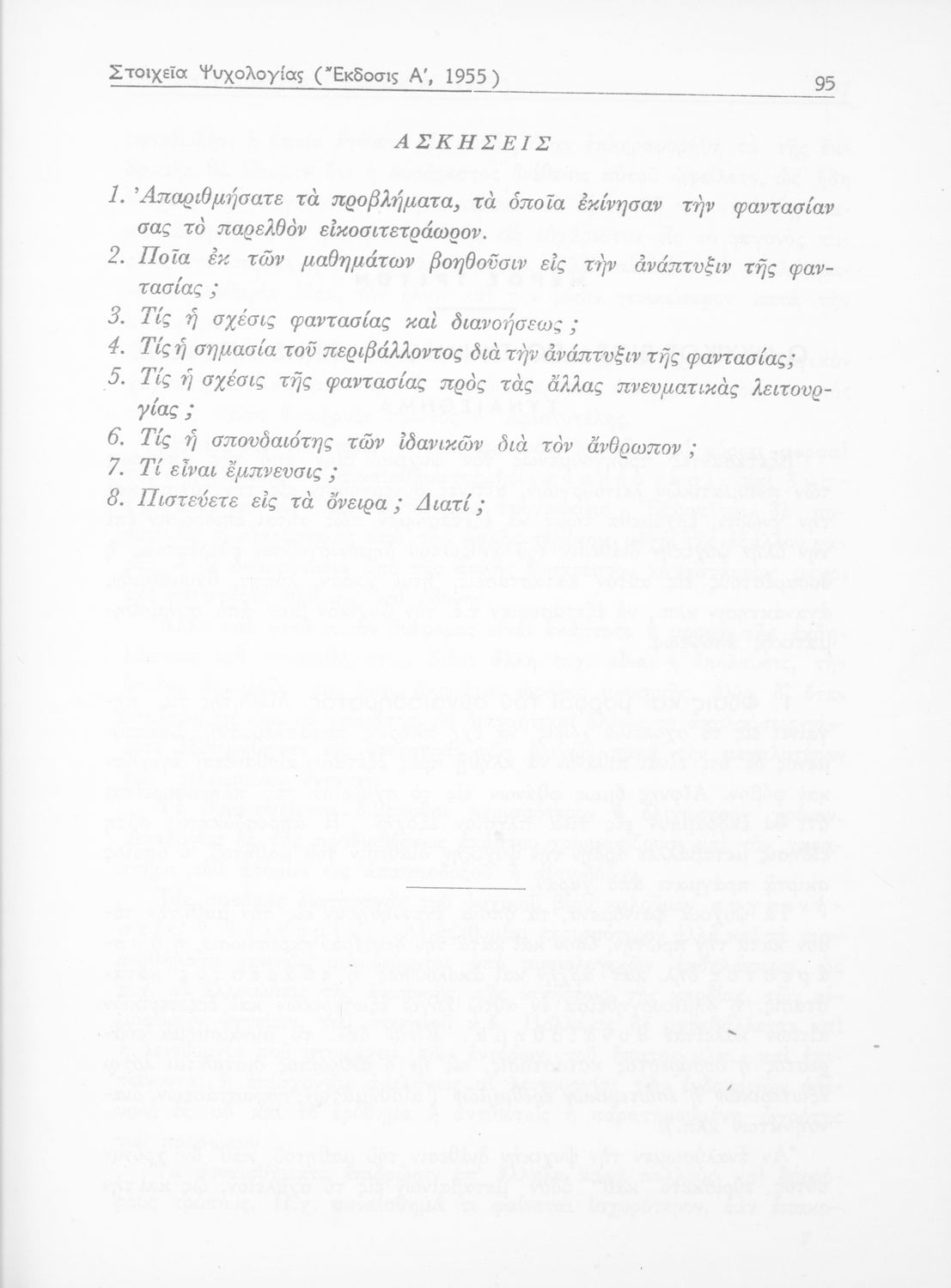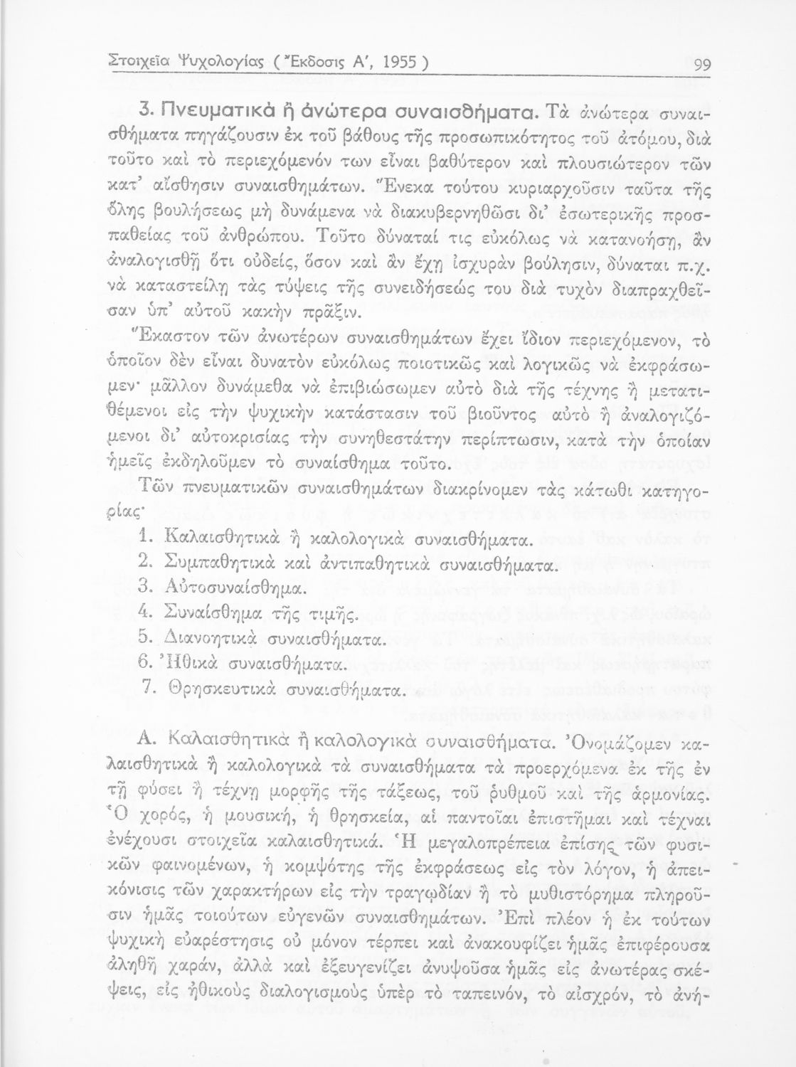 Σχολικό εγχειρίδιο Ψυχολογίας που περιλαμβάνει θεωρία και ασκήσεις και εξετάζει τον ψυχικό βίο από νοητική, συναισθηματική και βουλητική άποψη.