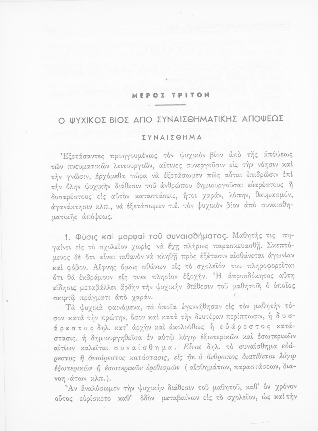 Μάθημα: Ψυχολογία Γλώσσα: Απλή καθαρεύουσα Παρουσίαση περιεχομένου: Σχολικό εγχειρίδιο Ψυχολογίας που περιλαμβάνει θεωρία και ασκήσεις και εξετάζει τον ψυχικό βίο από νοητική, συναισθηματική και βουλητική άποψη. |