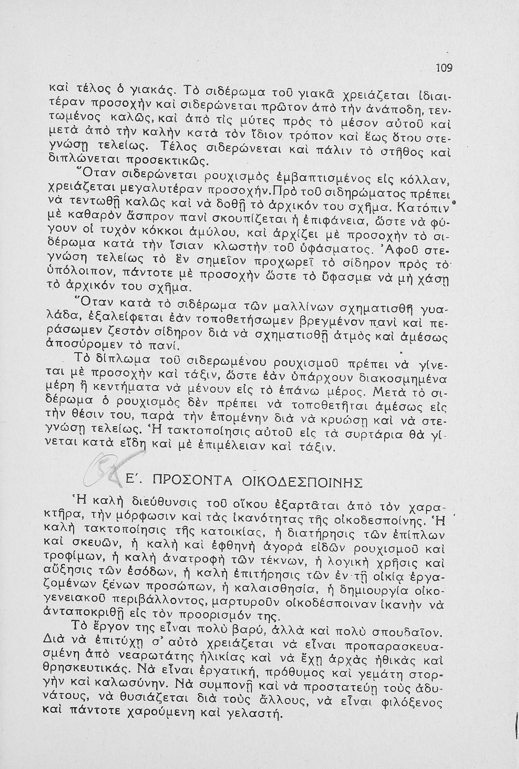 Τίτλος: Οικιακή οικονομία: διαιτητική και καλή συμπεριφορά: δια τας σπουδάστριας των παιδαγωγικών ακαδημιών, τας μαθητρίας των Γυμνασίων, Εμπορικών Σχολών, αγροτολεσχών και δια κάθε οικοκυράν