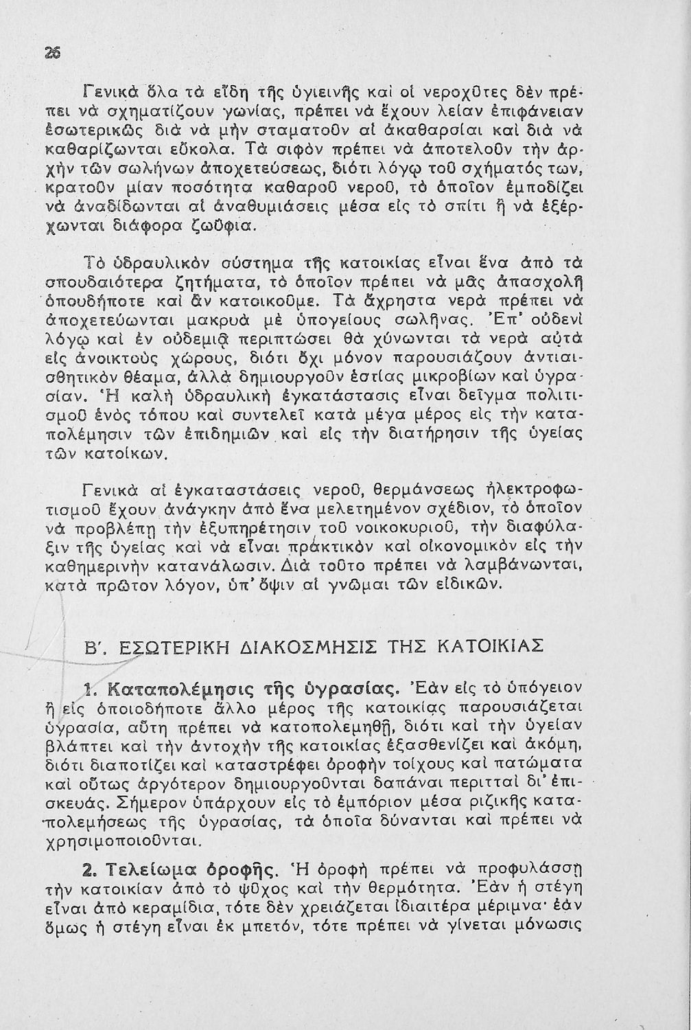 Σχολικό εγχειρίδιο Οικιακής Οικονομίας που εστιάζει στην υγιεινή της κατοικίας, τη διατροφή και την καλή συμπεριφορά.