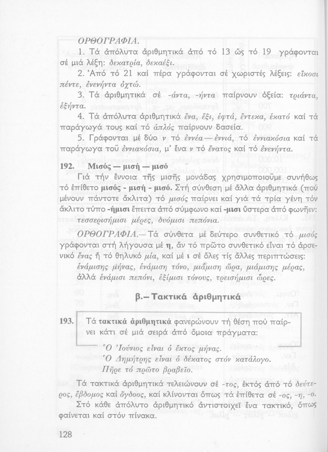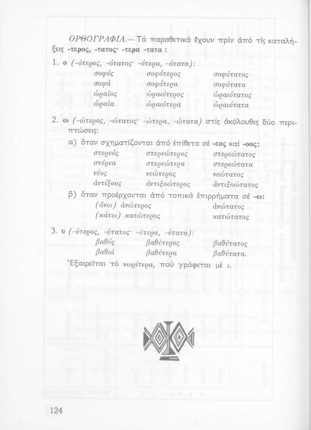 Σχολικό εγχειρίδιο με κανόνες Γραμματικής της Νεοελληνικής Γλώσσας. Το συγκεκριμένο τεύχος περιέχει ορθογραφικό οδηγό και κατάλογο ανώμαλων ρημάτων.
