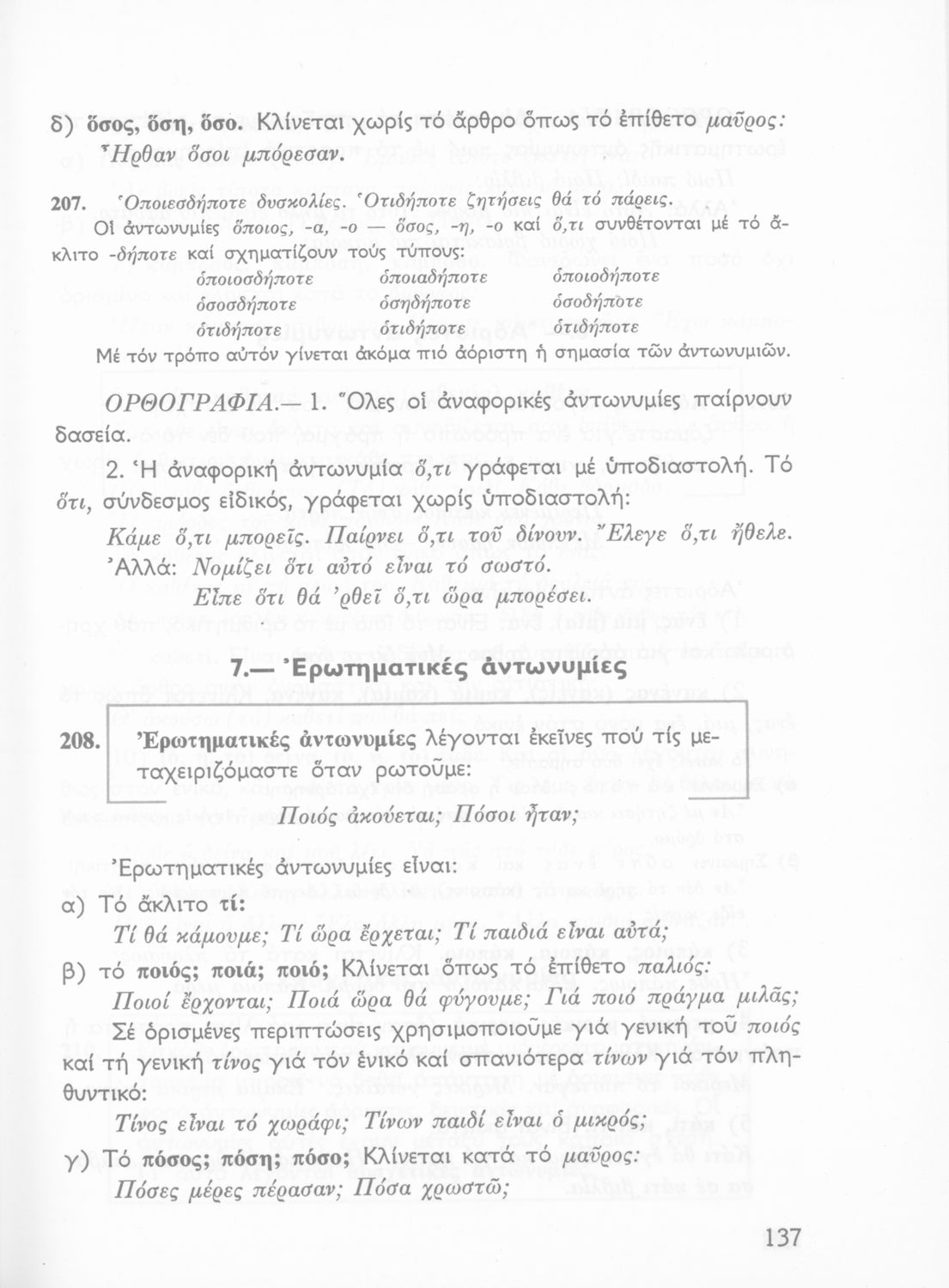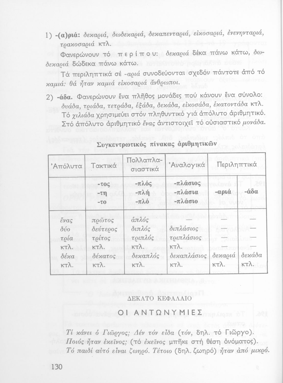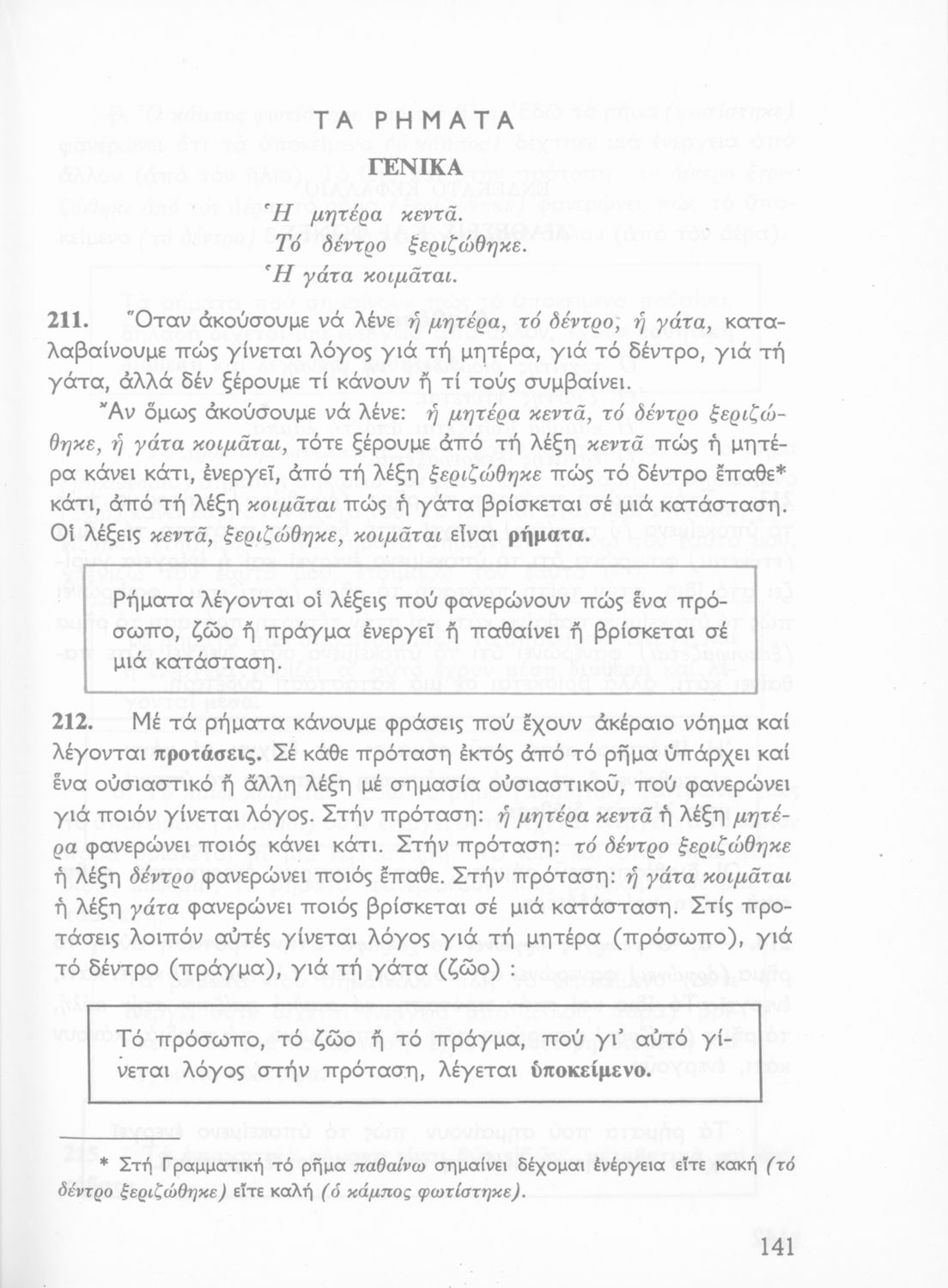 Σχολικό εγχειρίδιο Γραμματικής για τη ΣΤ΄ Δημοτικού και τις τάξεις της Μέσης εκπαίδευσης. Περιέχει τη διδασκαλία της Γραμματικής της δημοτικής και για τους παιδαγωγούς αλλά και τους μαθητές.