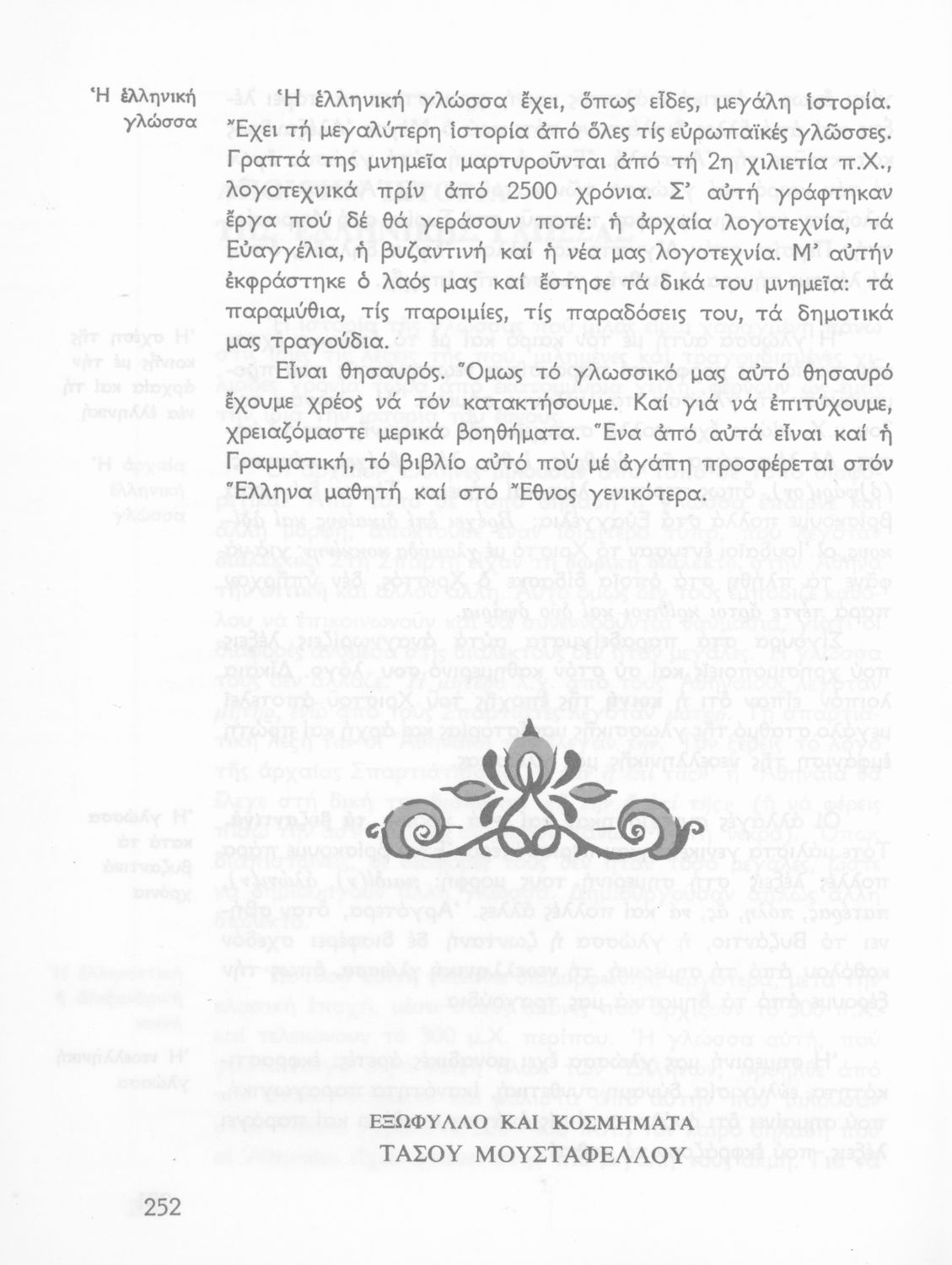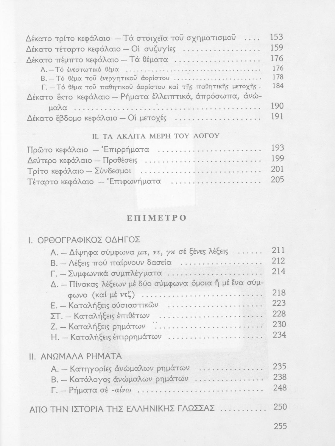 Σχολικό εγχειρίδιο Γραμματικής για τη ΣΤ΄ Δημοτικού και τις τάξεις της Μέσης εκπαίδευσης. Περιέχει τη διδασκαλία της Γραμματικής της δημοτικής και για τους παιδαγωγούς αλλά και τους μαθητές.