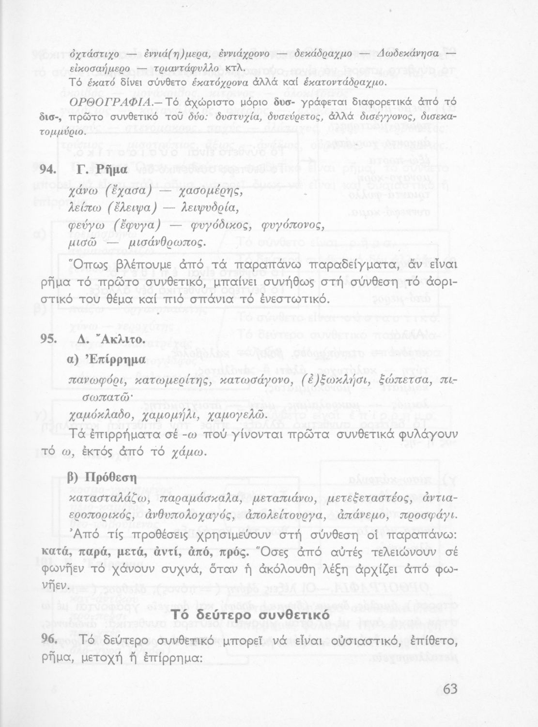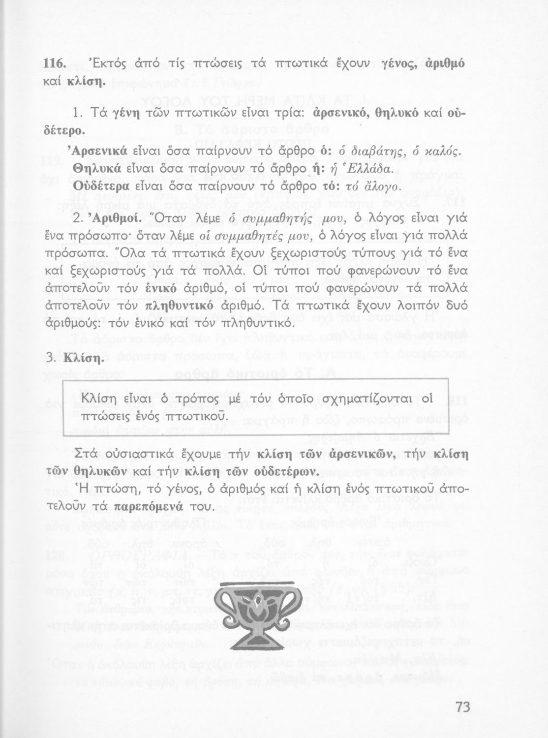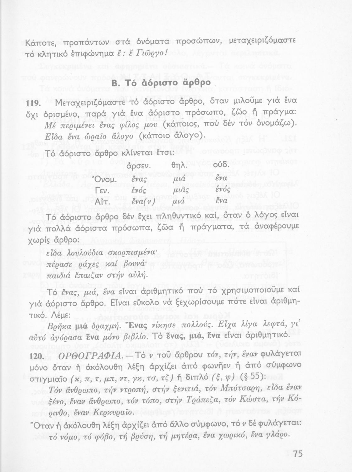 Σχολικό εγχειρίδιο με κανόνες Γραμματικής της Νεοελληνικής Γλώσσας. Το συγκεκριμένο τεύχος περιέχει ορθογραφικό οδηγό και κατάλογο ανώμαλων ρημάτων.
