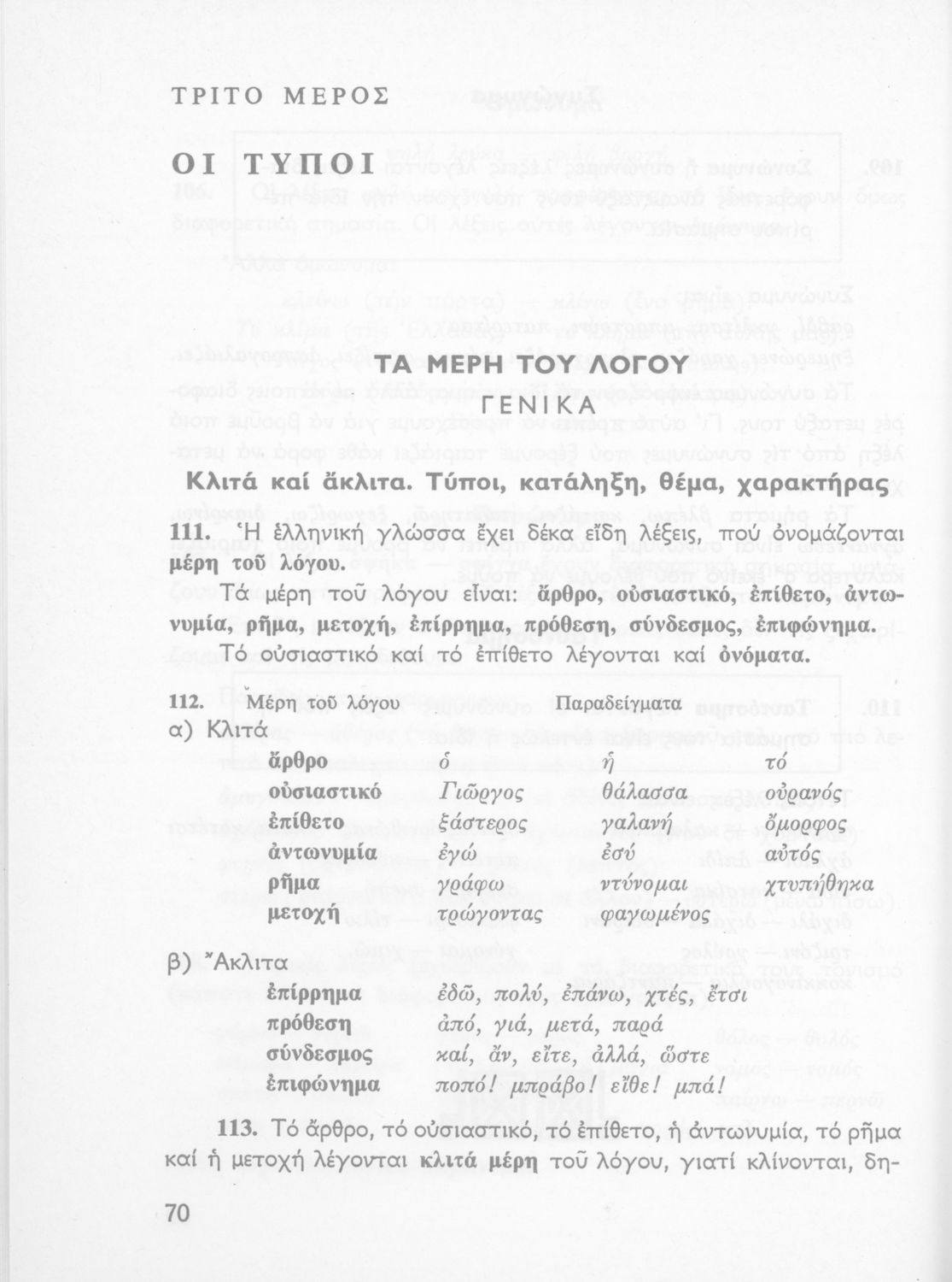 Σχολικό εγχειρίδιο Γραμματικής για τη ΣΤ΄ Δημοτικού και τις τάξεις της Μέσης εκπαίδευσης. Περιέχει τη διδασκαλία της Γραμματικής της δημοτικής και για τους παιδαγωγούς αλλά και τους μαθητές.