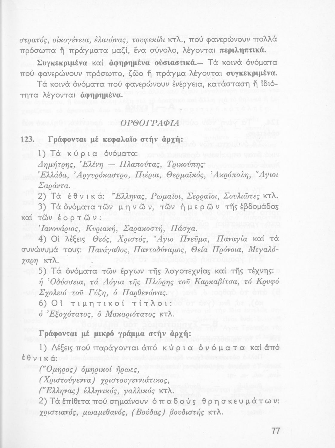Σχολικό εγχειρίδιο Γραμματικής για την Ε' και ΣΤ΄ τάξη με κανόνες και παράδειγμα που εστιάζει στα μέρη του λόγου και στην κλίση τους. Το βιβλίο αποτελεί σύνοψη Της Μικρής Νεοελληνικής Γραμματικής του ίδιου ...