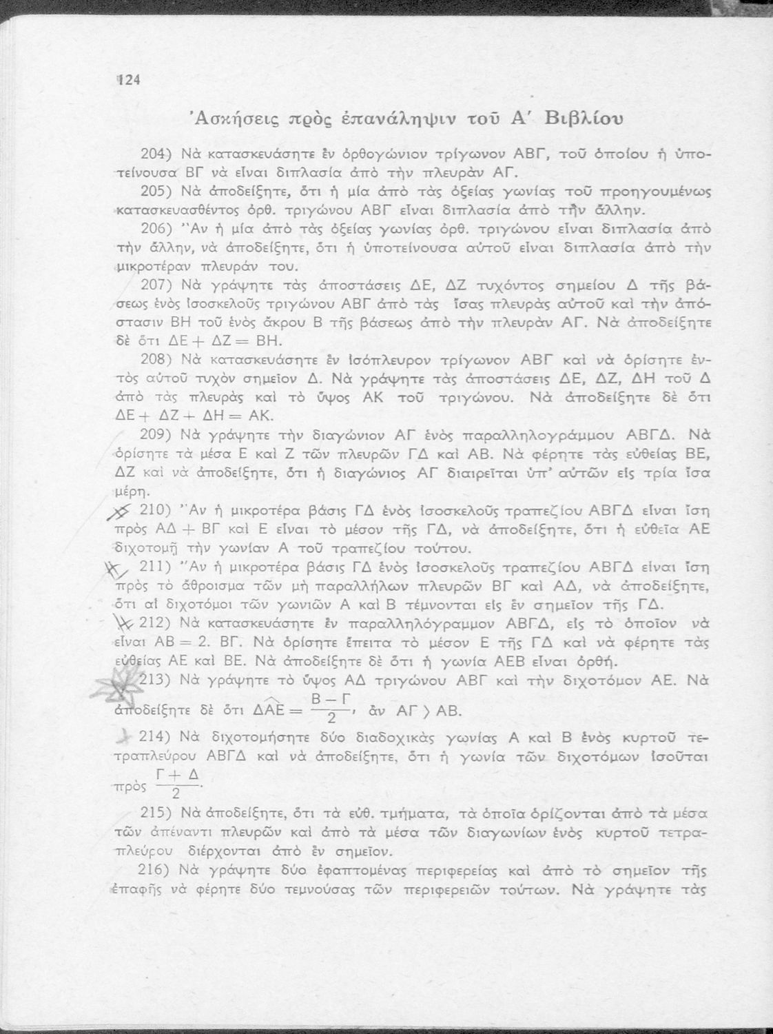 Σχολικό εγχειρίδιο Γεωμετρίας Γυμνασίου που είναι χωρισμένο σε θεωρήματα και ασκήσεις και εστιάζει στα βασικά θεωρήματα και ιδιότητες των γεωμετρικών σχημάτων. .