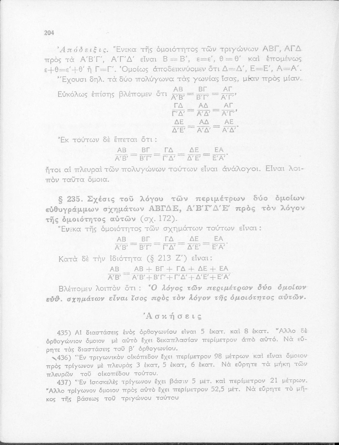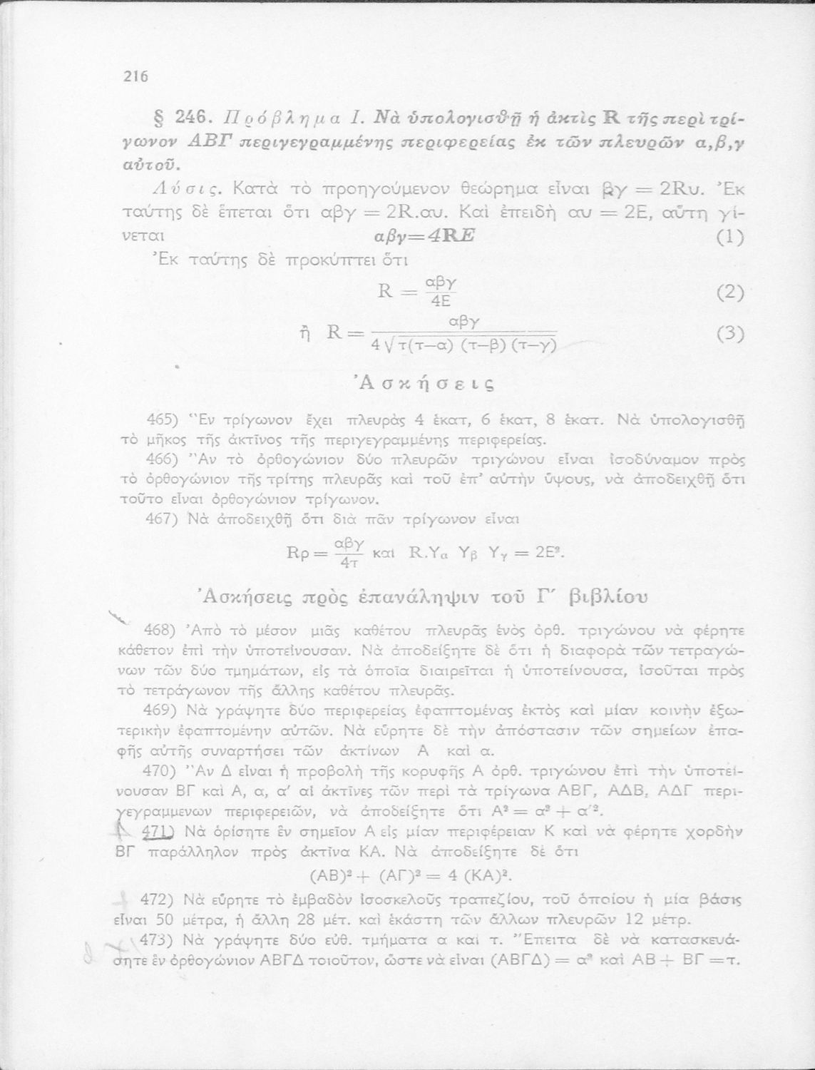 Θεωρητική γεωμετρία δια τας ανωτέρας τάξεις των Γυμνασίων