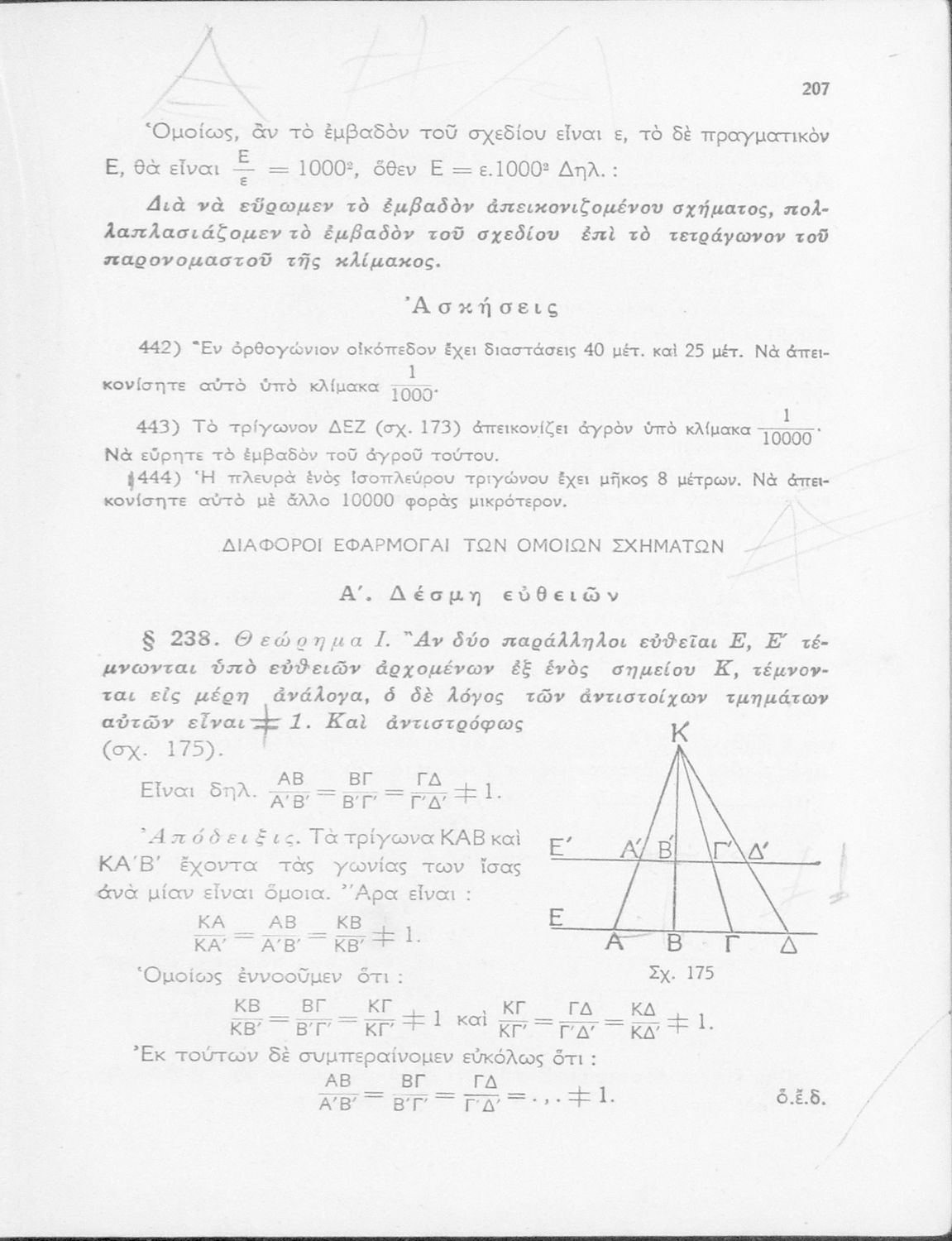 Σχολικό εγχειρίδιο Γεωμετρίας Γυμνασίου που είναι χωρισμένο σε θεωρήματα και ασκήσεις και εστιάζει στα βασικά θεωρήματα και ιδιότητες των γεωμετρικών σχημάτων. .