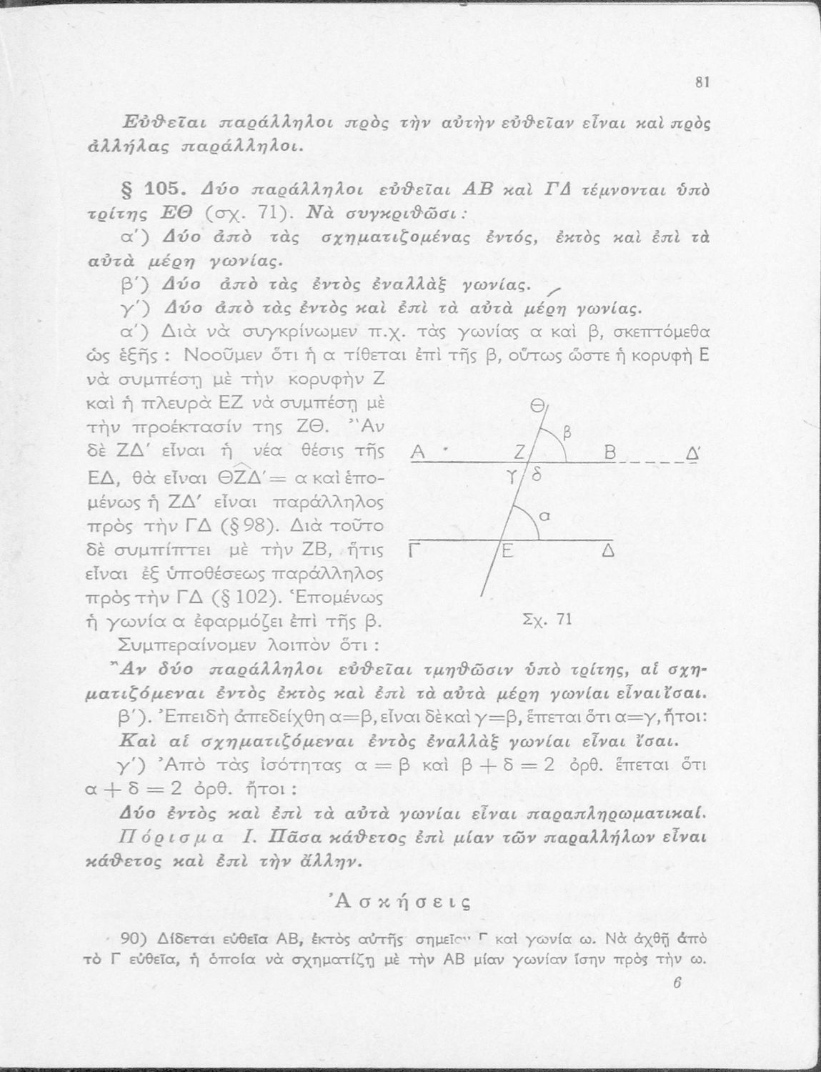 Θεωρητική γεωμετρία δια τας ανωτέρας τάξεις των Γυμνασίων