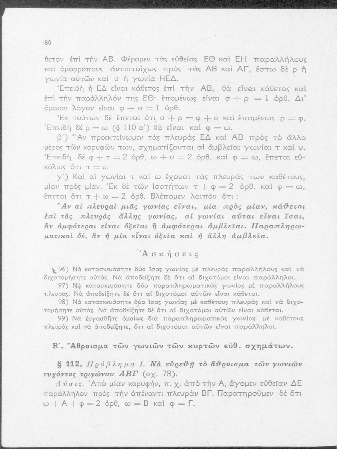 Θεωρητική γεωμετρία δια τας ανωτέρας τάξεις των Γυμνασίων