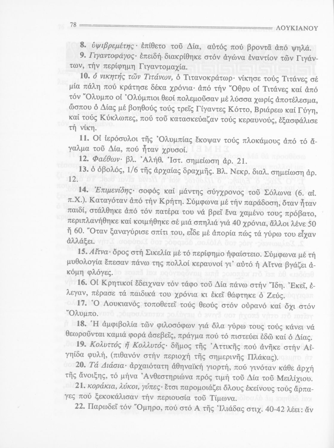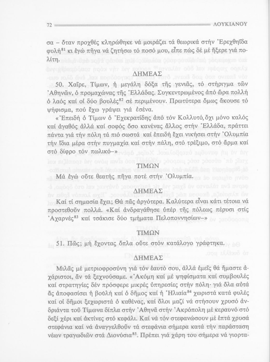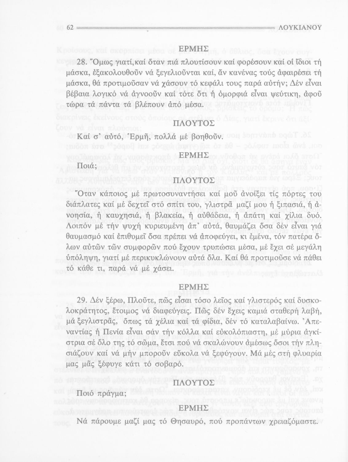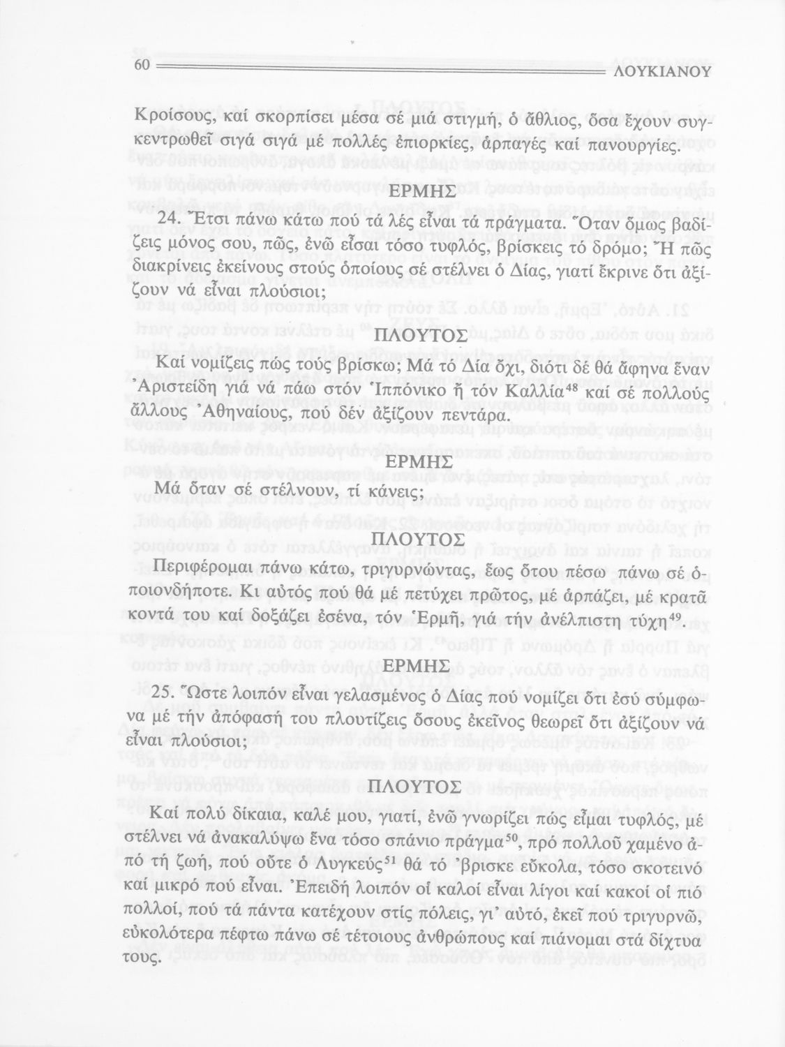 Σχολικό εγχειρίδιο Αρχαίων Ελληνικών Α' Γυμνασίου που περιέχει εισαγωγή στην ζωή και το έργο του Λουκιανού, τα έργα του Μία αληθινή ιστορία, Τιμών ή Μισάνθρωπος, Νεκρικοί Διάλογοι και ερμηνευτικές σημειώσεις.
