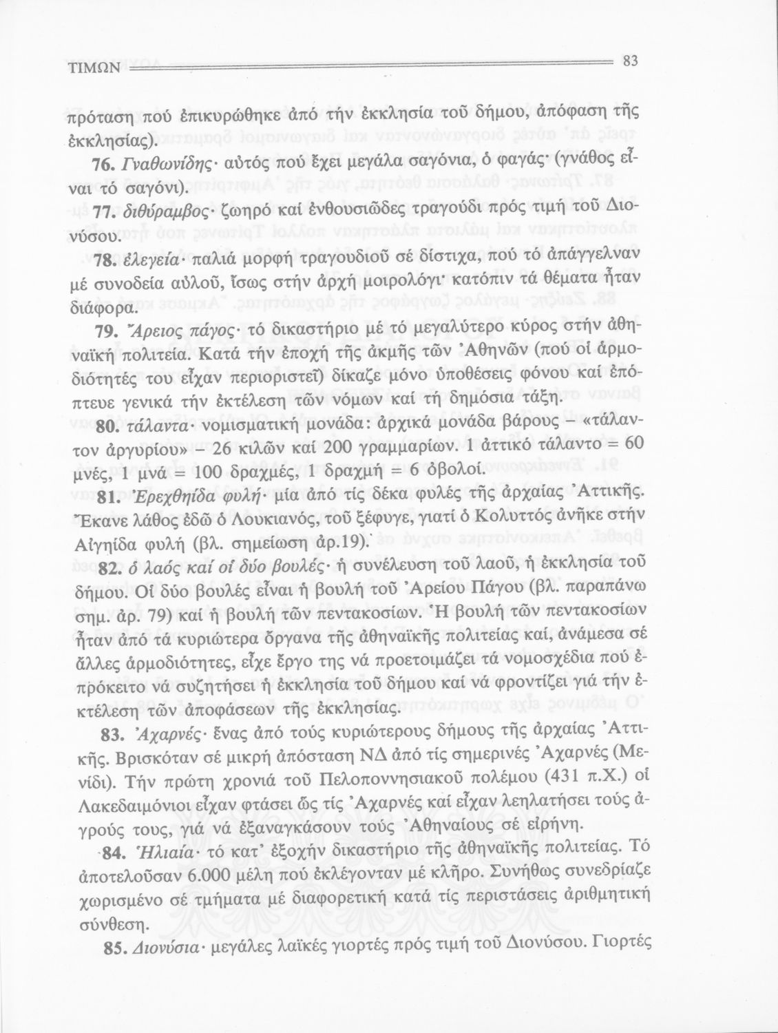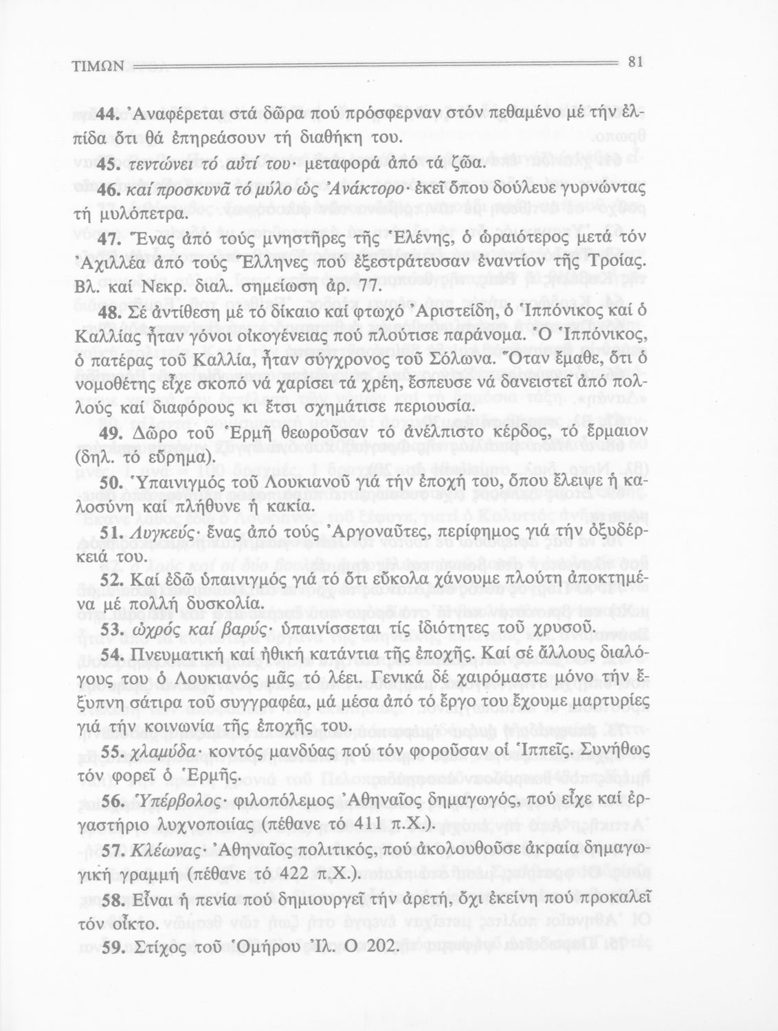 Μαθητικό βοήθημα Αρχαίων Ελληνικών Γ΄ Γυμνασίου που περιλαμβάνει τα έργα του Λουκιανού Χάρων ή Επισκοπούντες και Τίμων ο Μισάνθρωπος, μετάφραση, και ερμηνευτικά, πραγματολογικά σχόλια και λεξιλογικές ...