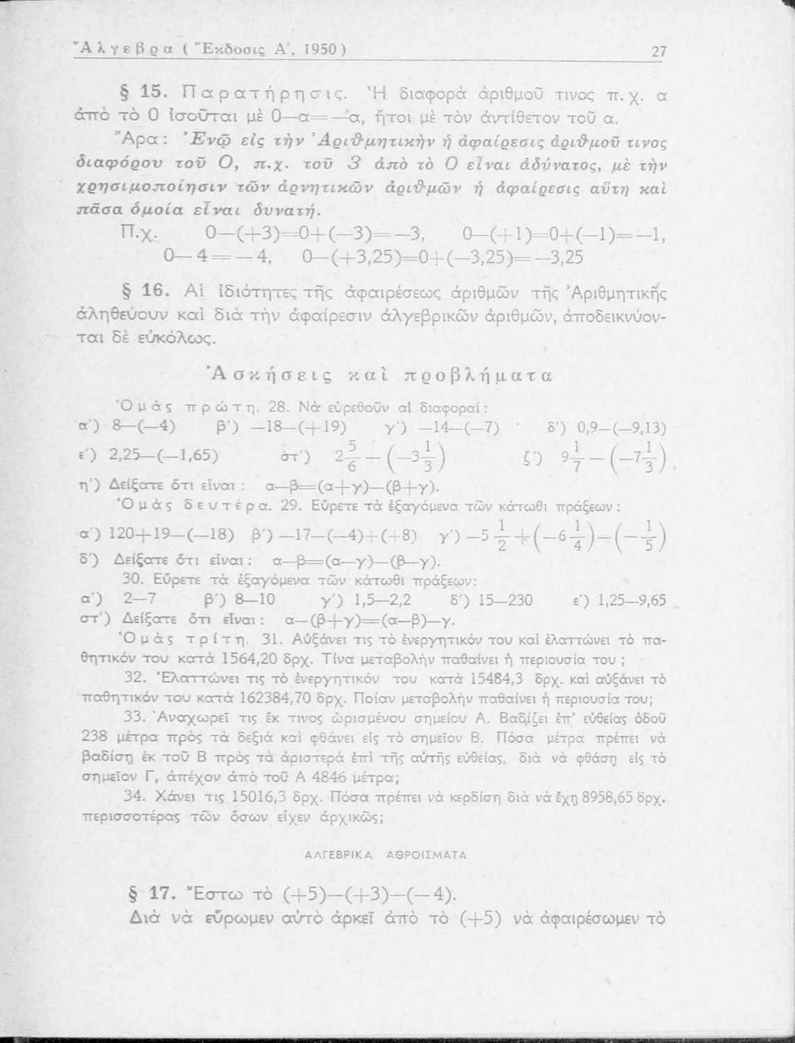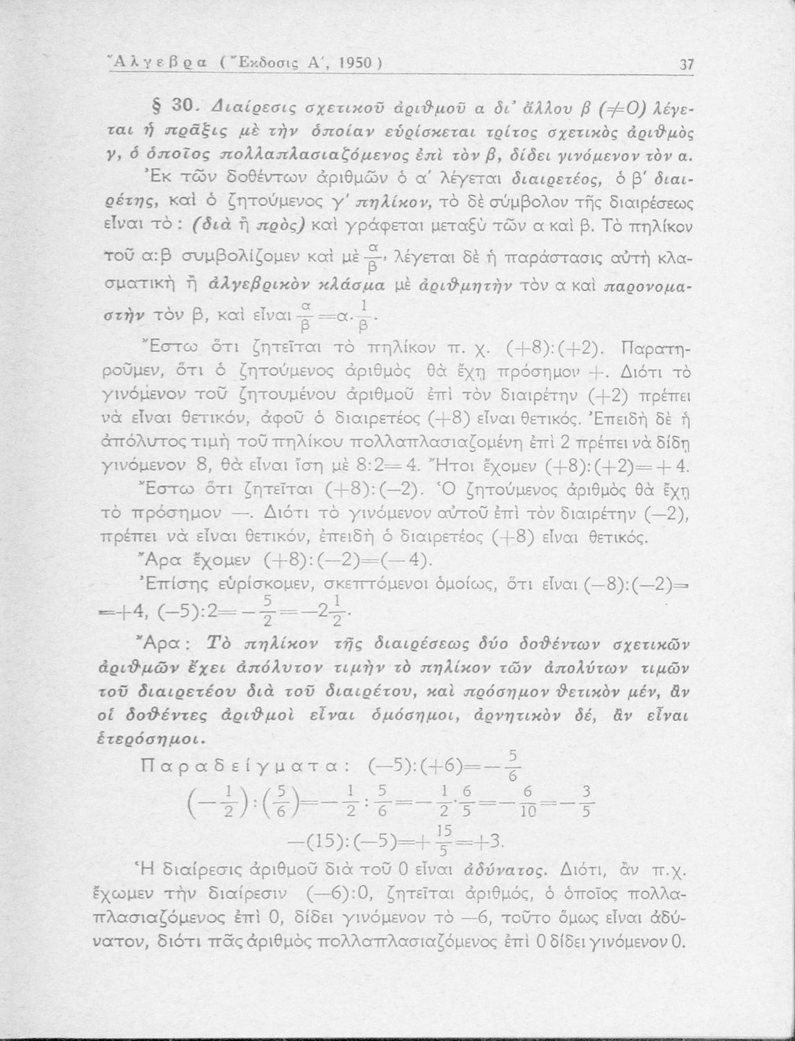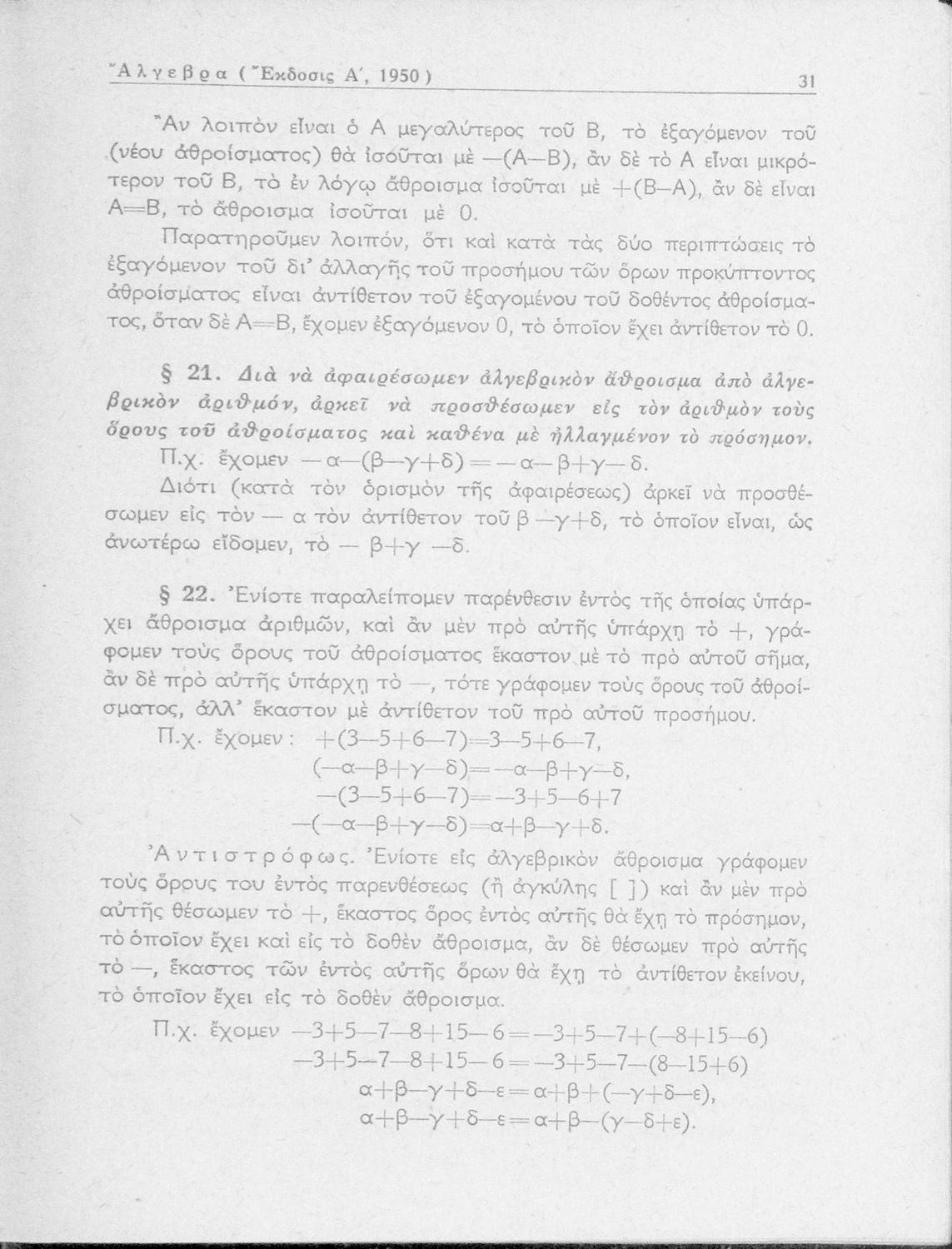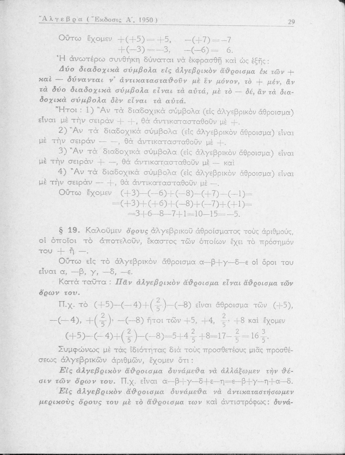 Άλγεβρα δια τας ανωτέρας τάξεις των Γυμνασίων