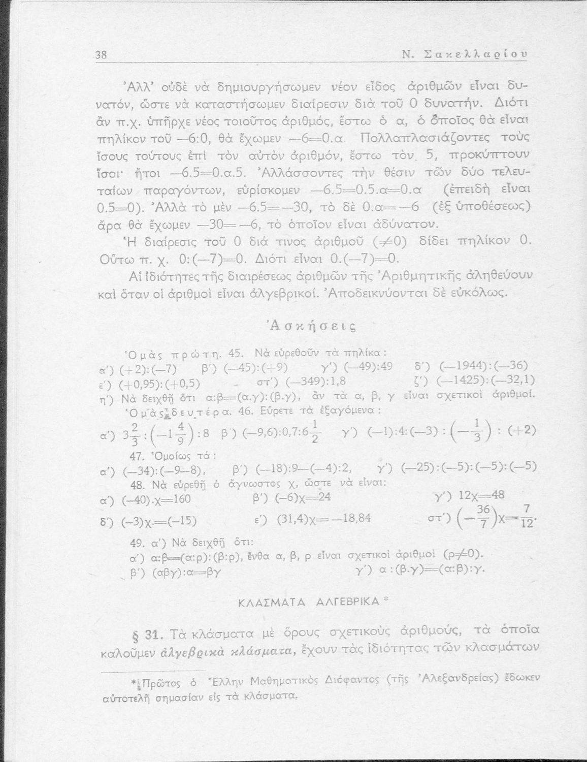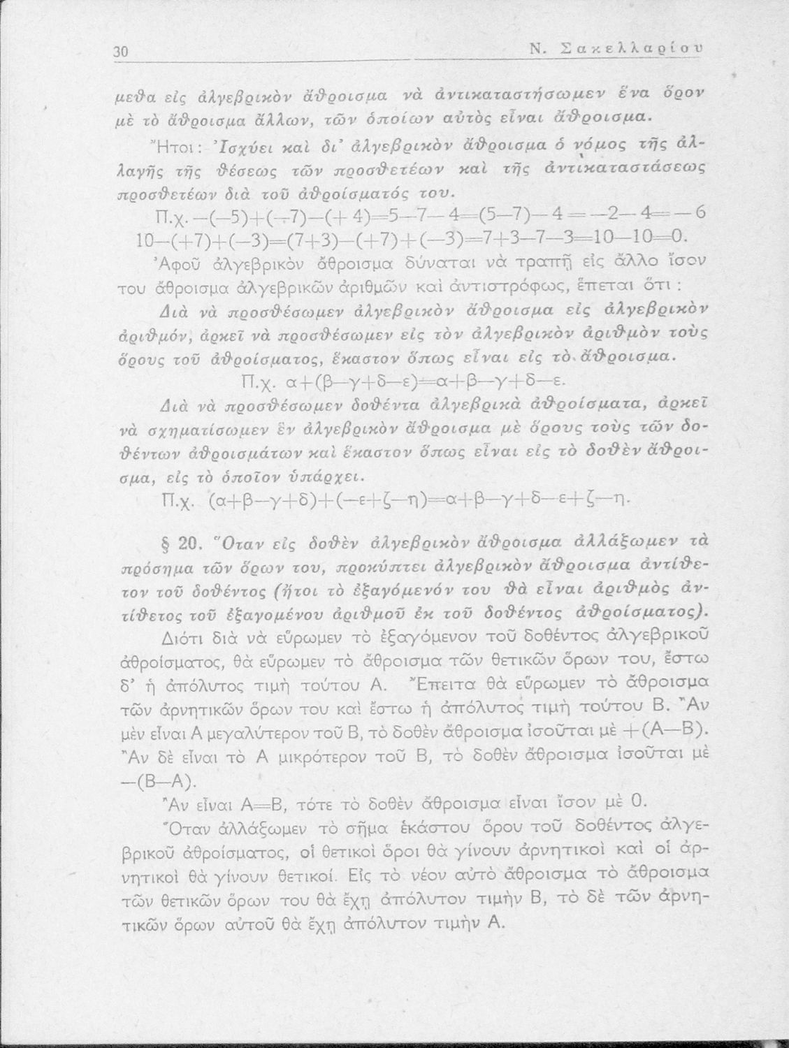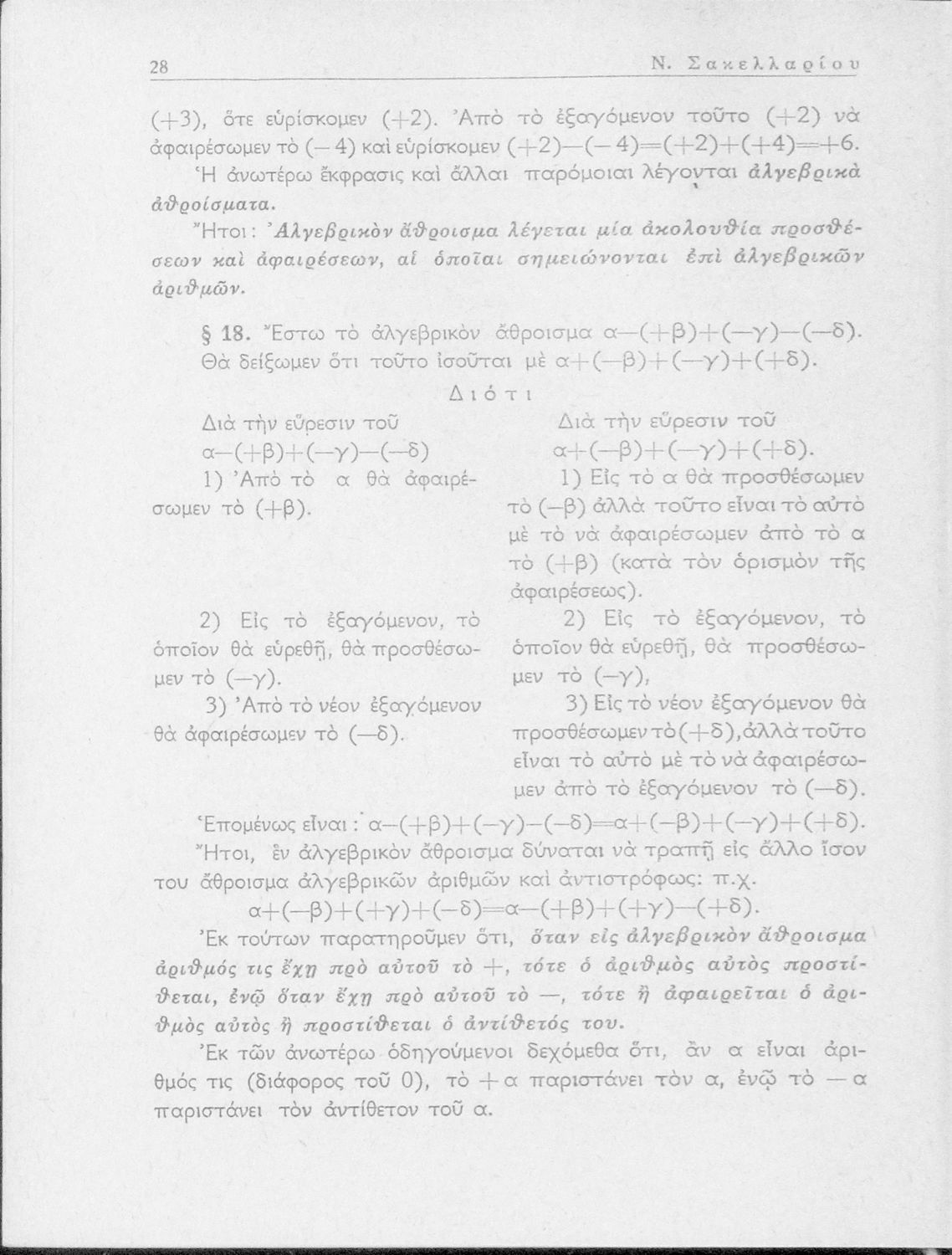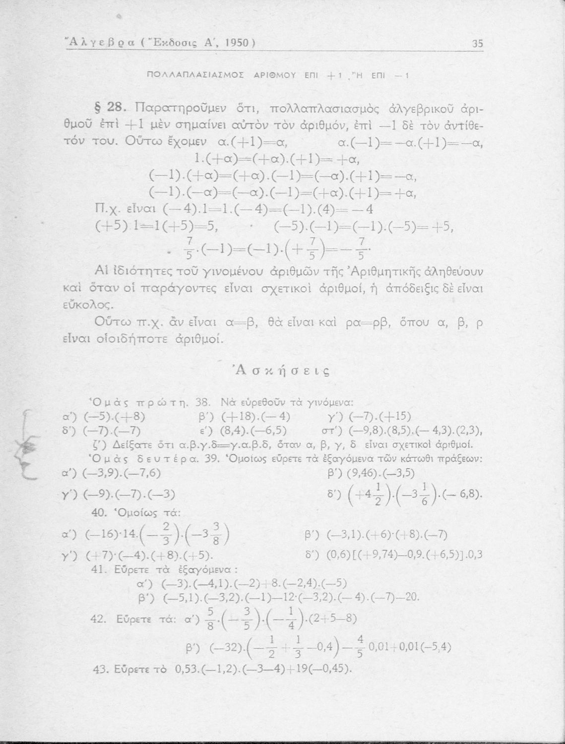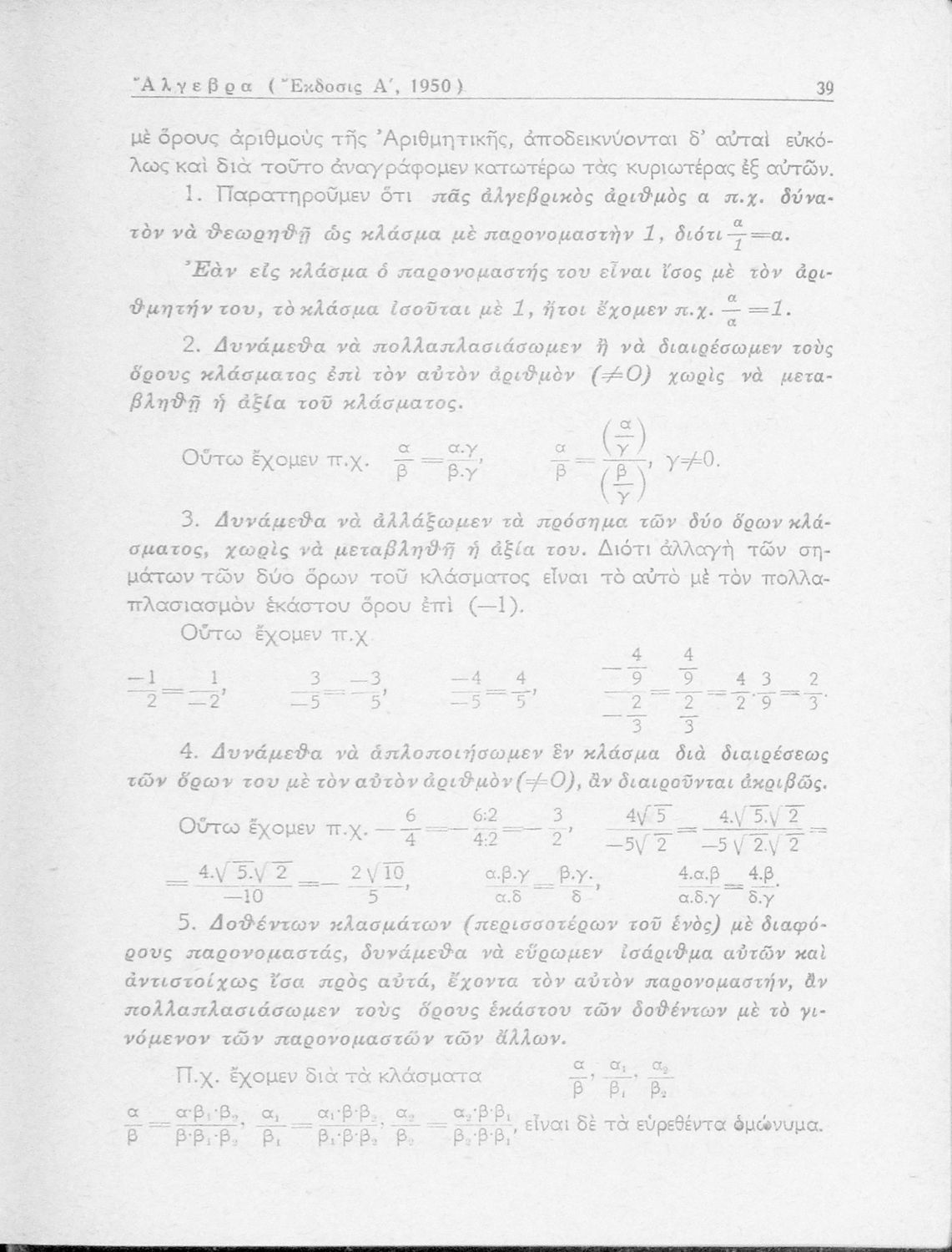 Άλγεβρα δια τας ανωτέρας τάξεις των Γυμνασίων