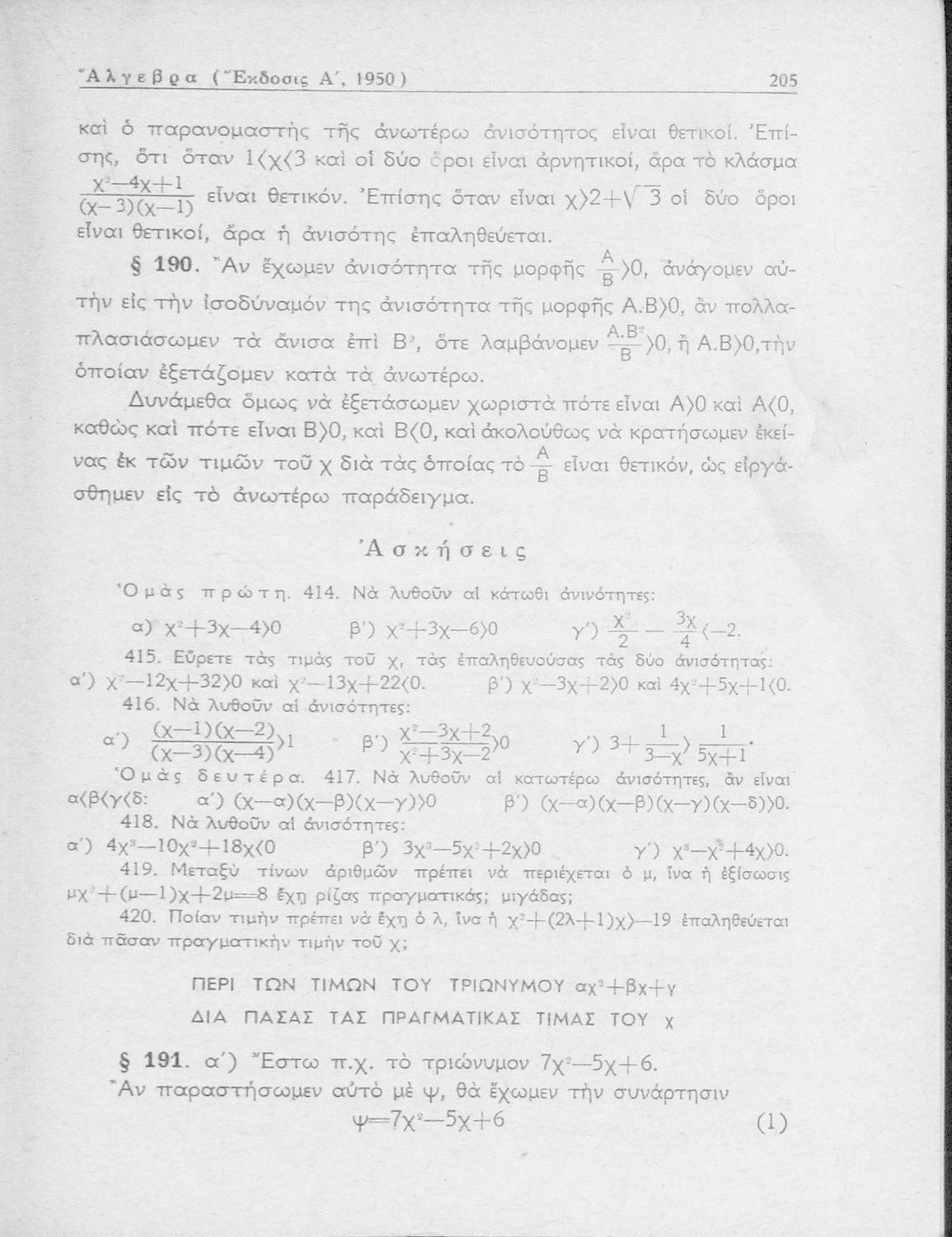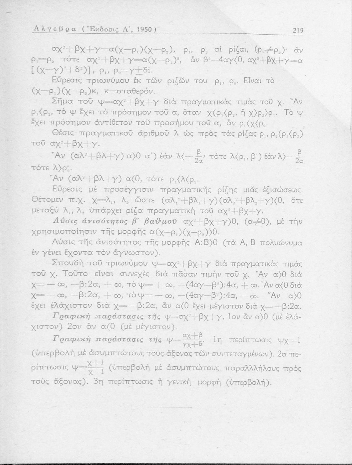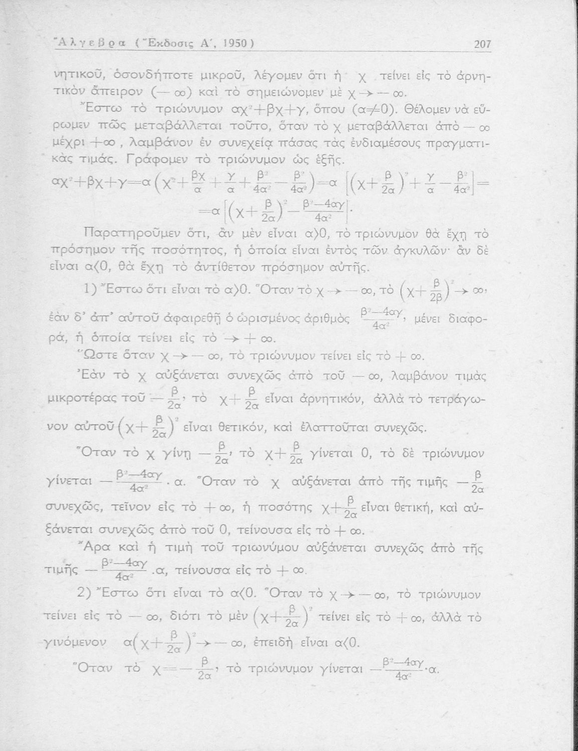 Άλγεβρα δια τας ανωτέρας τάξεις των Γυμνασίων