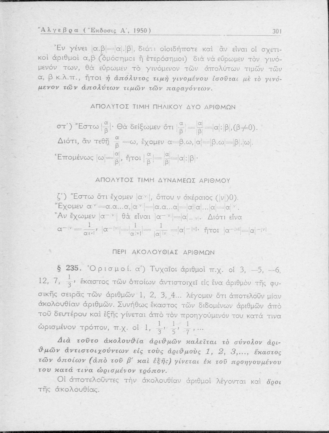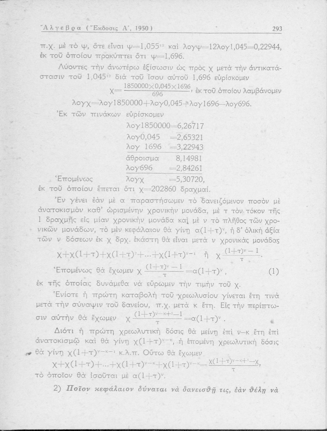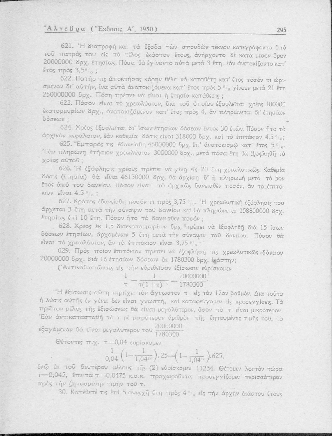 Άλγεβρα δια τας ανωτέρας τάξεις των Γυμνασίων