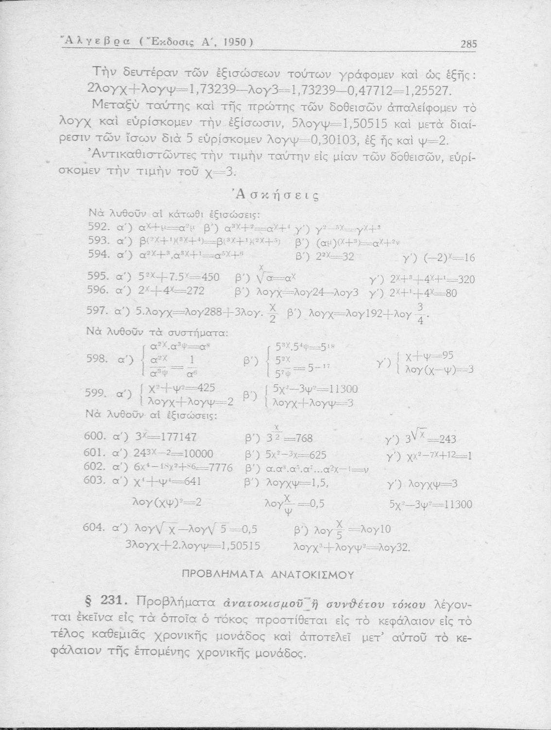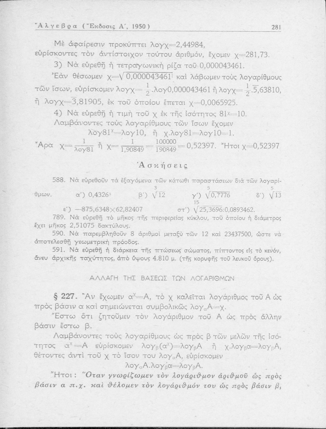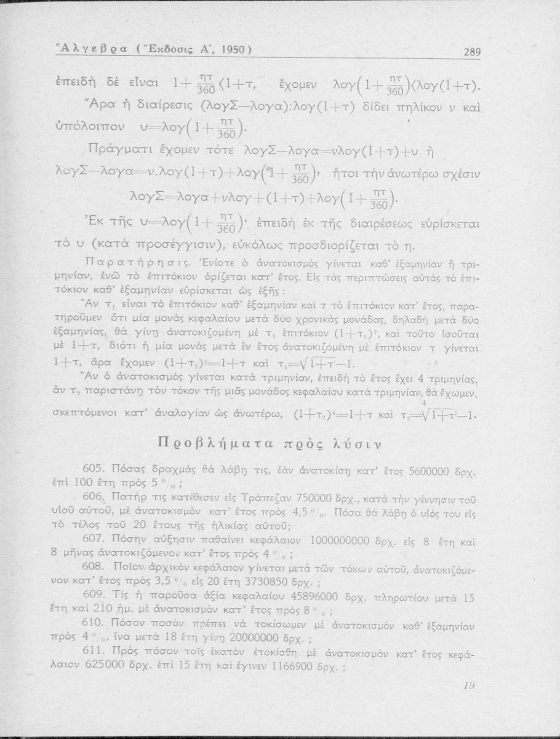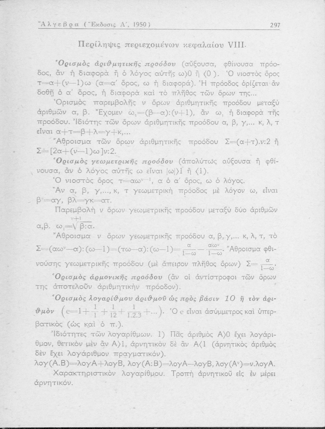 Άλγεβρα δια τας ανωτέρας τάξεις των Γυμνασίων