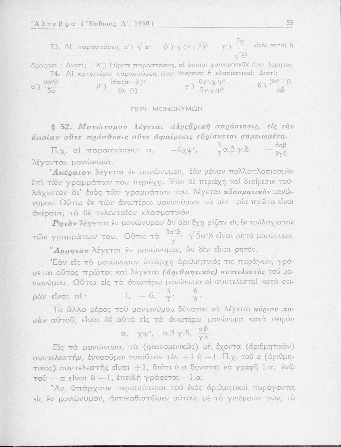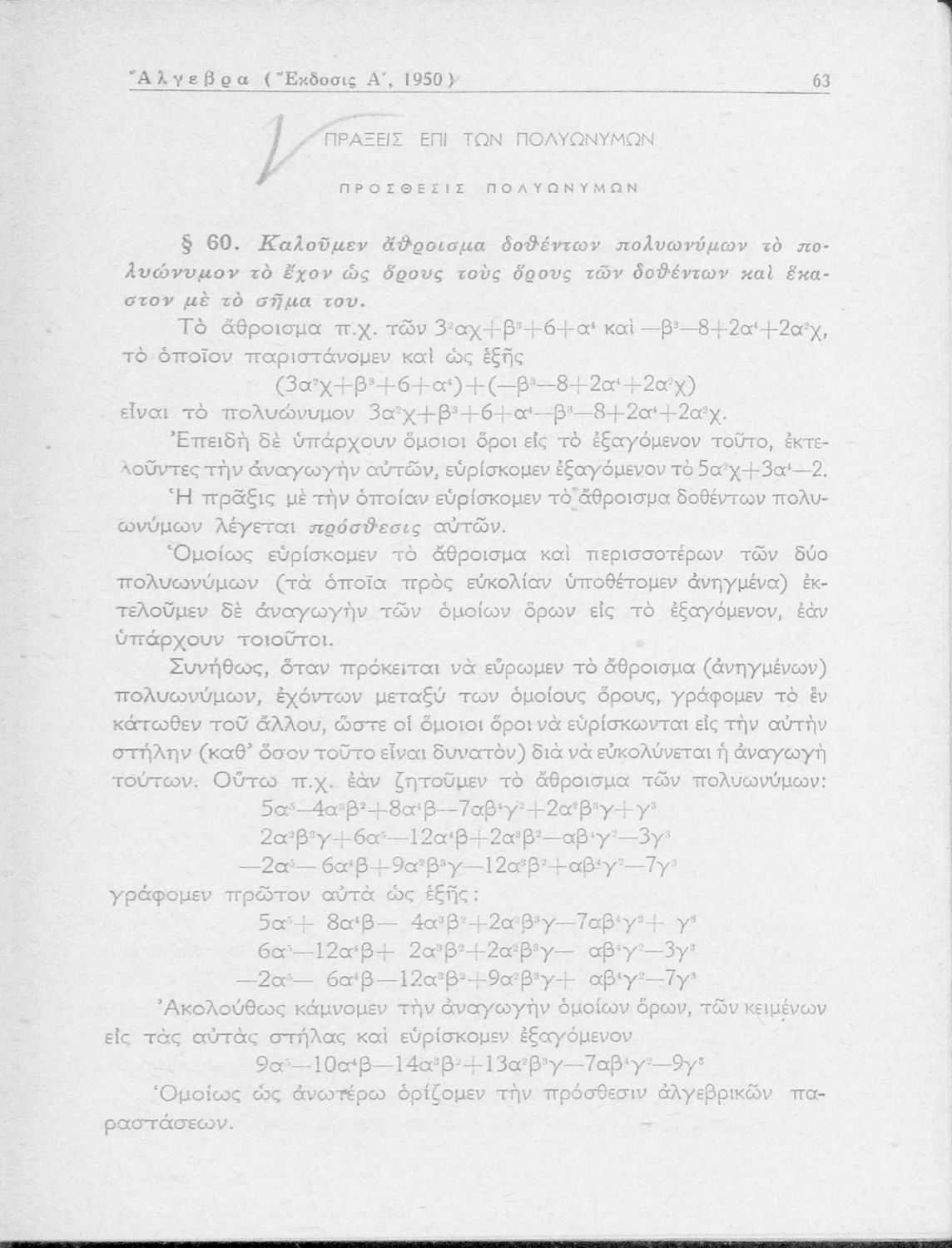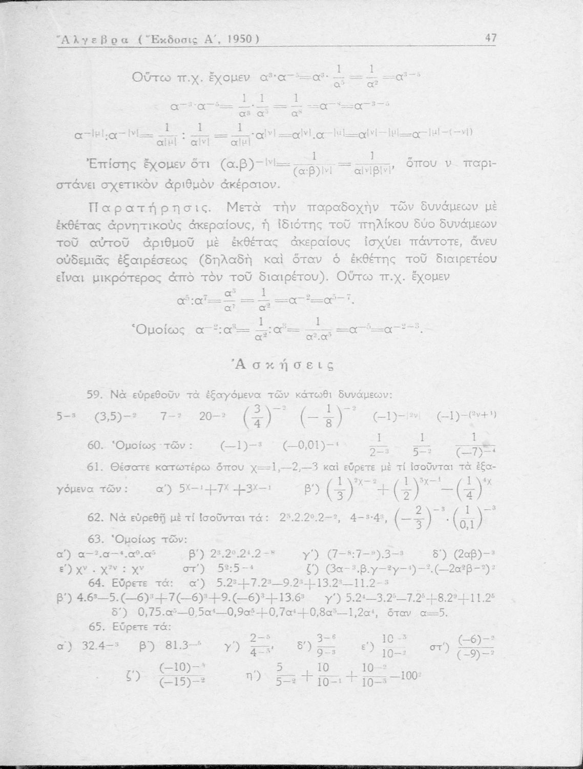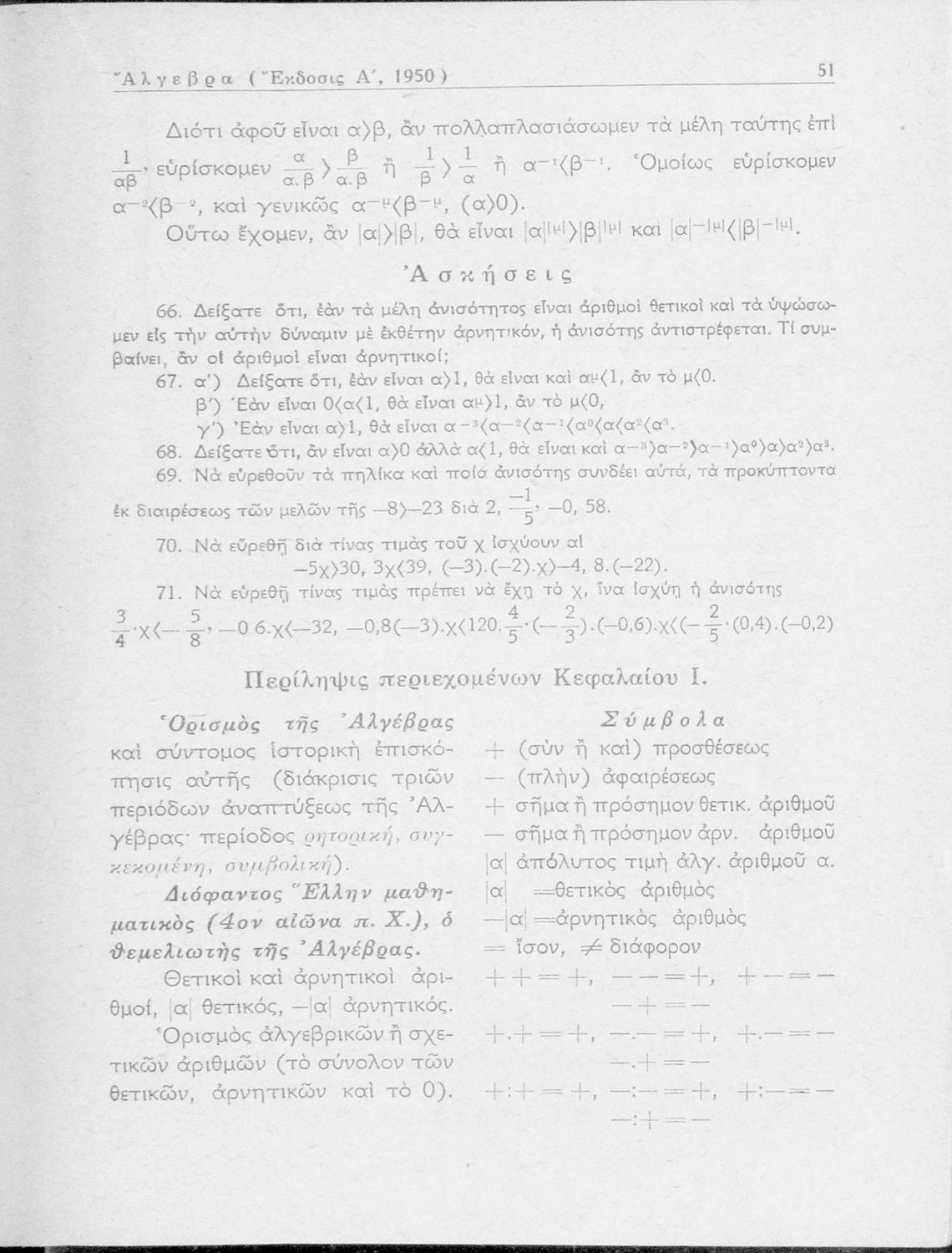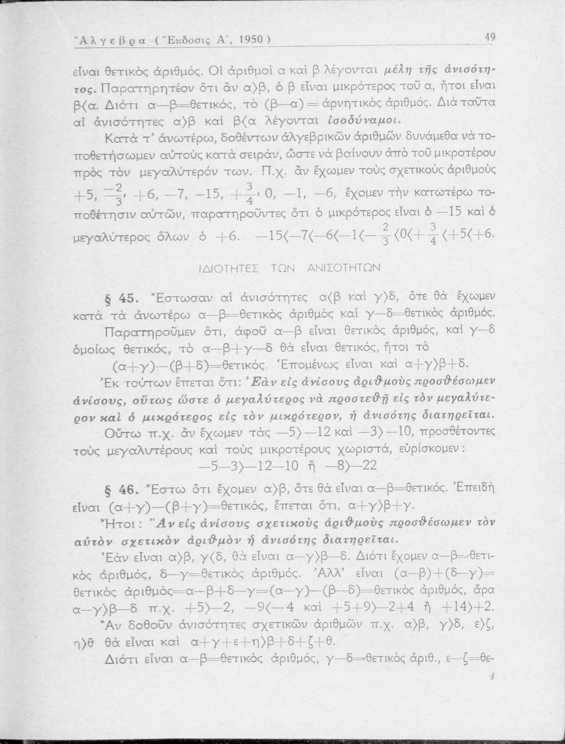 Άλγεβρα δια τας ανωτέρας τάξεις των Γυμνασίων
