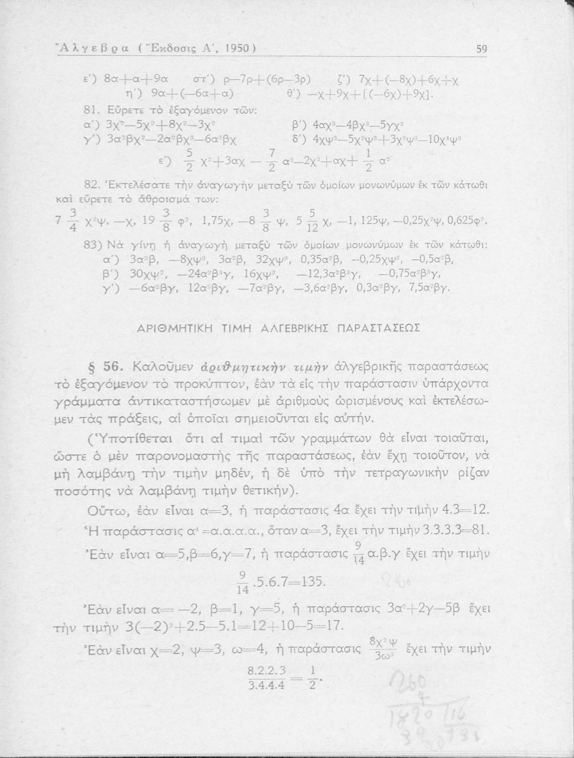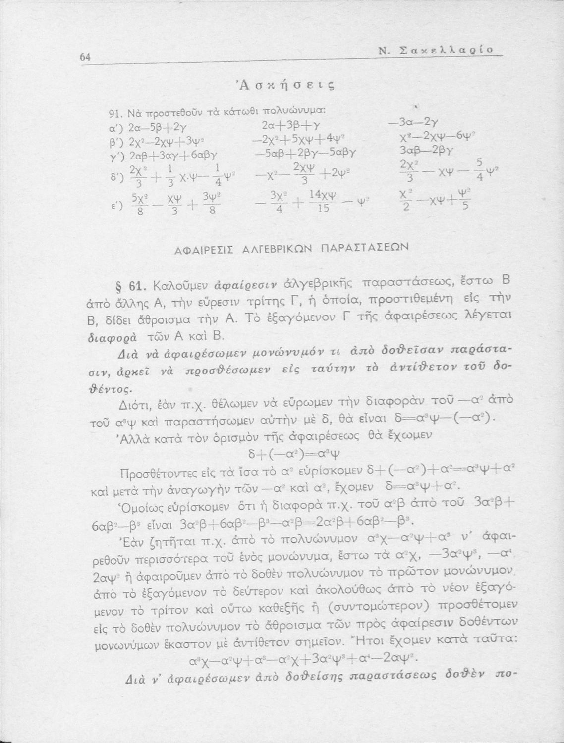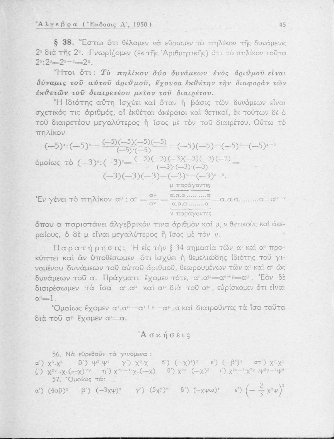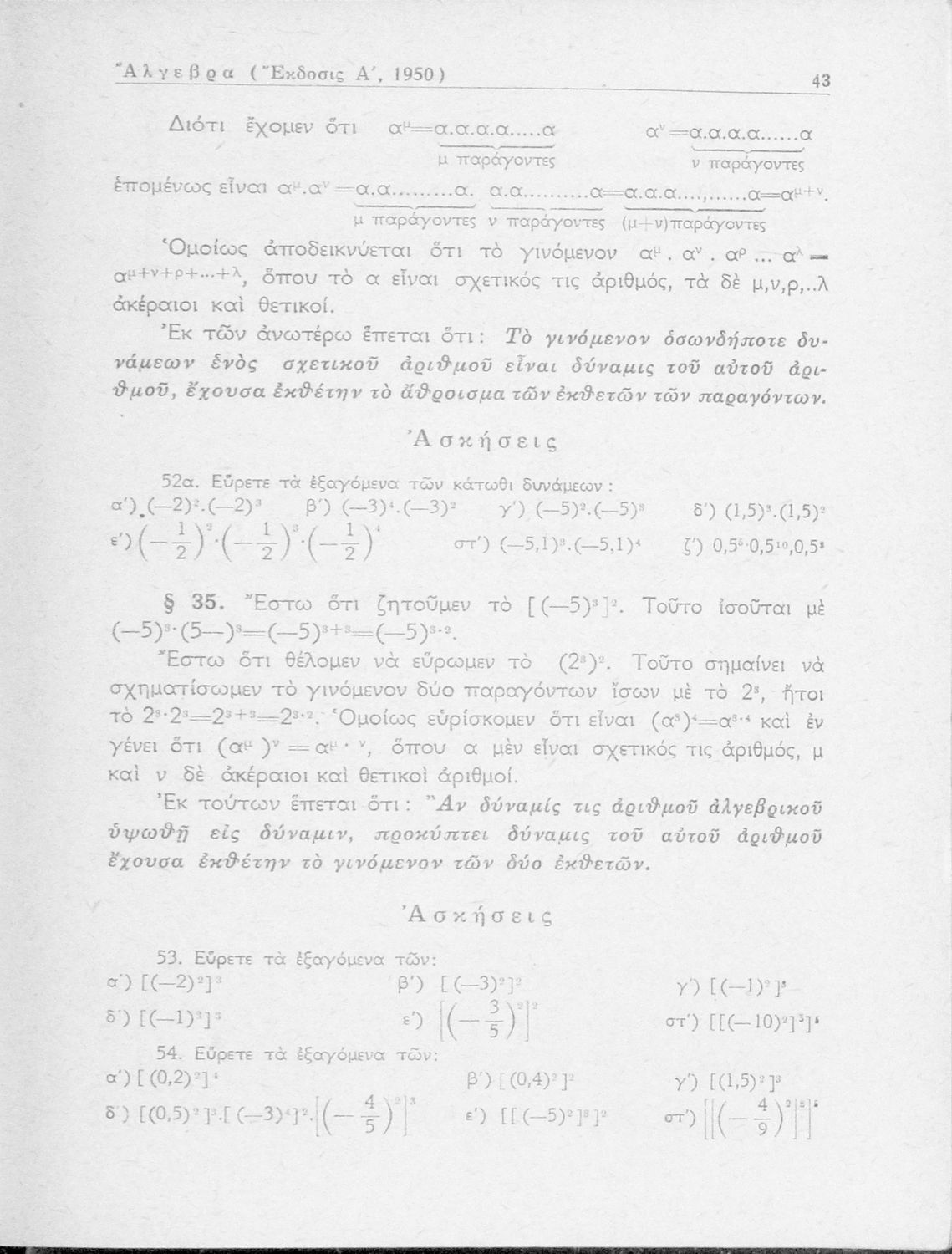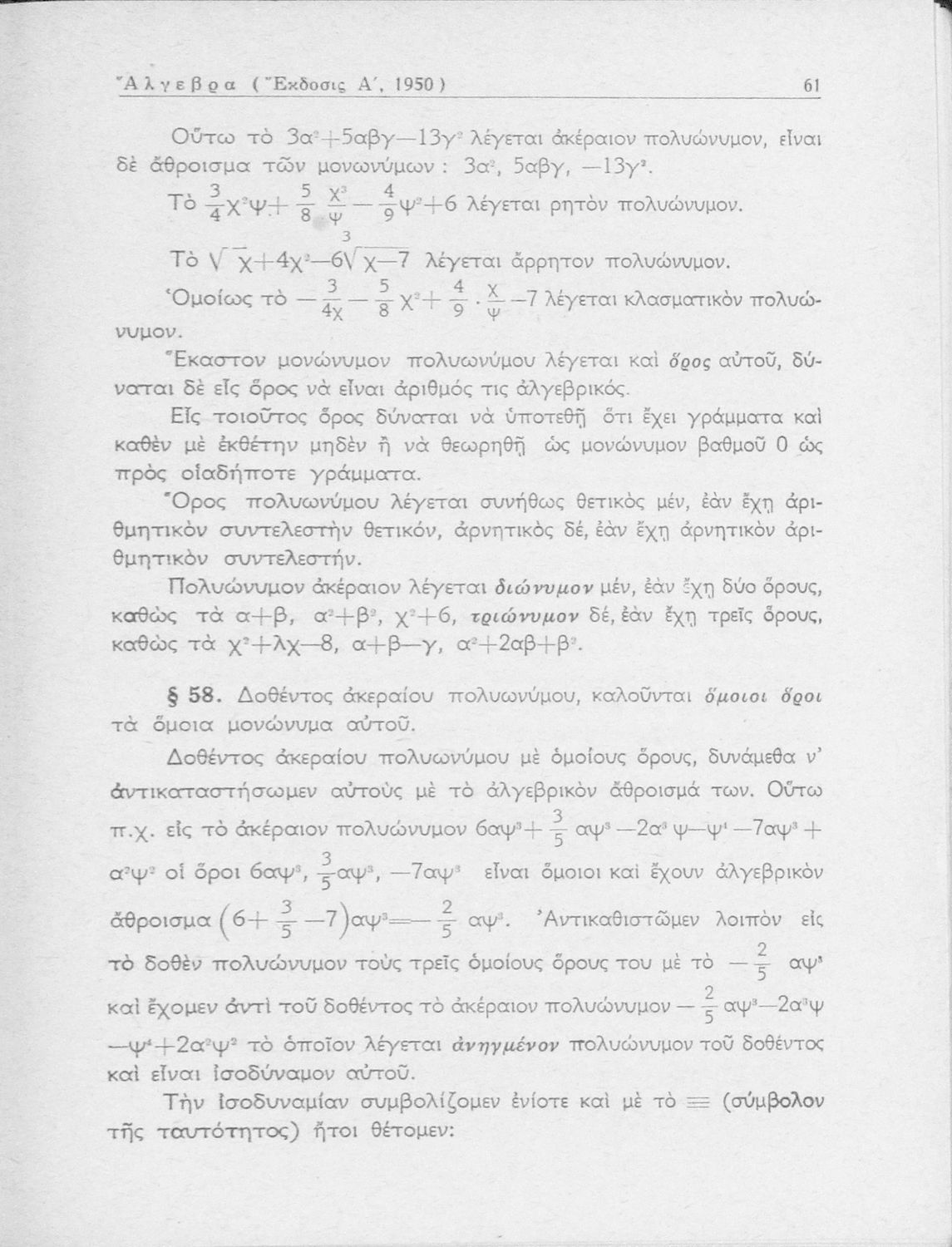 Άλγεβρα δια τας ανωτέρας τάξεις των Γυμνασίων