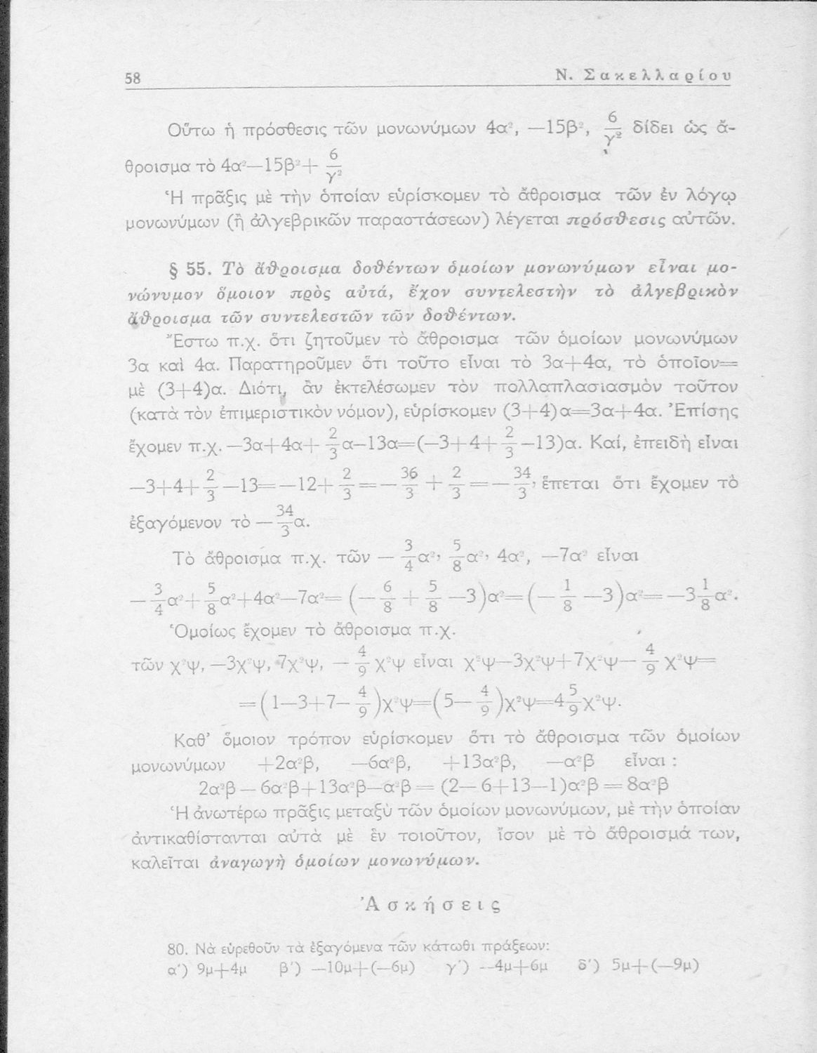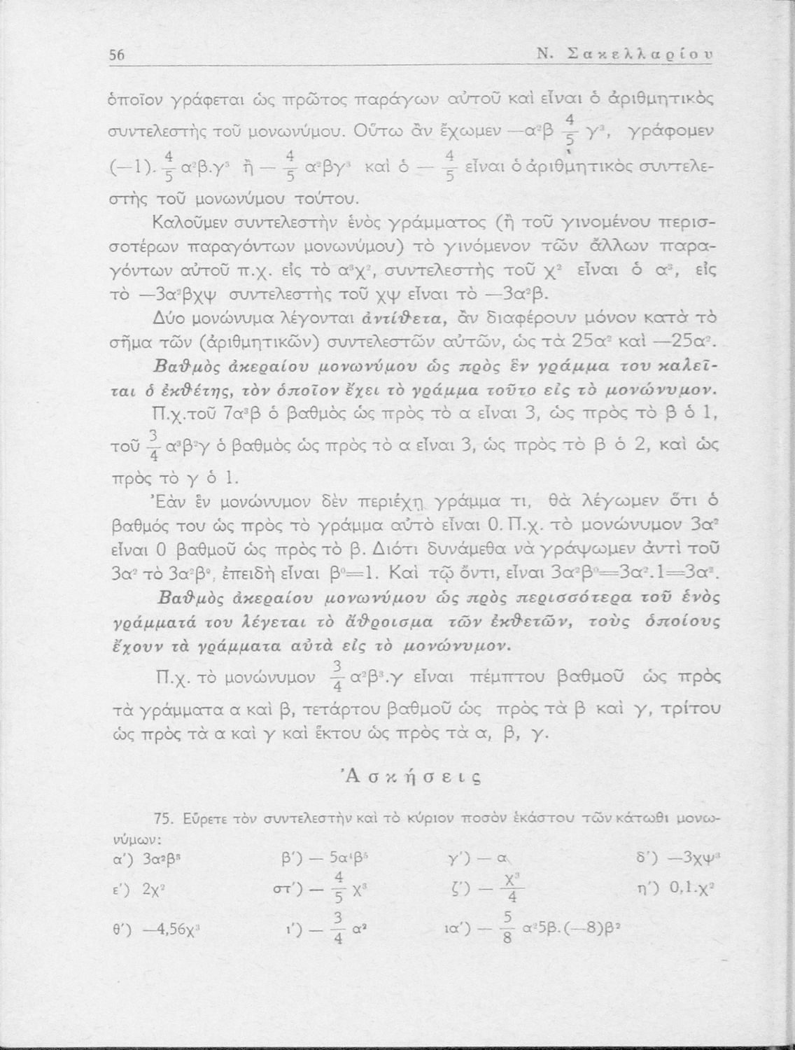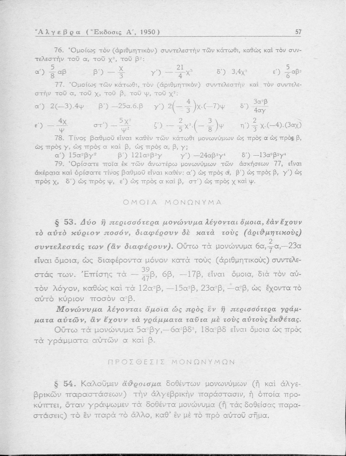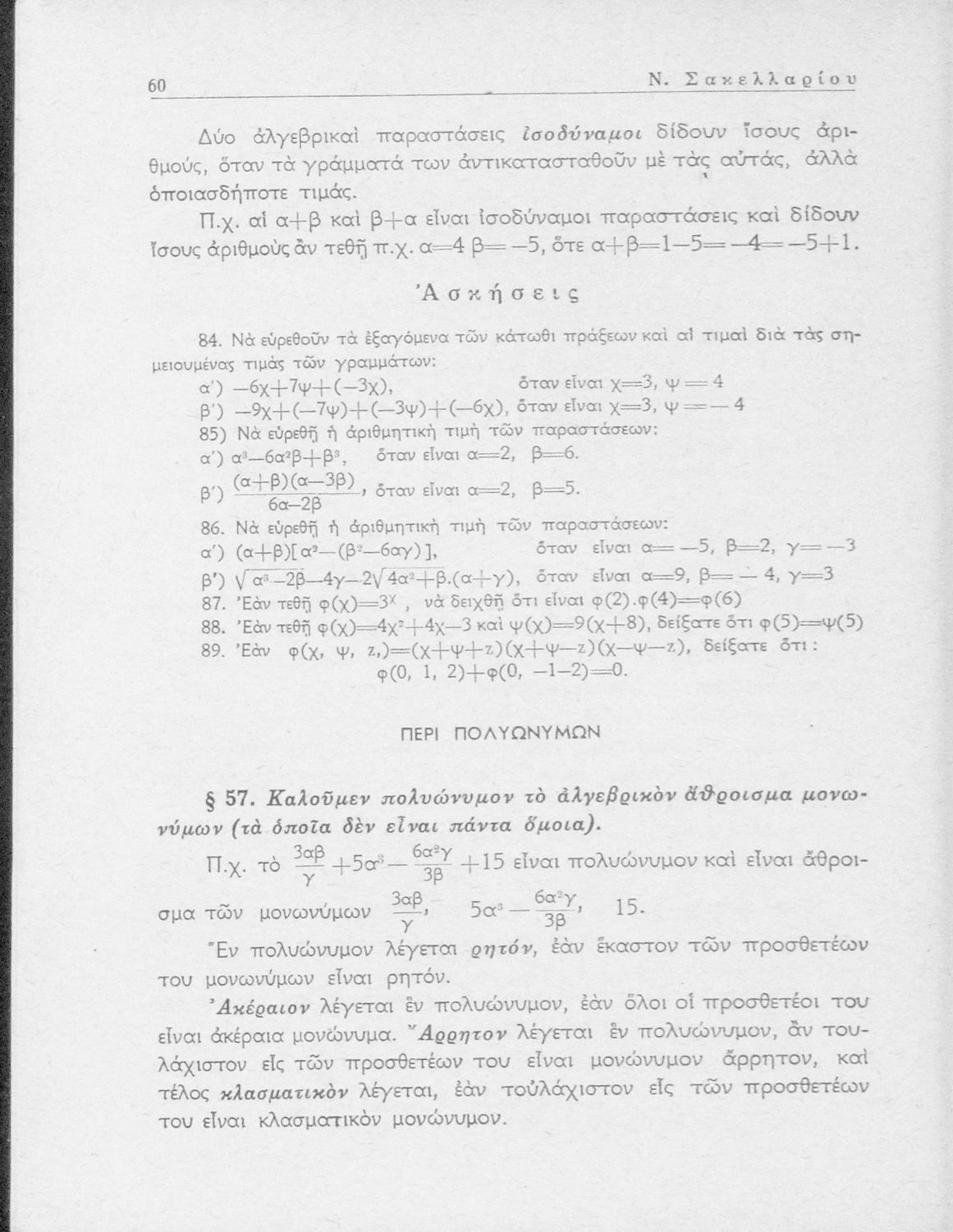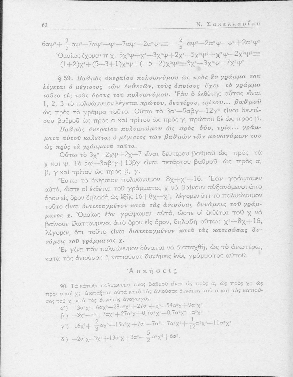 Άλγεβρα δια τας ανωτέρας τάξεις των Γυμνασίων