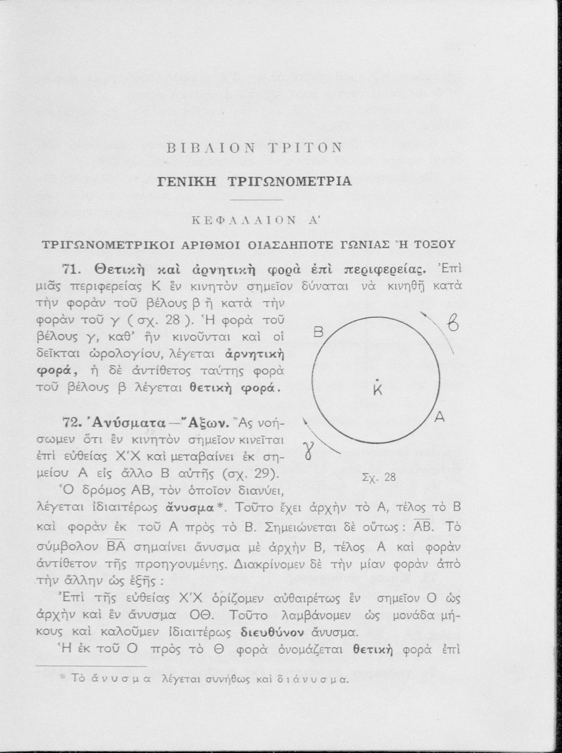 Βαθμίδα εκπαίδευσης: Δευτεροβάθμια Τάξη: Η' Γυμνασίου Μάθημα: Μαθηματικά Γλώσσα: Απλή καθαρεύουσα Παρουσίαση περιεχομένου: Σχολικό εγχειρίδιο Τριγωνομετρίας για την Η' Γυμνασίου που περιλαμβάνει θεωρία και ασκήσεις. |