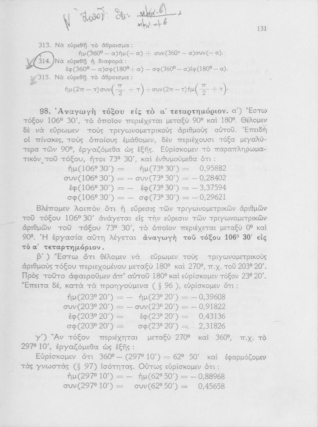 Σχολικό εγχειρίδιο Τριγωνομετρίας για την ΣΤ΄ Γυμνασίου που περιλαμβάνει θεωρήματα και ασκήσεις.