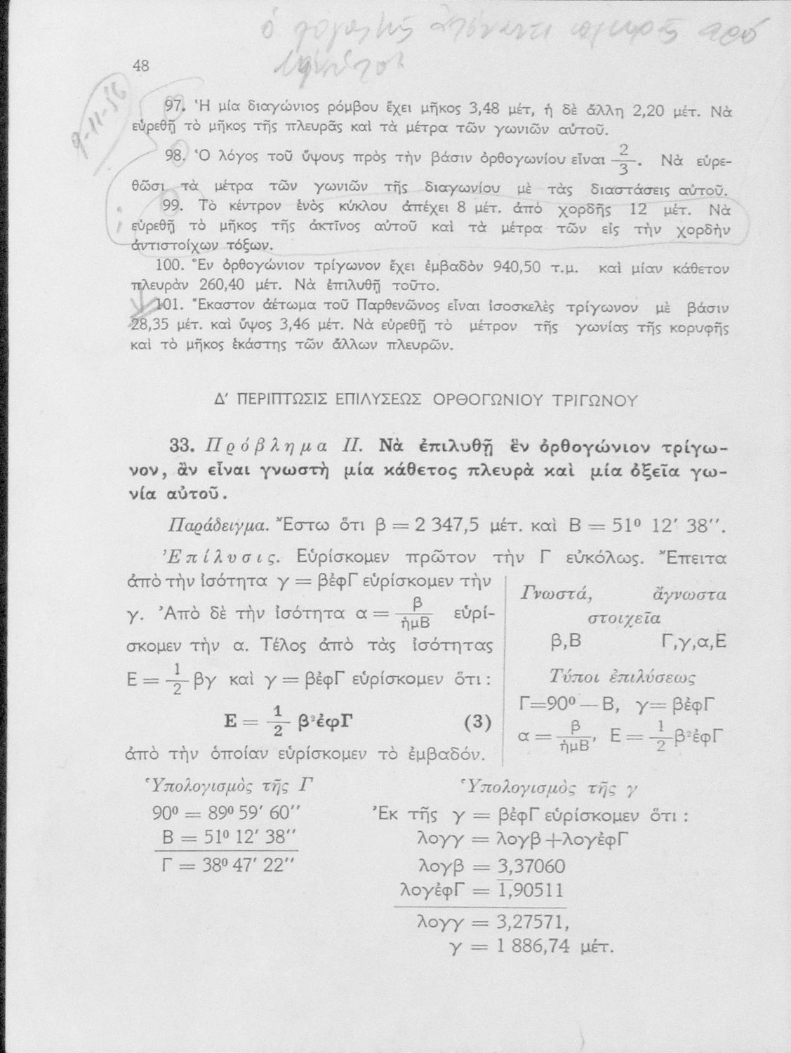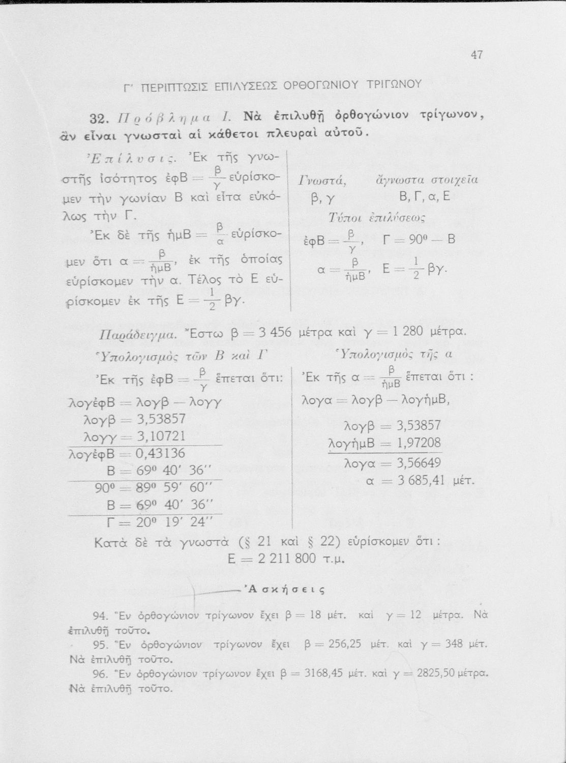 Βαθμίδα εκπαίδευσης: Δευτεροβάθμια Τάξη: Η' Γυμνασίου Μάθημα: Μαθηματικά Γλώσσα: Απλή καθαρεύουσα Παρουσίαση περιεχομένου: Σχολικό εγχειρίδιο Τριγωνομετρίας για την Η' Γυμνασίου που περιλαμβάνει θεωρία και ασκήσεις. |