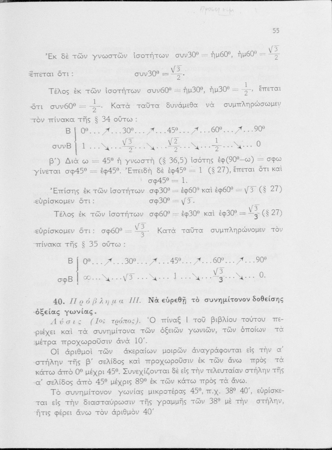 LDR 01069 2200205 4500 035 ## _a01-18142 040 ## _aΙνστιτούτο Εκπαιδευτικής Πολιτικής 041 ## _ael 100 ## _aΝικόλαος Δ. Νικολάου 110 ## _a18142 245 0# _aΤριγωνομετρία δια την Η΄ τάξιν των Γυμνασίων 250 ## _a3η Έκδοση 260 ## _aΑθήνα _bΟργανισμός Εκδόσεως Σχολικών Βιβλίων _c1956 300 ## _a197 _bΣκίτσα (ασπρόμαυρα) _c20 520 ## _aΣχολικό εγχειρίδιο Τριγωνομετρίας για την Η' Γυμνασίου που περιλαμβάνει θεωρία και ασκήσεις. 521 ## _aΗ' Γυμνασίου 522 ## _aΕλλάδα 546 ## _aΑπλή καθαρεύουσα 563 ## _aΣκληρό Εξώφυλλο 650 #4 _aΑνύσματα _aΕξισώσεις και συστήματα _aΕφαπτομένη _aΗμίτονο _aΣυνημίτονο _aΤριγωνομετρικοί αριθμοί