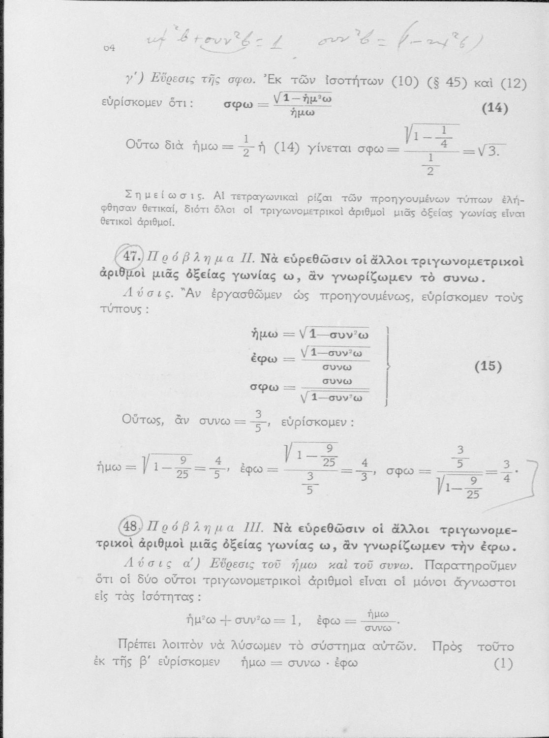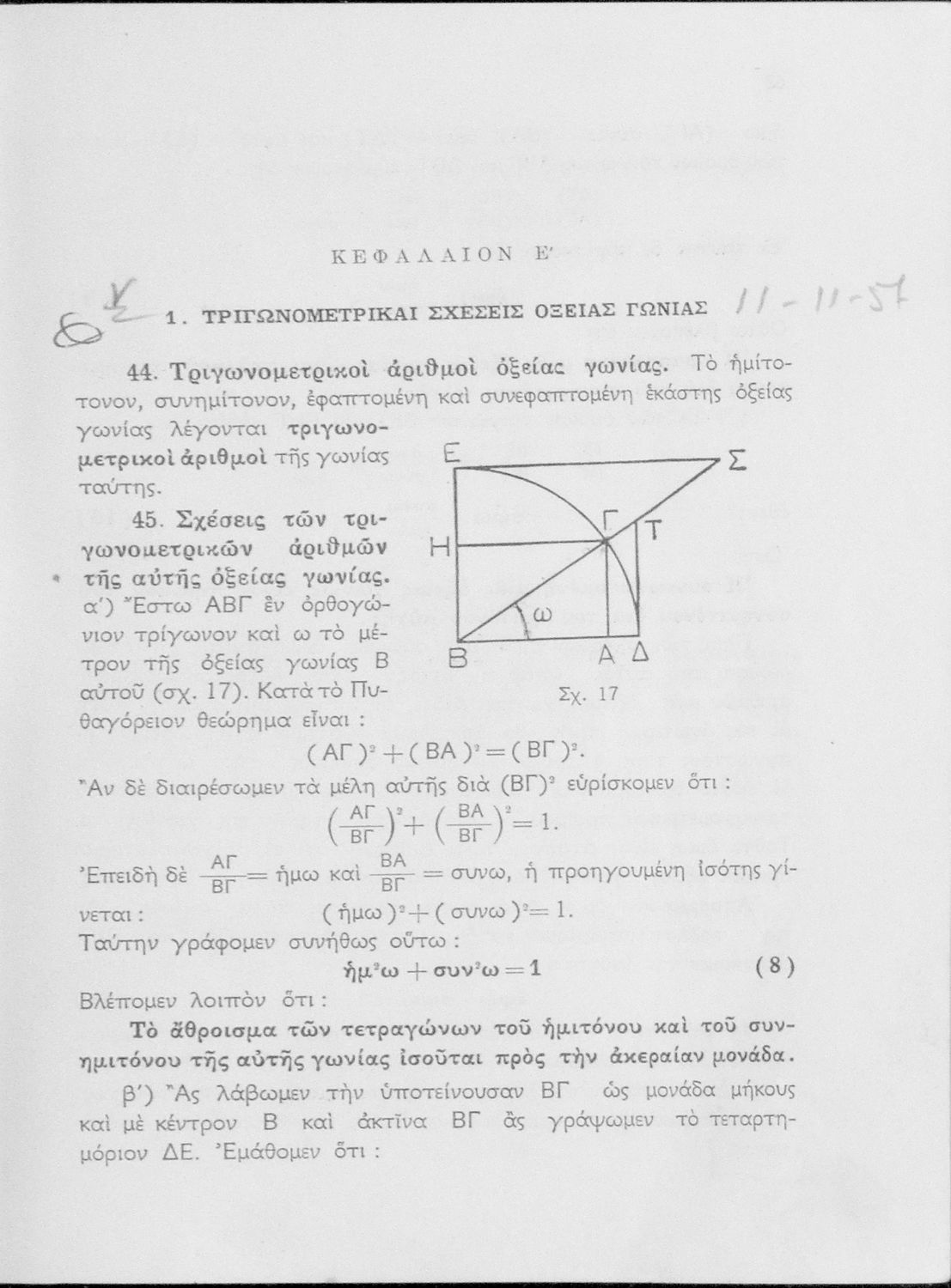 Σχολικό εγχειρίδιο Τριγωνομετρίας για την Η' Γυμνασίου που περιλαμβάνει θεωρία και ασκήσεις.