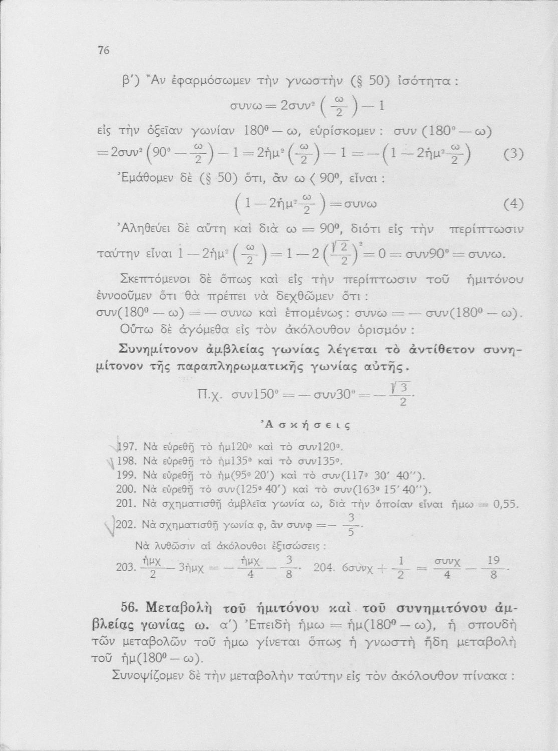Σχολικό εγχειρίδιο Τριγωνομετρίας για την Η' Γυμνασίου που περιλαμβάνει θεωρία και ασκήσεις.