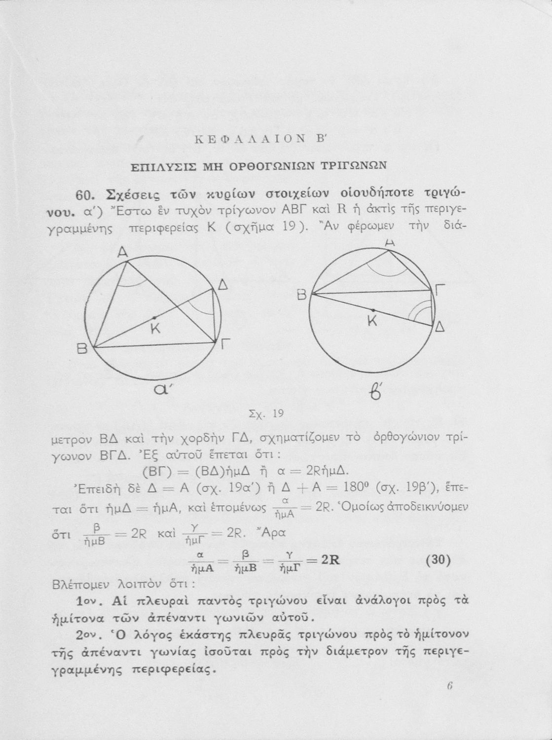 Σχολικό εγχειρίδιο Τριγωνομετρίας για την ΣΤ΄ Γυμνασίου που περιλαμβάνει θεωρήματα και ασκήσεις.
