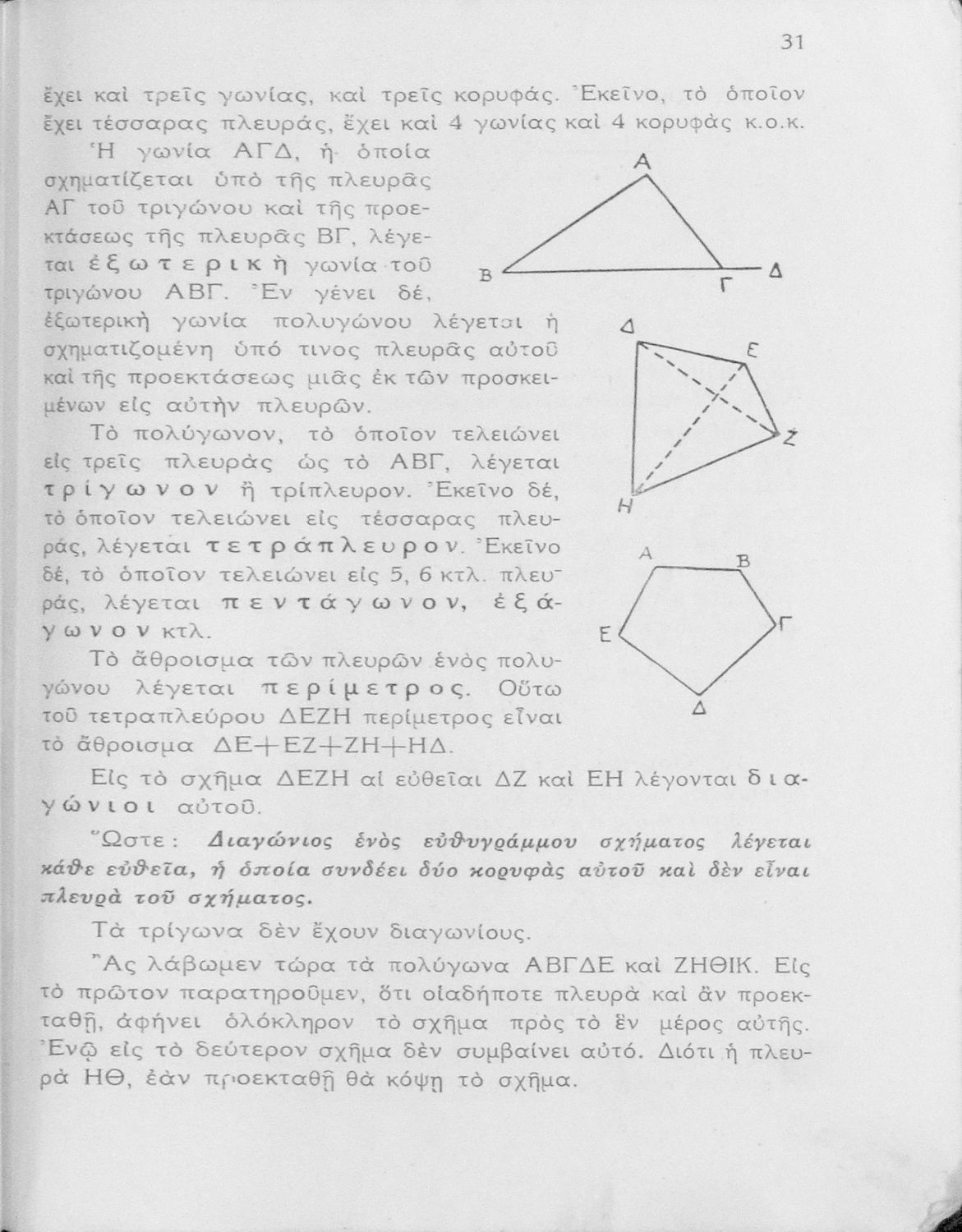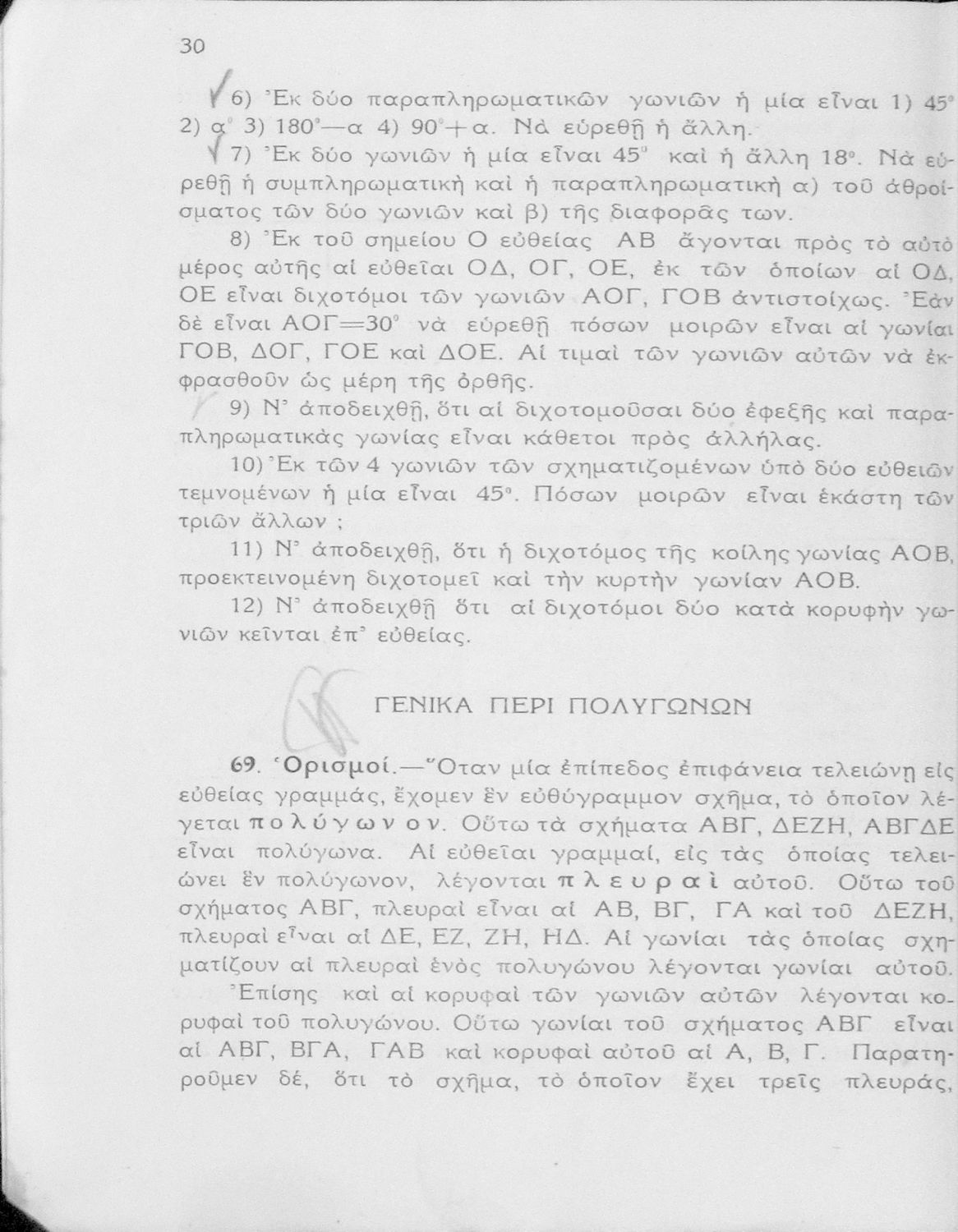 Βαθμίδα εκπαίδευσης: Δευτεροβάθμια Τάξη: Γυμνάσιο Μάθημα: Μαθηματικά Γλώσσα: Απλή καθαρεύουσα Παρουσίαση περιεχομένου: Σχολικό εγχειρίδιο Γεωμετρίας για τα Γυμνάσια νέου τύπου που είναι χωρισμένο σε Επιπεδομετρία και Στερεομετρία και περιλαμβάνει θεωρία και ασκήσεις. |