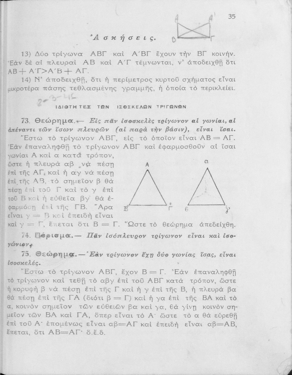 245 0# _aΘεωρητική γεωμετρία δια τας ανωτέρας τάξεις των Γυμνασίων νέου τύπου
